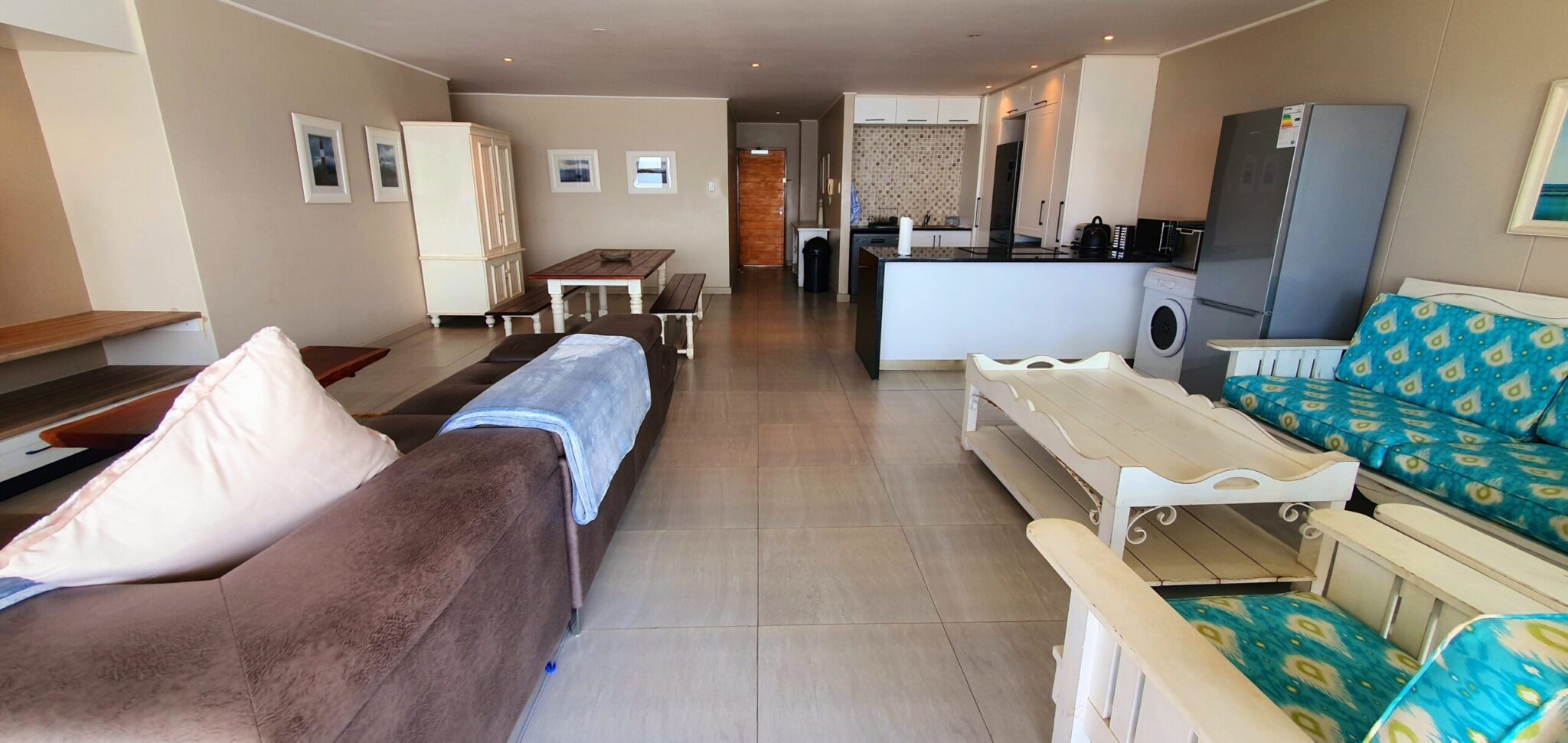 Die woonstel is met 'n yskas-vrieskas, stoof, mikrogolfoond, wasmasjien en 'n tuimeldroër toegerus. Die etenstafel het sitplek vir 6 gaste en die sitarea het 'n gemaklike sitkamerstel vir 5 gaste, asook 'n TV en WiFi. Daar is ook 'n ekstra sitarea vir 4 gaste. 'n Skuifdeur lei vanaf die sitarea en hoofslaapkamer na 'n groot stoep met 'n see-uitsig, stoepmeubels en 'n gasbraai.