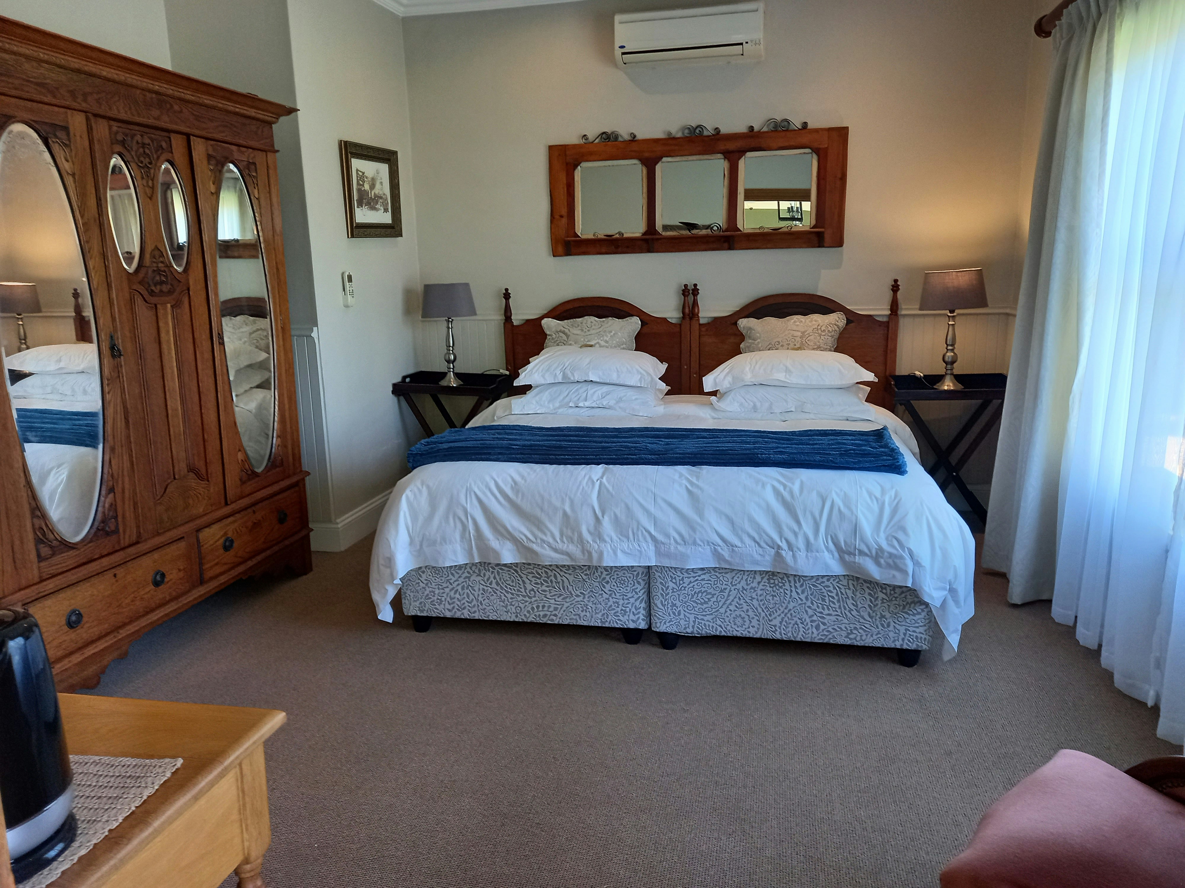 Accommodation is offered in 4 individually decorated rooms that can each accommodate 2 adults, while some of the rooms can accommodate 2 children as well. Three of the rooms are furnished with king-size beds that can be converted into 2 single beds, while 1 of the rooms is furnished with a queen-size bed. Two of the rooms include a child-only couch or 2 child-only beds, which can accommodate 2 children each. Each room features an en-suite bathroom fitted with either a bath and a shower or a shower fixed over the bath. The rooms open onto the garden or the verandah.