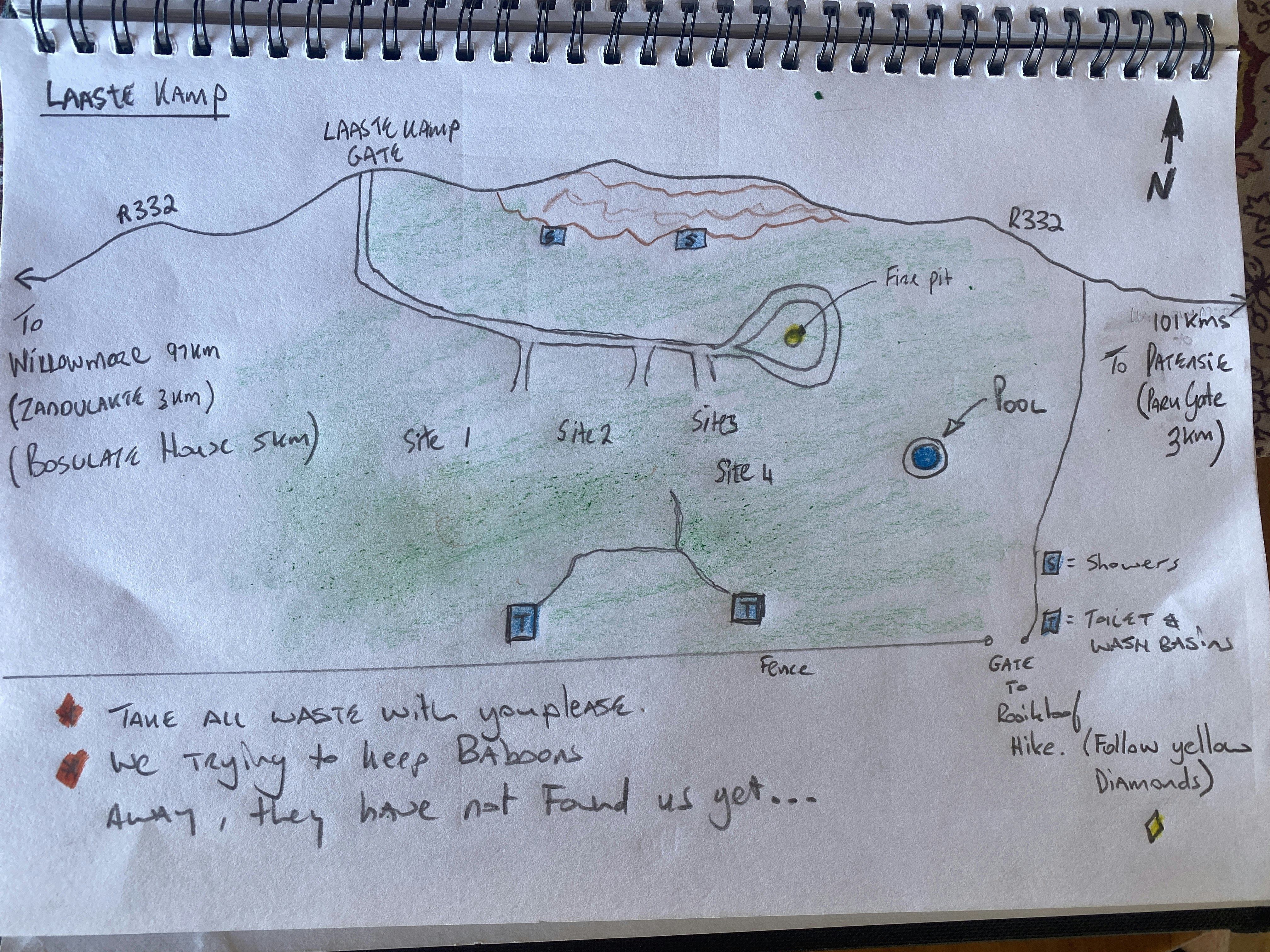 The campsite is ideal for an overnight stay or a base from which to explore the last 100 km of the reserve. The Western park’s gate is approximately 1 km away.