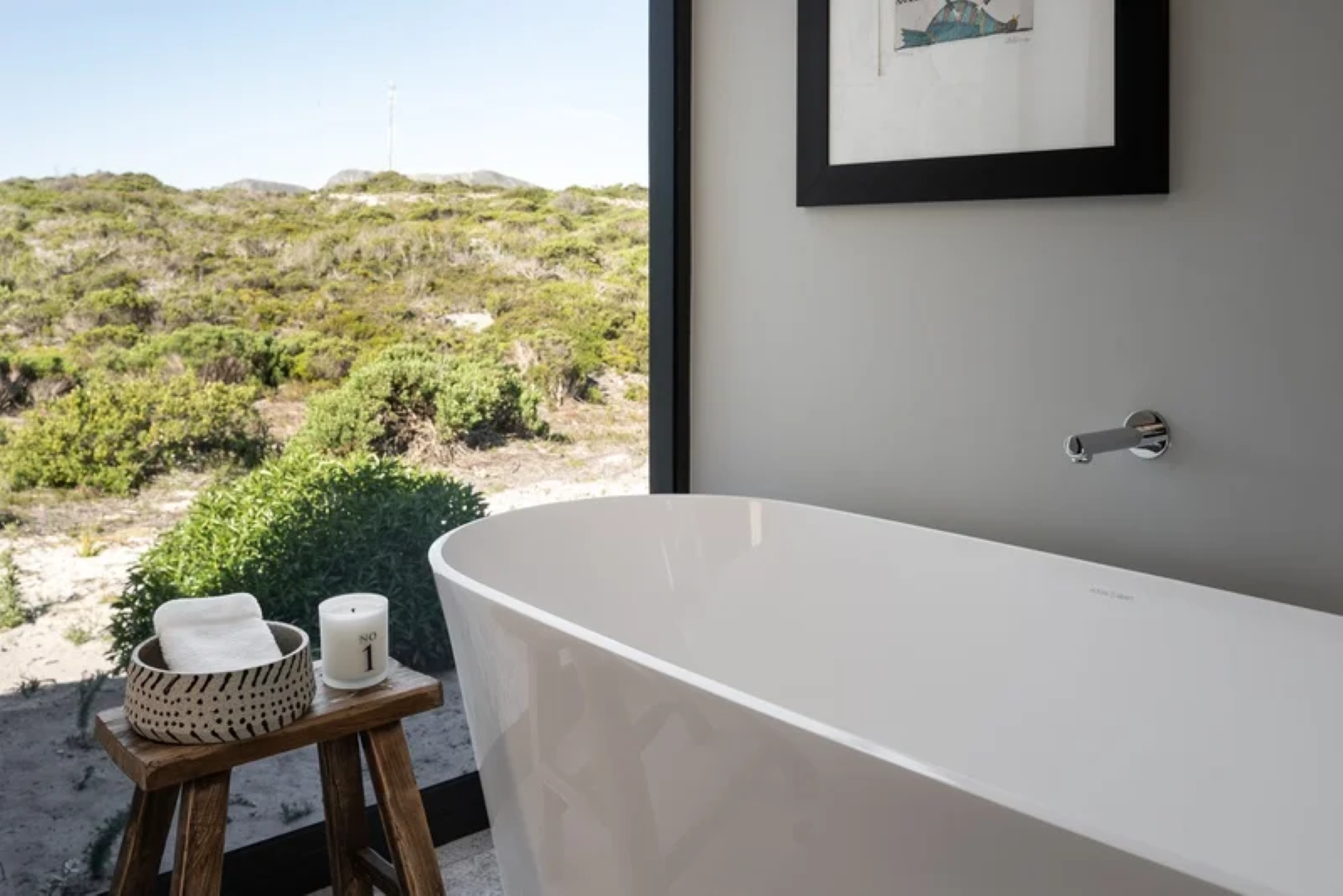 Lagom Place at Romansbaai is a luxury holiday cabin situated a mere 120 m from the beach path in the exclusive Romansbaai Beach and Fynbos Estate in Gansbaai.