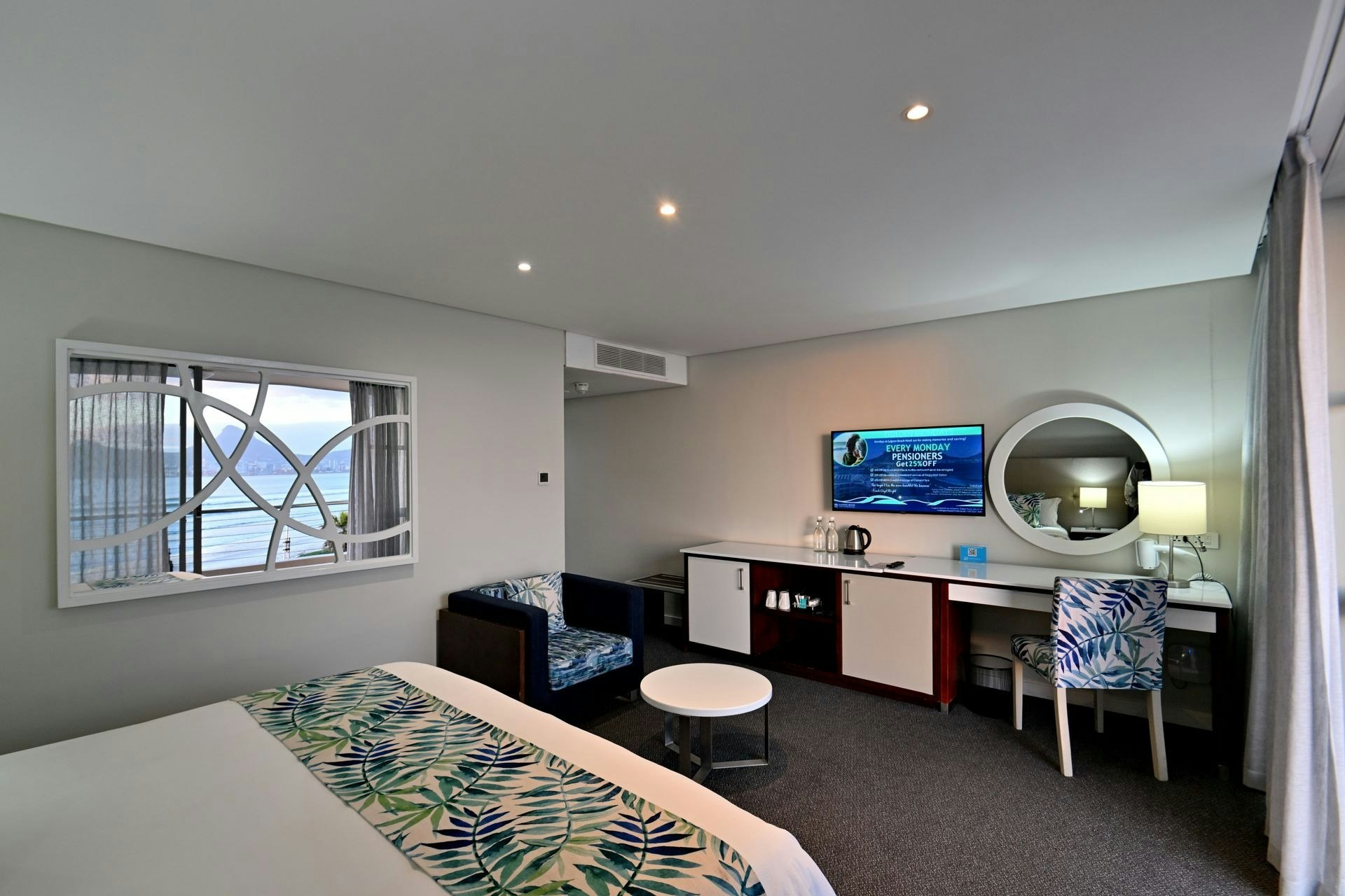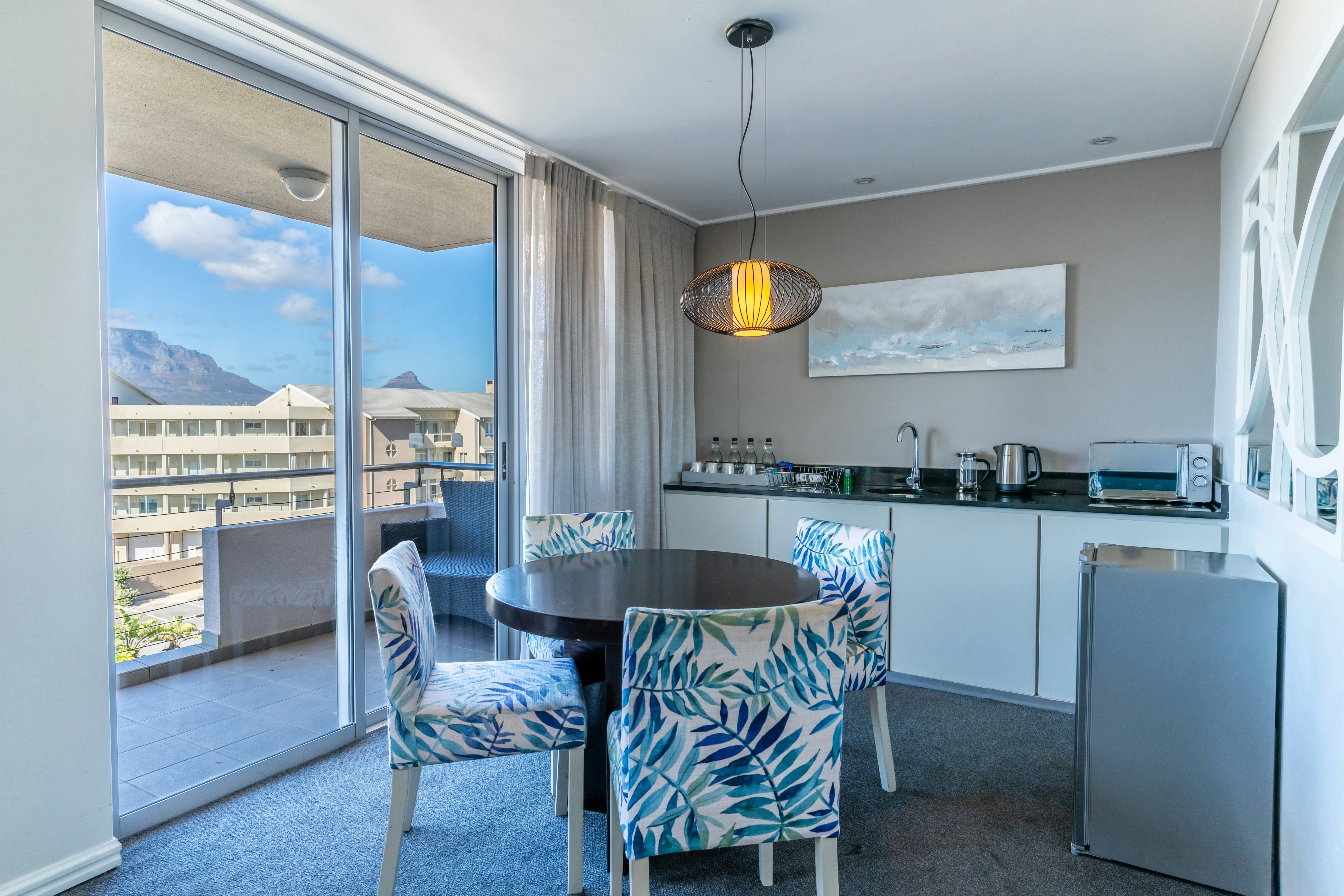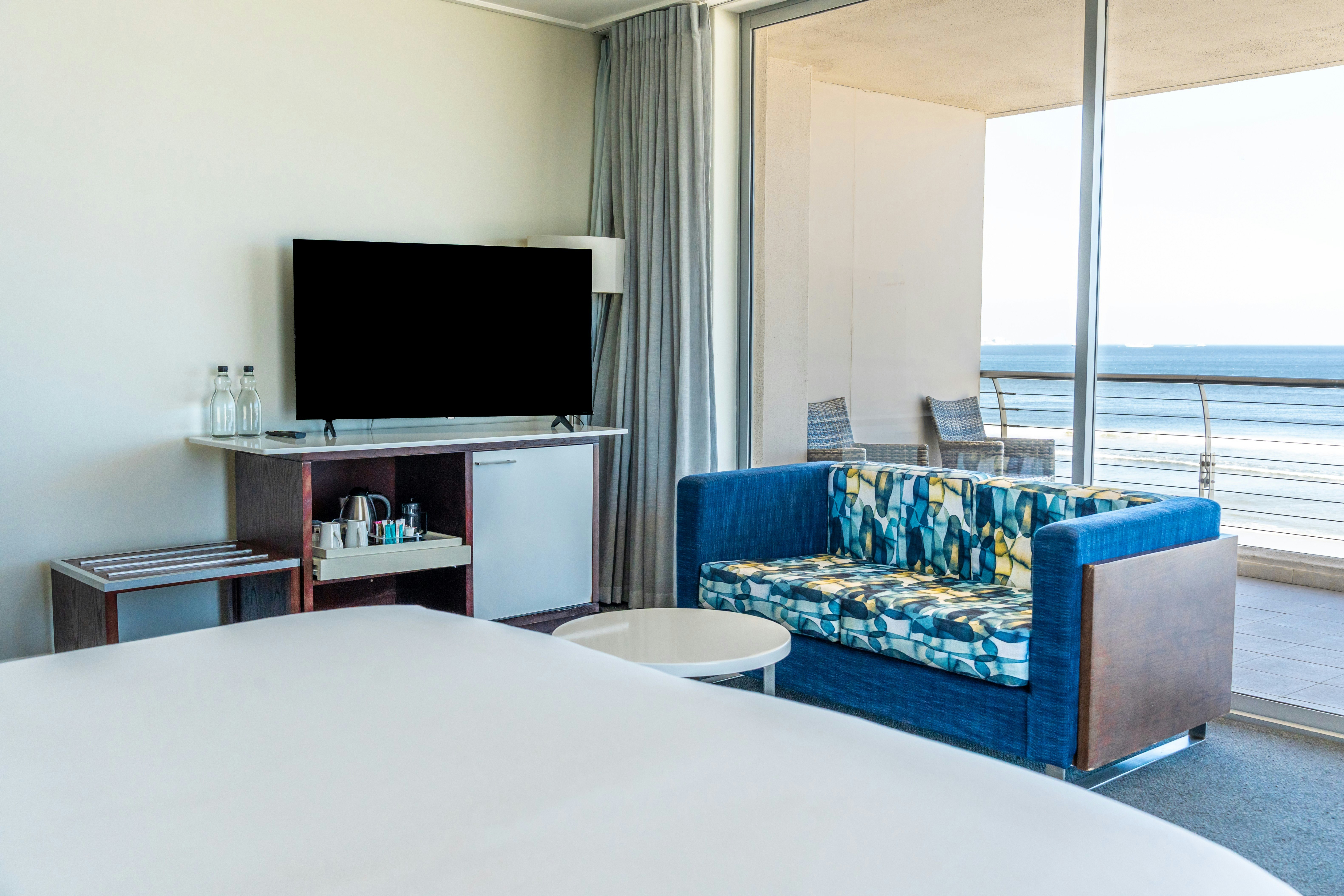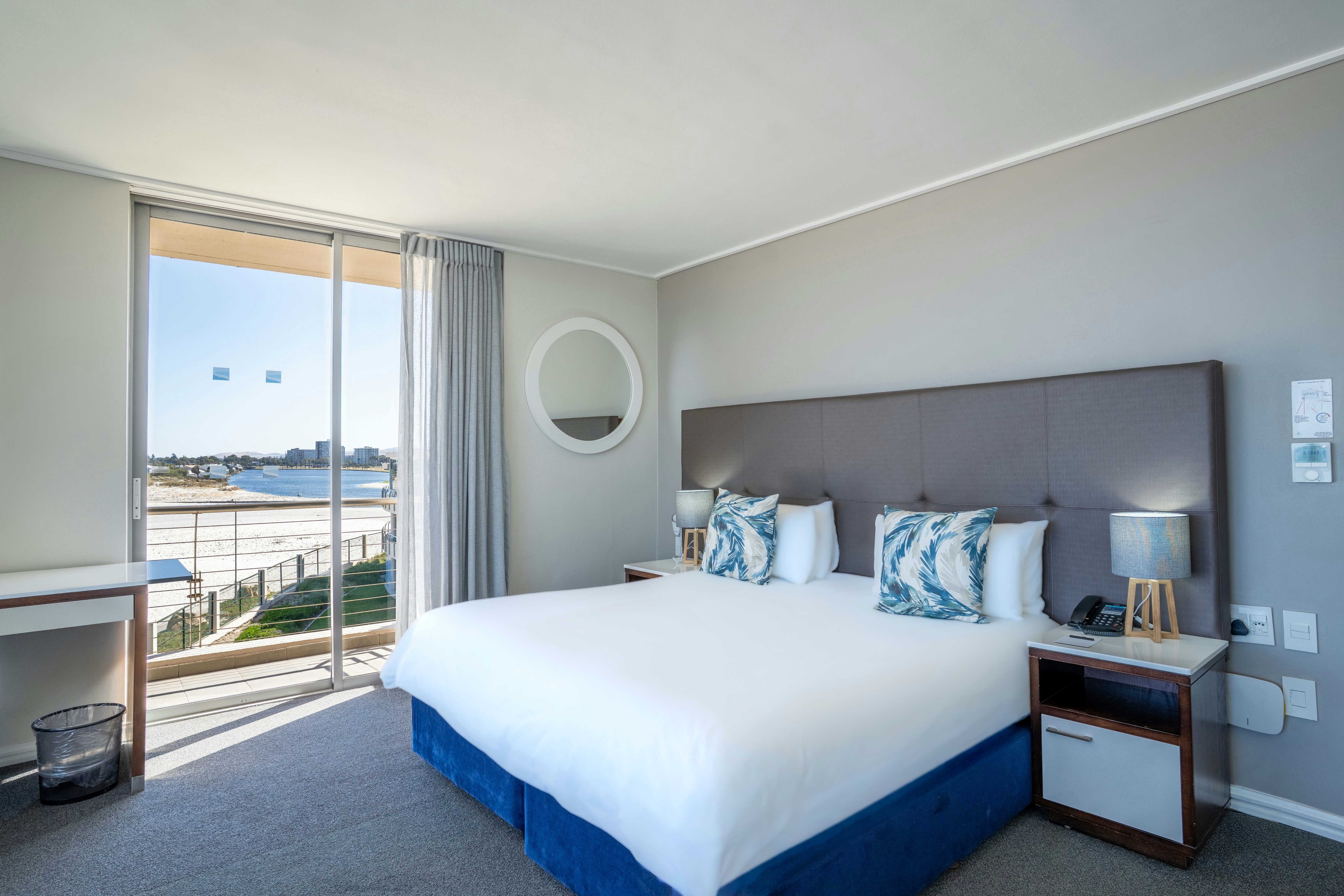 The hotel offers various elegantly appointed rooms, each featuring either twin beds or a king-size bed, with an en-suite bathroom. Select rooms provide stunning ocean views. All hotel rooms are equipped with air-conditioning, free Wi-Fi, an electronic safe, a mini-bar fridge, a hairdryer, a TV with selected DStv channels, and tea and coffee-making facilities. Guests can enjoy modern comfort combined with stylish décor and serene surroundings.