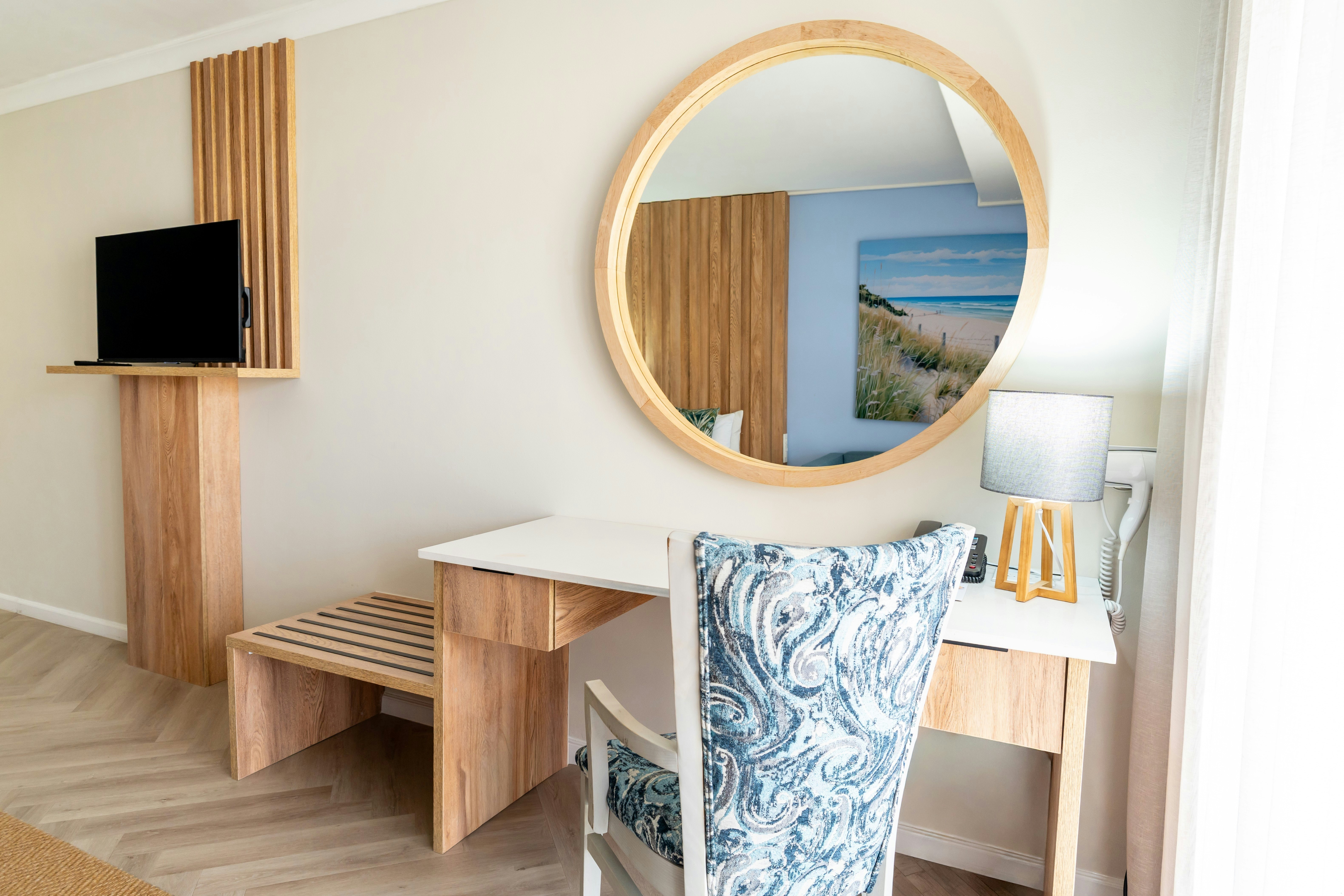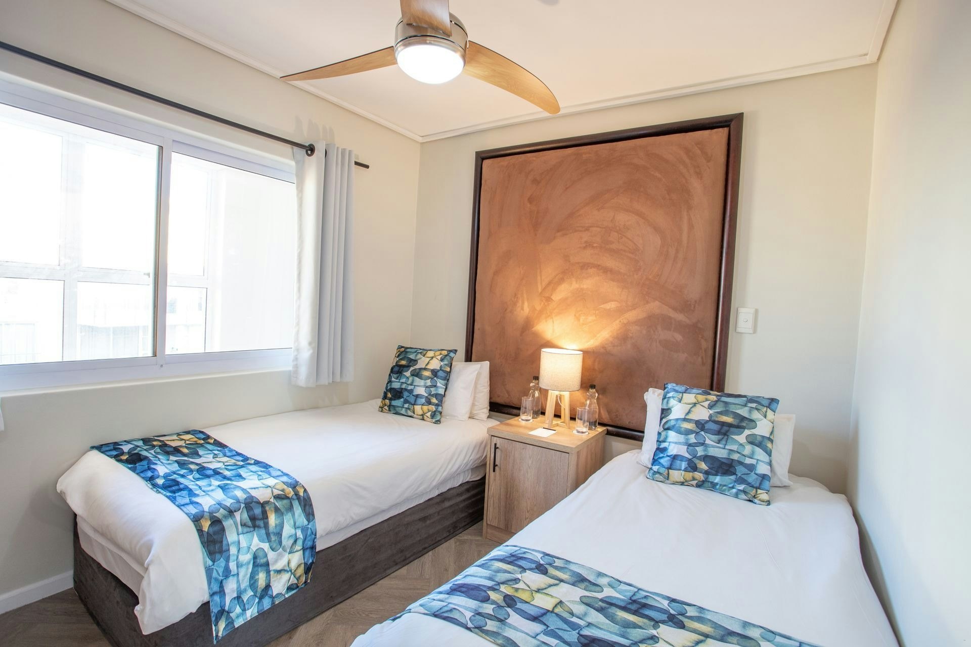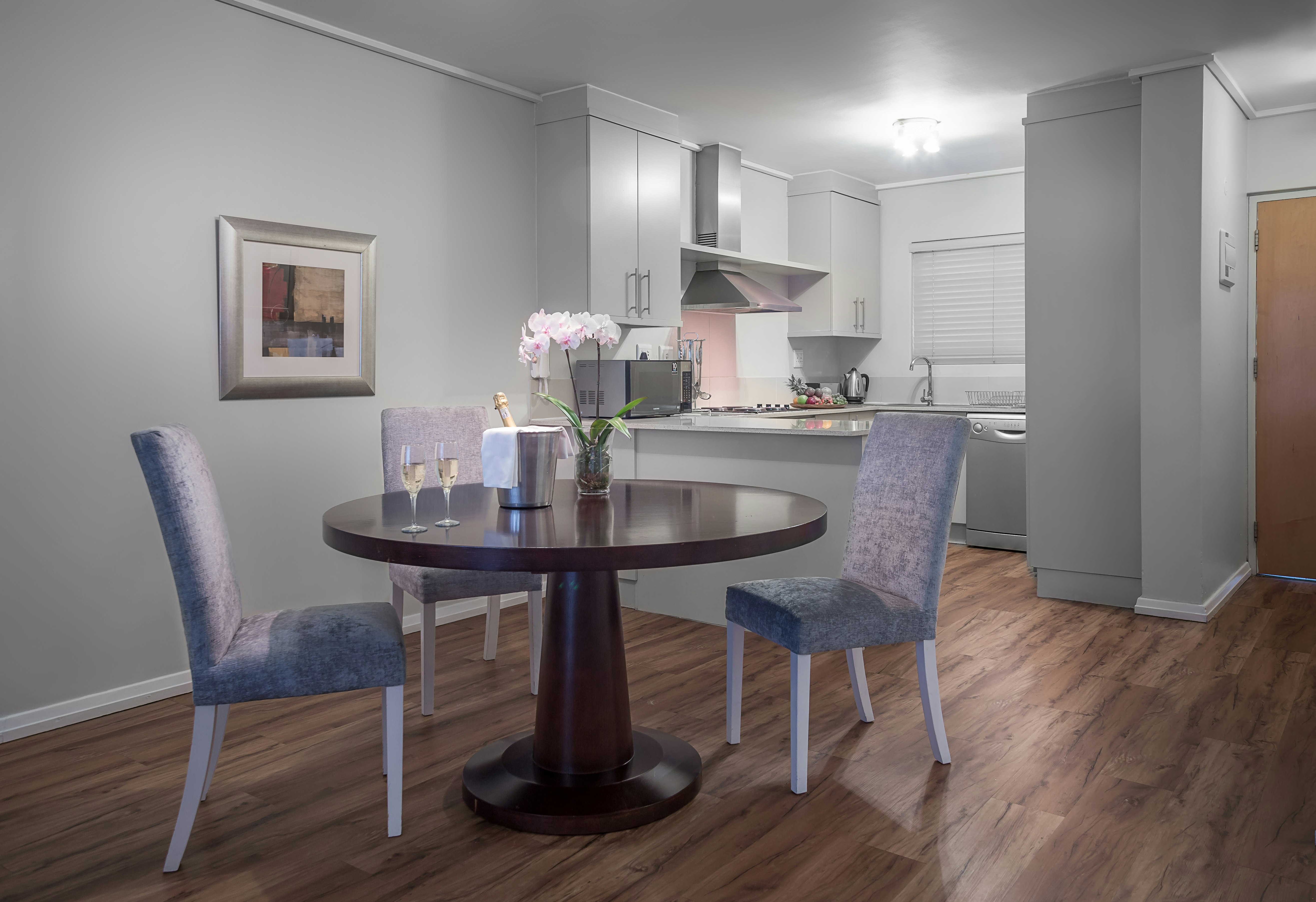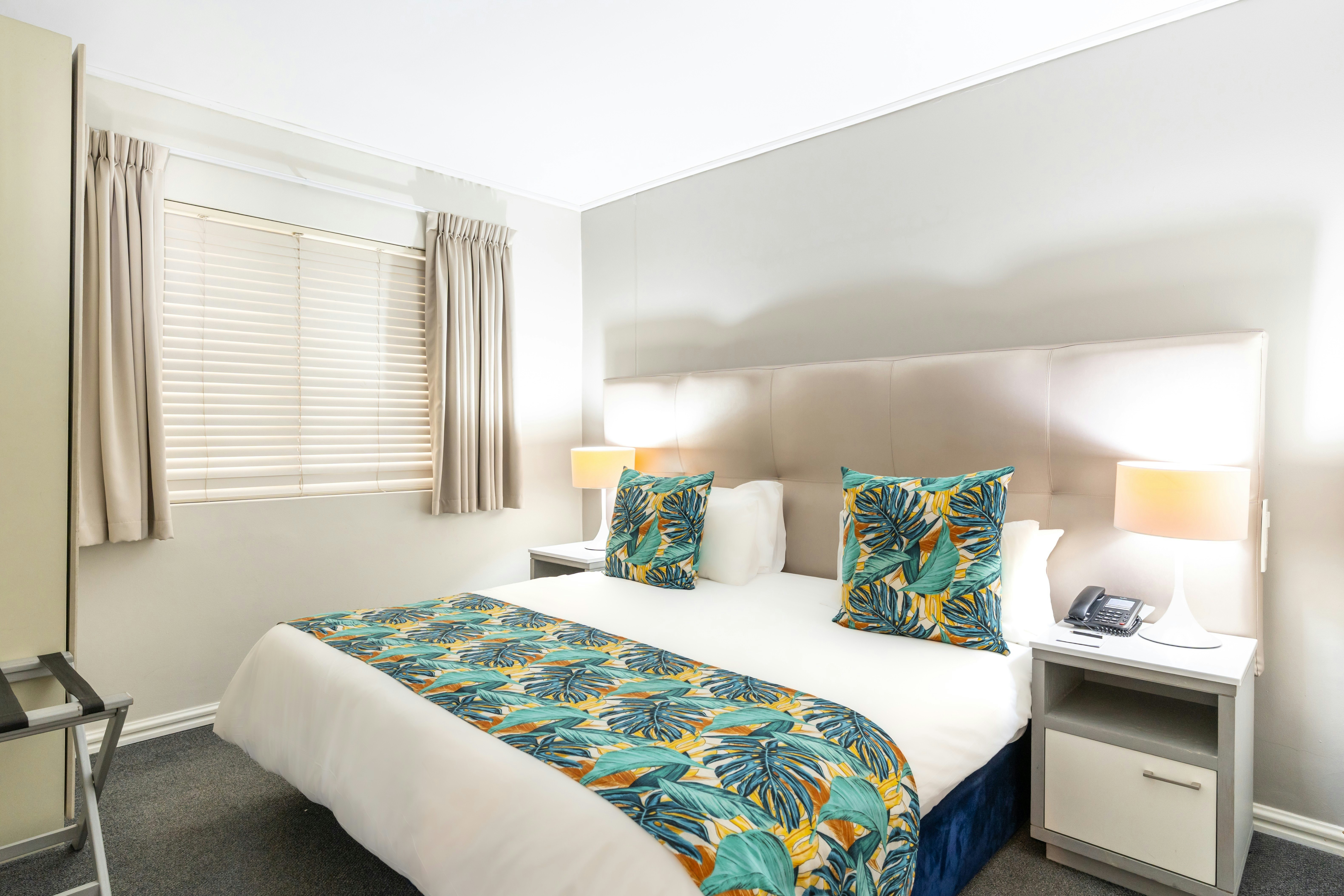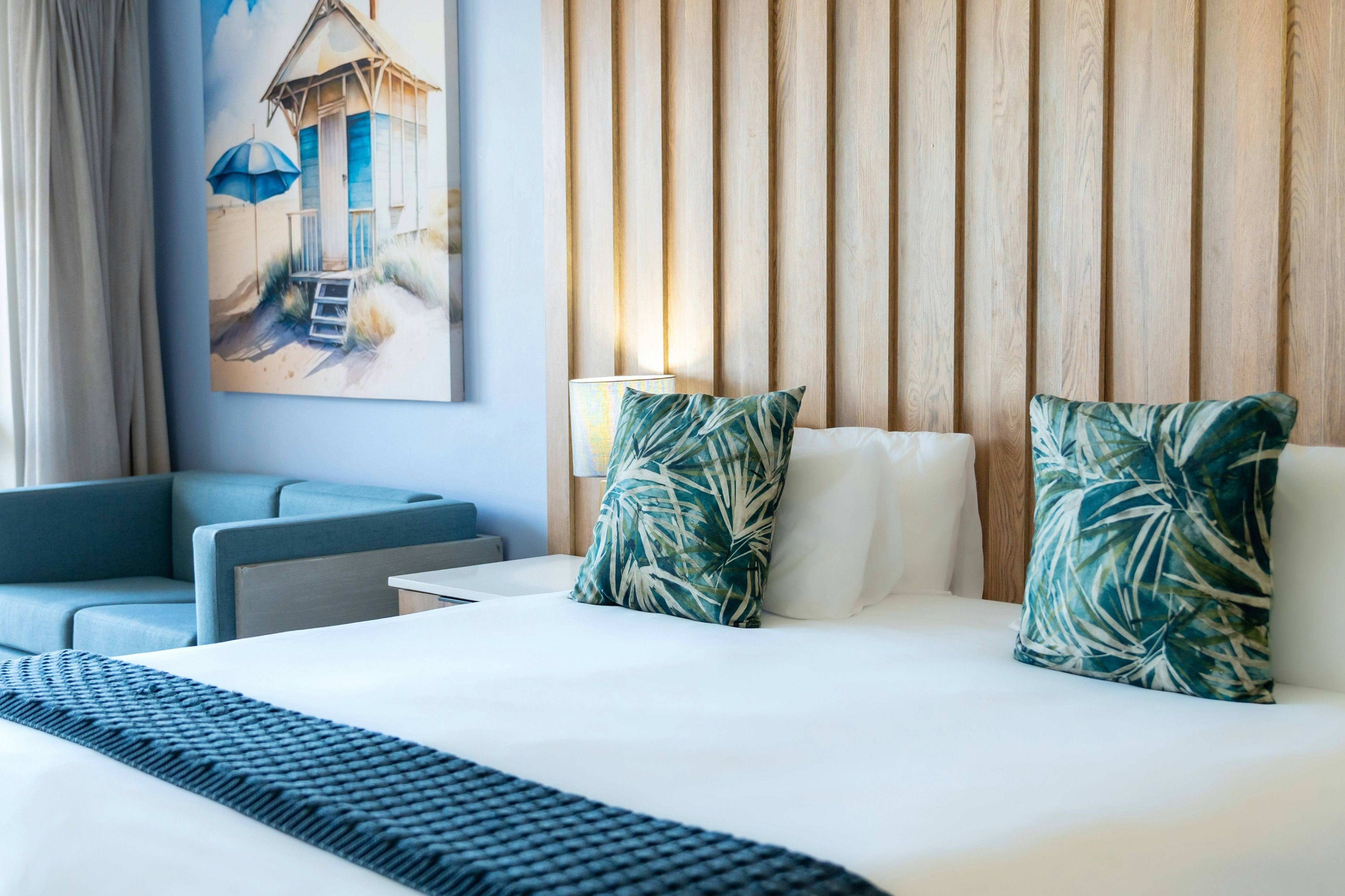 The hotel offers various elegantly appointed rooms, each featuring either twin beds or a king-size bed, with an en-suite bathroom. Select rooms provide stunning ocean views. All hotel rooms are equipped with air-conditioning, free Wi-Fi, an electronic safe, a mini-bar fridge, a hairdryer, a TV with selected DStv channels, and tea and coffee-making facilities. Guests can enjoy modern comfort combined with stylish décor and serene surroundings.