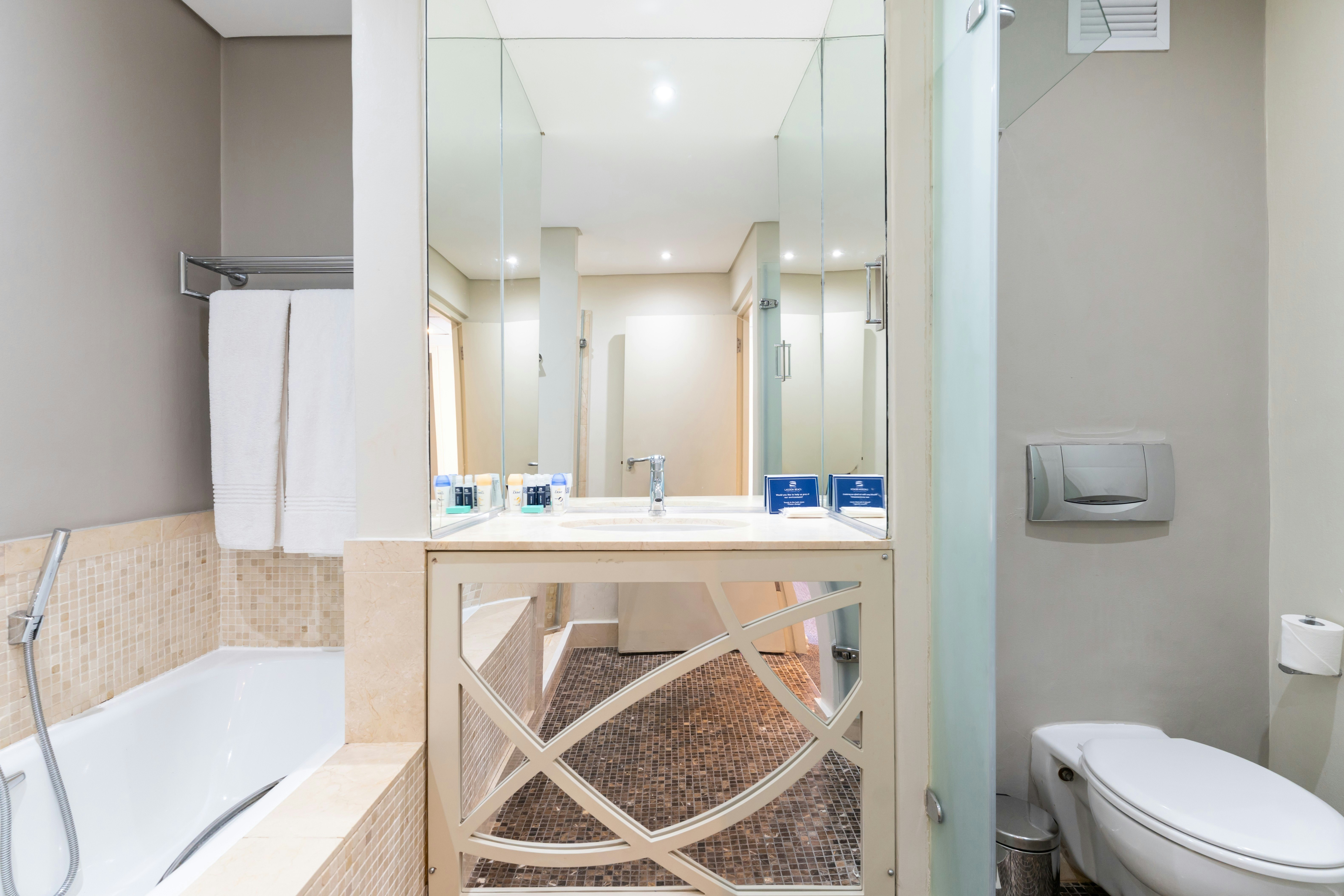 In addition to the hotel rooms, Lagoon Beach Hotel features individually decorated self-catering apartments. Each apartment has 2 bedrooms, with the main bedroom fitted with a double bed and en-suite bathroom, and the second bedroom offering twin beds with a separate bathroom. Select apartments boast ocean views and include a fully equipped self-catering kitchen, free Wi-Fi, electronic safe, hairdryer, and TV with selected DStv channels. These apartments are ideal for families or guests seeking longer stays with added independence.