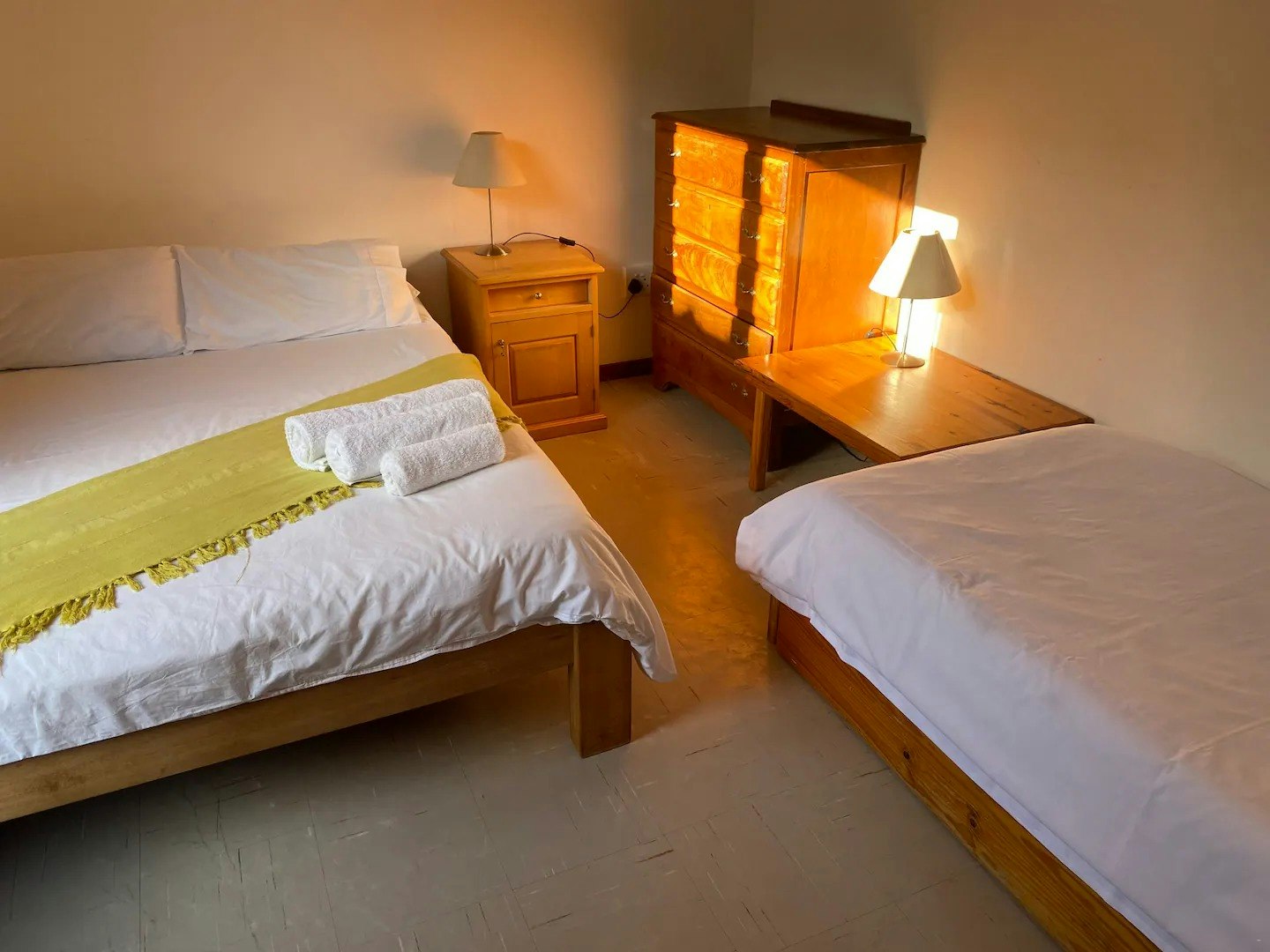 The heart of Lagoon Breeze is its airy open-plan living space. The kitchen is a chef’s delight, equipped with a stove-oven, microwave, fridge/freezer , cutlery, crockery, toaster, and dishwasher. A breakfast bar with stools adds a casual touch. The lounge area provides comfy seating and a cosy fireplace, ideal for unwinding after a day of local adventures. Guests are also offered complimentary Wi-Fi.