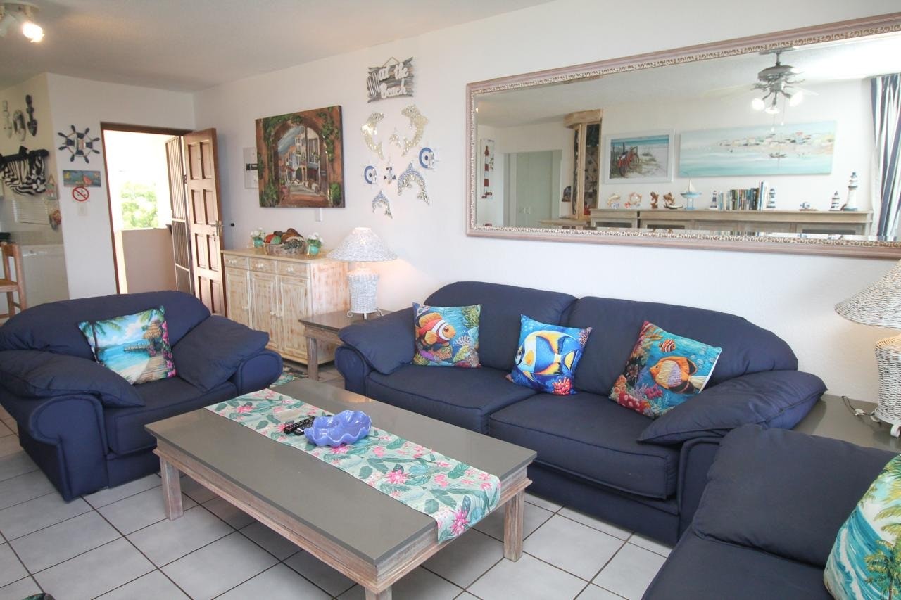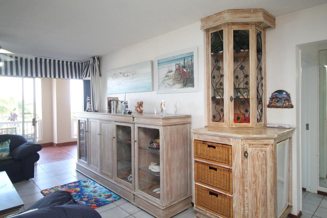 Situated on the top floor, the apartment has a lovely beach and sea view and comprises of 3 bedrooms and 2 bathrooms. The main bedroom is furnished with a double bed and has an en-suite bathroom with a bath and a shower. The room also has a safe for valuables and the main room and lounge opens onto a large balcony. The other 2 rooms each contain a tri-bunk bed, and share the use of a bathroom with a shower. Although linen, pillows and blankets are provided, guests need to bring their own towels, toilet paper, toiletries and cleaning detergents for the kitchen. That includes dishwashing liquid, scourers and dish cloths. Clean, good quality linen, mattresses and pillows area provided. Guests must please bring their own swim towels.