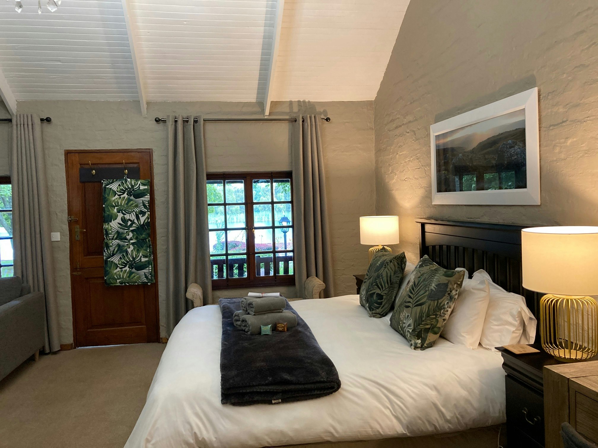 Lakeside 3 and Lakeside 4 are beautifully appointed and consists of 2 chalets side-by-side, located on the banks of the lake and each offering uninterrupted patio views of the lake, swimming pool, gardens and mountainside. Each chalet can accommodate 2 persons and features an en-suite bathroom. In addition, each chalet boasts a wood-burning fireplace, a bar fridge, and tea- and coffee-making facilities.