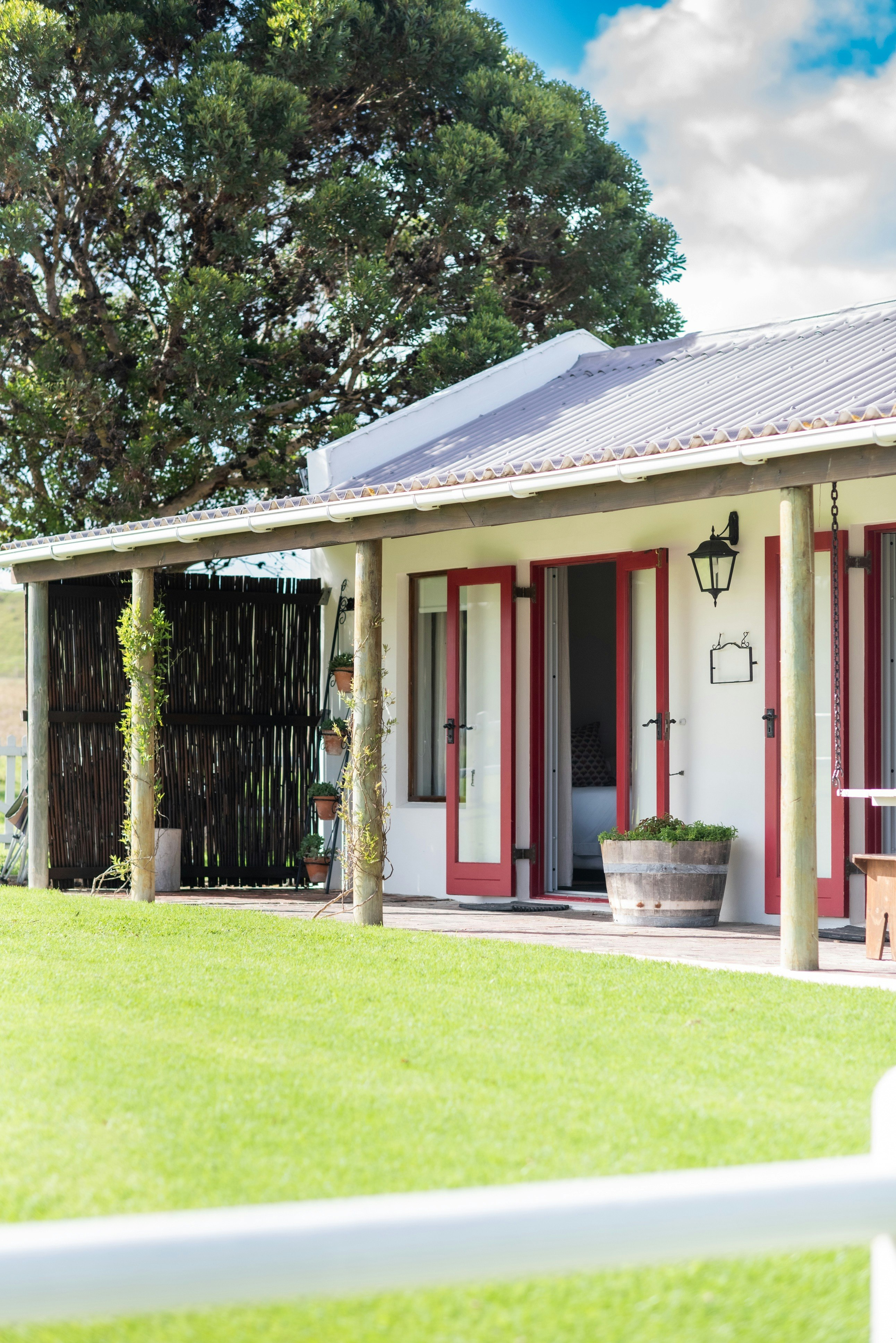 Gaste het toegang tot veilige parkeerplek en 'n swembad. Daar is baie diere op die plaas en terwyl die ouers ontspan, kan die kinders plaaseiers vir ontbyt bymekaarmaak, die eende voer, die lammers bottel gee en die alpakkas, bokke en varke voer.