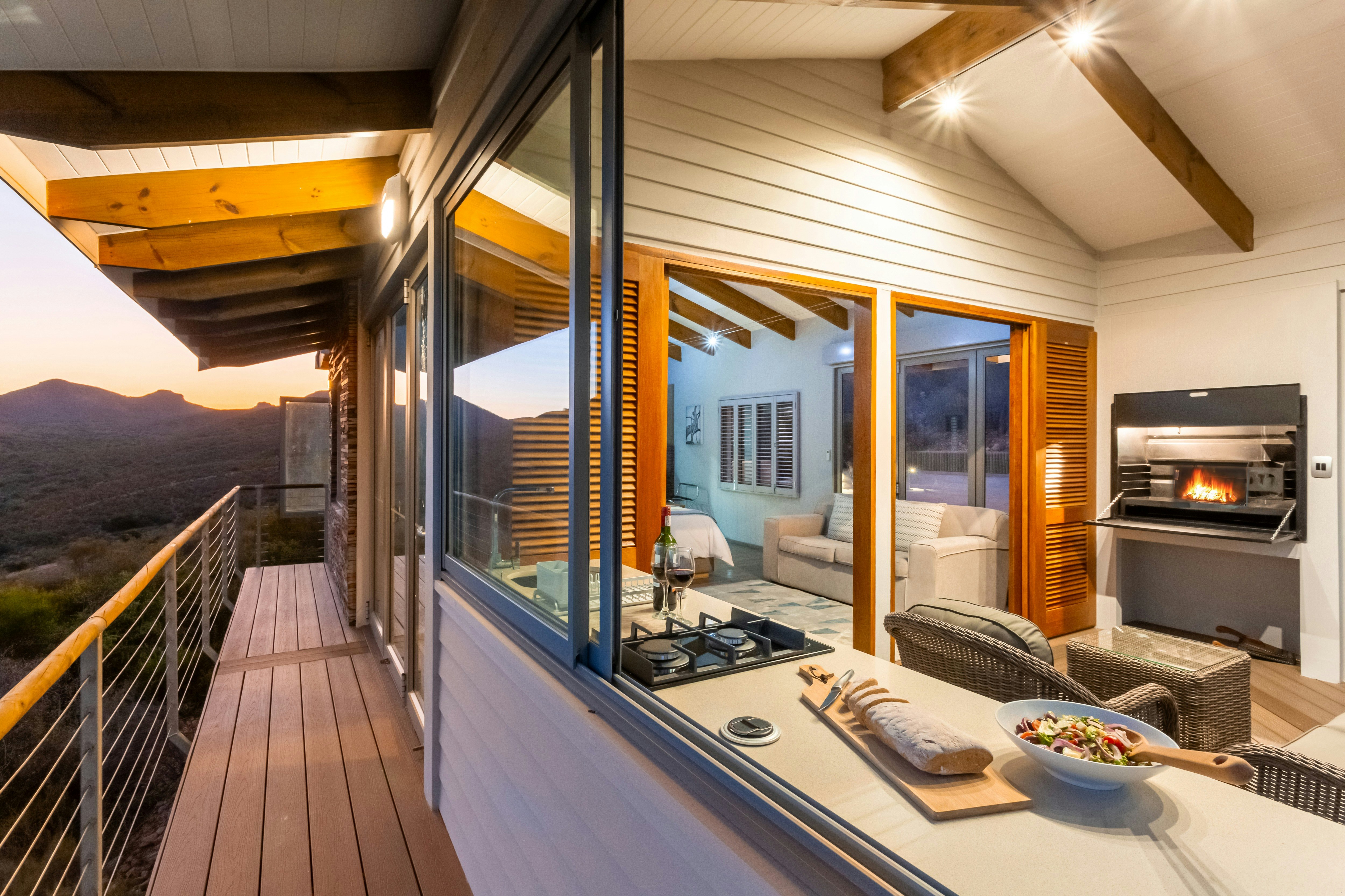 Buite beskik die eiendom oor 'n dek wat rondom die eiendom strek, ideaal vir sonsondergange. Gedurende die somerdae wag 'n verfrissende gemeenskaplike swembad op gaste, wat 'n verkwikkende blaaskans van die hitte bied, sowel as 'n braai- en boma-area.