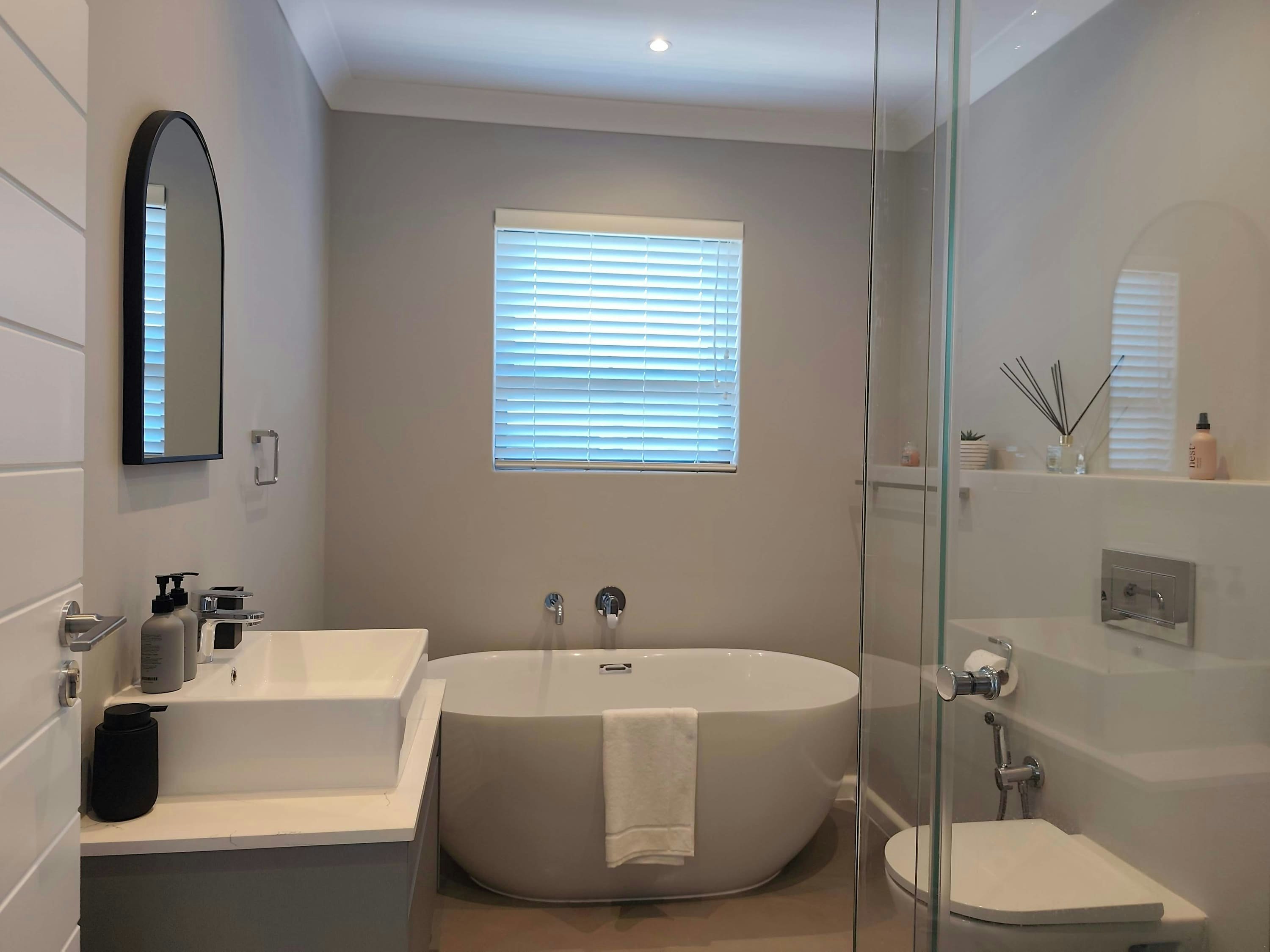 Gaste kan 'n ruim onderdak-patio met 'n buite-eetarea, 'n braai en 'n omheinde tuin geniet. Veilige parkering is op die perseel beskikbaar. Plaaslike geriewe soos winkels en restaurante is naby, met Lookout-strand ongeveer 1.2 km weg. Aktiwiteite in die omgewing sluit in swem, kajakvaart, visvang, bootvaart en branderplankry.