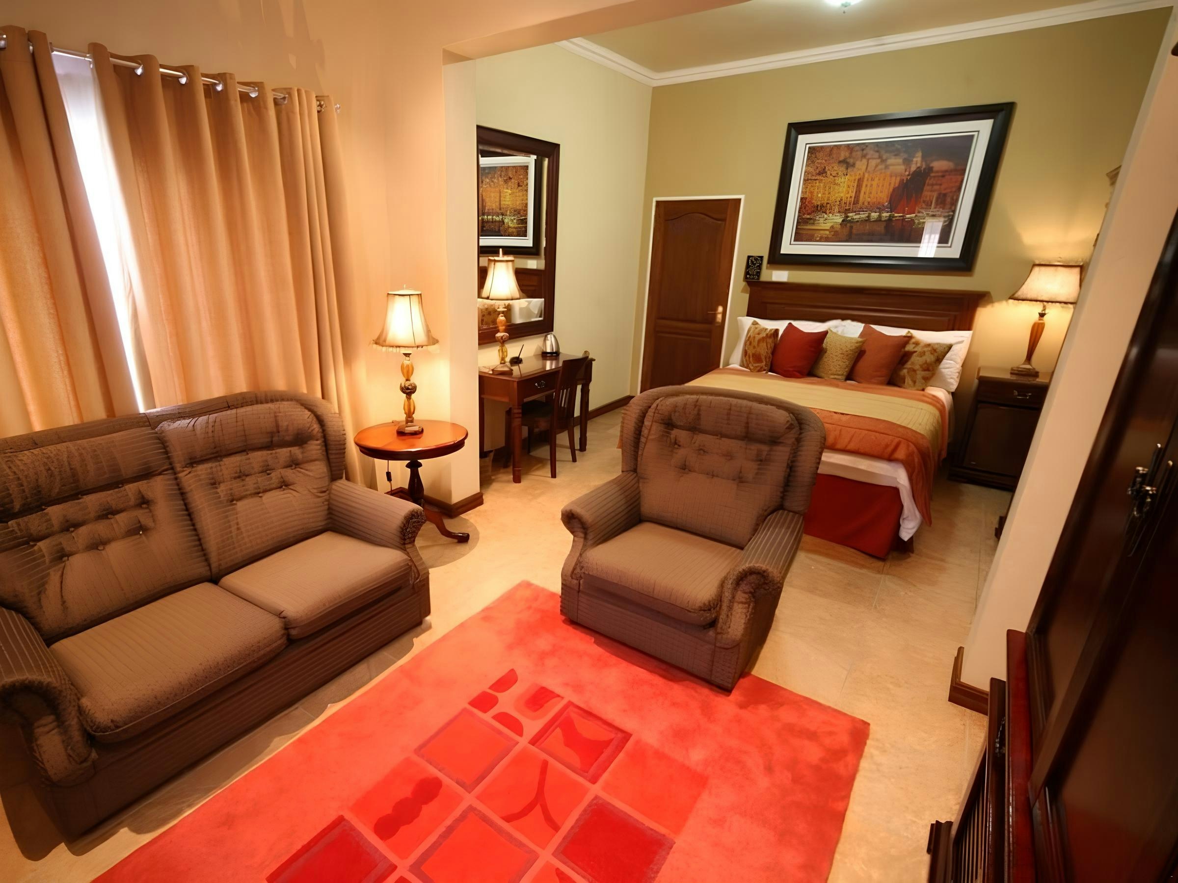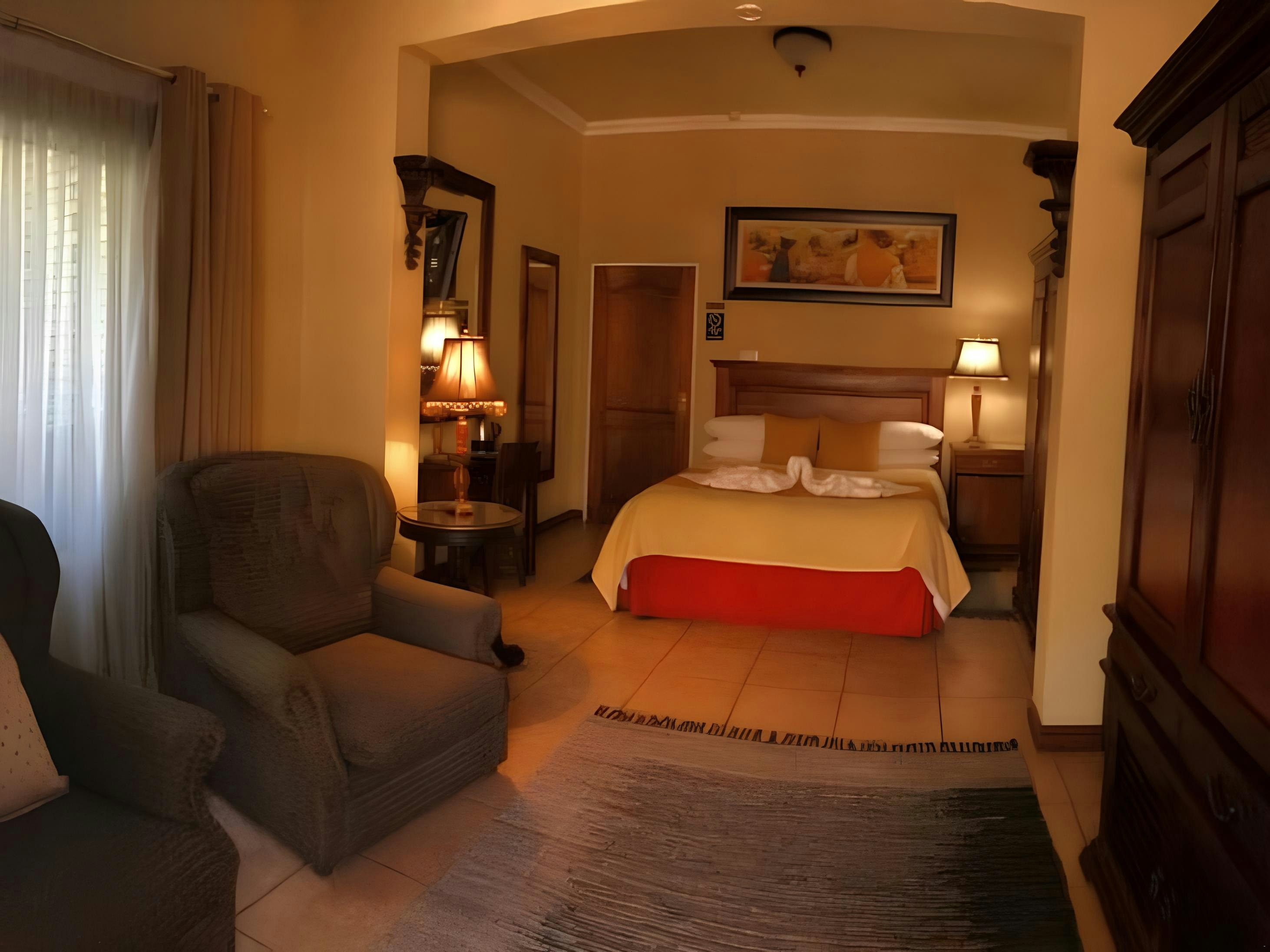 This guesthouse offers guests a choice of 7 well-appointed rooms, each with a private entrance. The rooms feature comfortable beds and en-suite bathrooms. Quality linen and bath towels are provided. All the rooms offer additional amenities such as air conditioning, a hairdryer, a desk, a chair, a safe, a heater, a TV with DStv channels, Wi-Fi, and a minibar. Each room leads to the inside verandah.