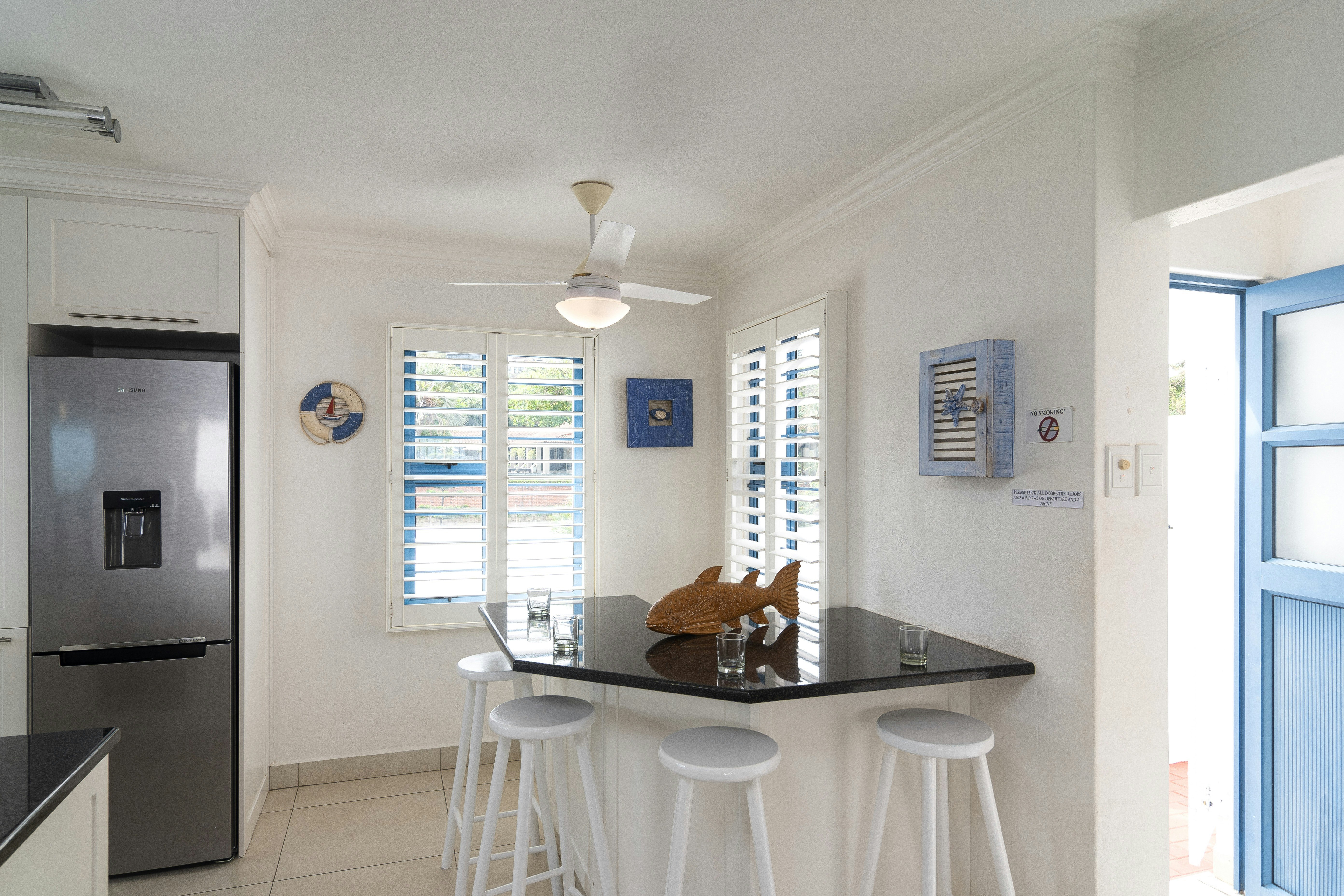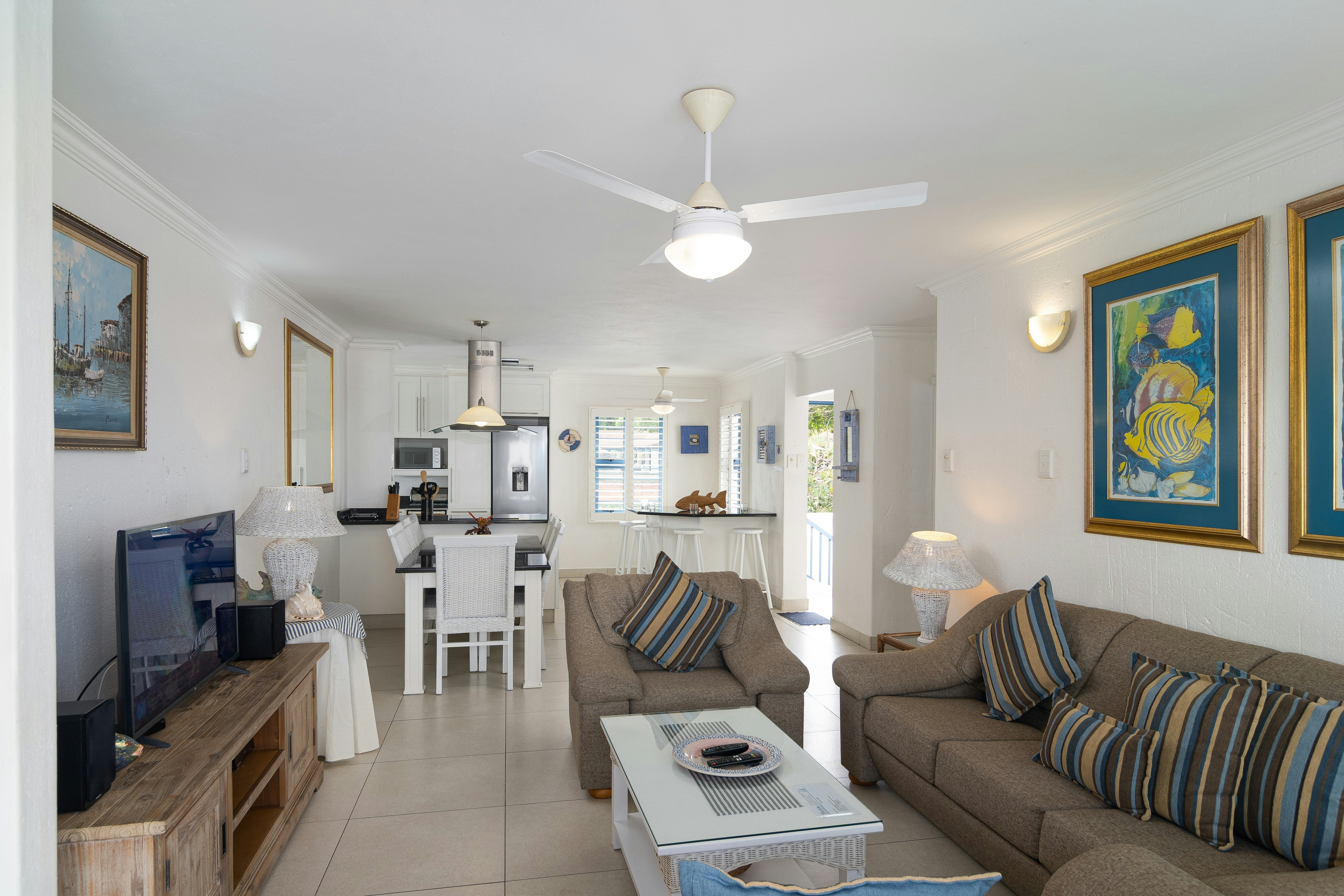 Die oopplan-leefarea beskik oor 'n sitarea, eetarea en 'n kombuis. Die kombuis is met 'n yskas-vrieskas, stoof, oond, broodrooster, ketel, mikrogolf, wasmasjien en 'n skottelgoedwasser toegerus. Die sitarea het 'n gemaklike sitkamerstel en 'n TV met DStv. Gratis WiFi is beskikbaar. Die sitarea lei na 'n stoep met 'n houtskoolbraai. Die kompleks is veilig met die hoofhek wat met 'n afstandbeheerder werk. Verder is daar 'n enkeltoesluitmotorhuis met beperkte, ongeallokeerde parkeerplek.