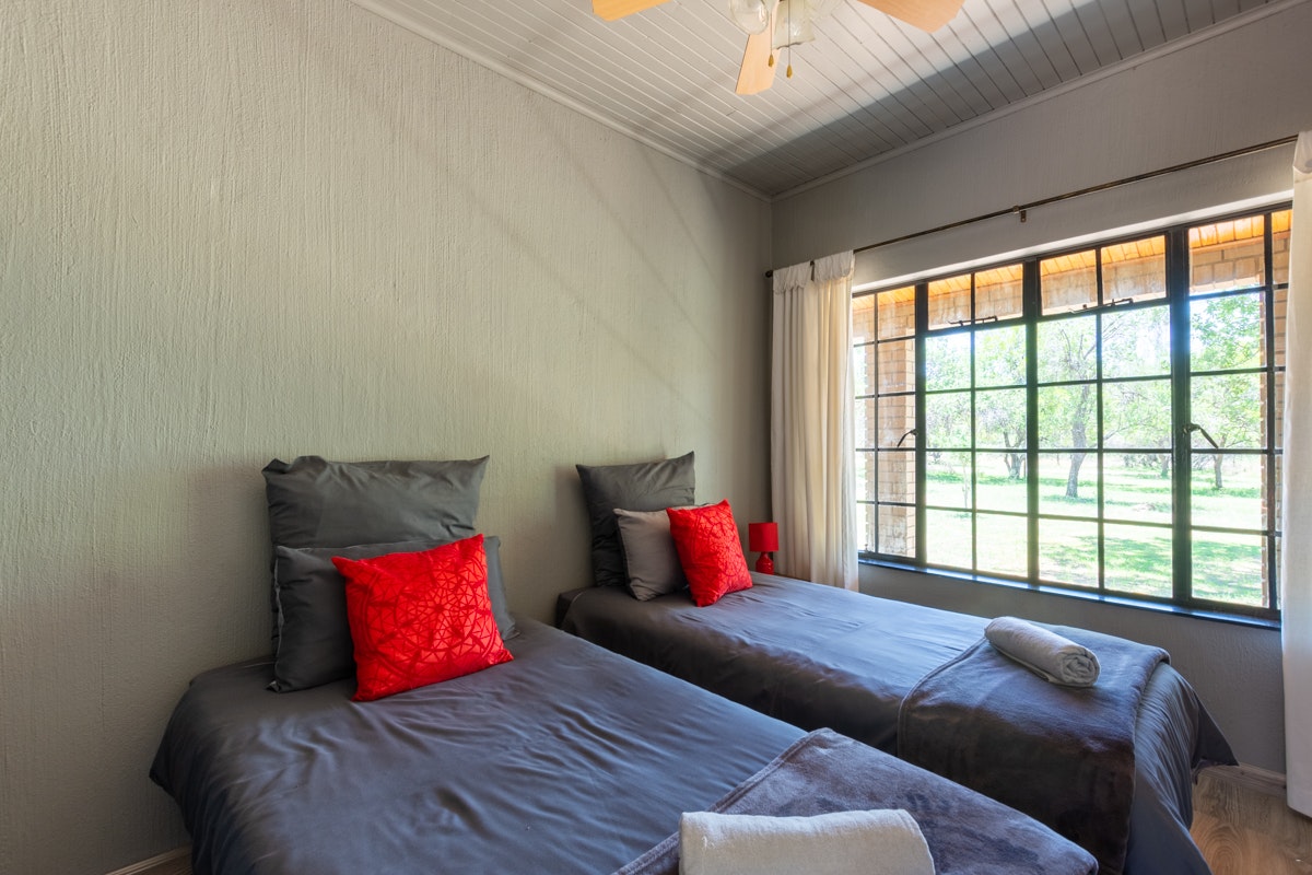 Verblyf bestaan uit 8 slaapkamers, geskik vir tot 16 gaste. Daar is 5 slaapkamers binne die hoofhuis en 3 slaapkamers buite in 'n aangrensende woonstel. In die hoofhuis het drie slaapkamers elk 'n dubbelbed, een slaapkamer het drie enkelbeddens en die oorblywende slaapkamer het 1 enkelbed.