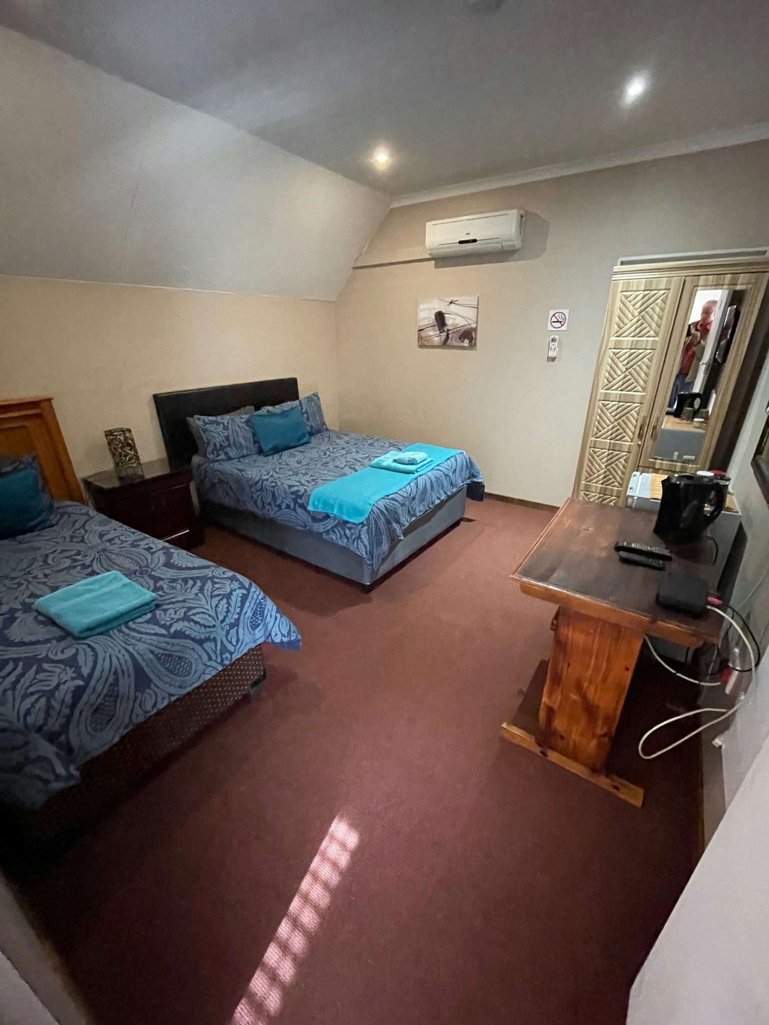Daar is 7 stylvolle en suite-slaapkamers wat elk toegerus is met lugversorging, 'n TV met M-Net en sekere DStv-kanale, onbeperkte vesel-WiFi en tee- en koffiemaakgeriewe. Die gastehuis het 'n lieflike buite-area met 'n swembad omring deur 'n groot groen grasperk en skaduryke bome.