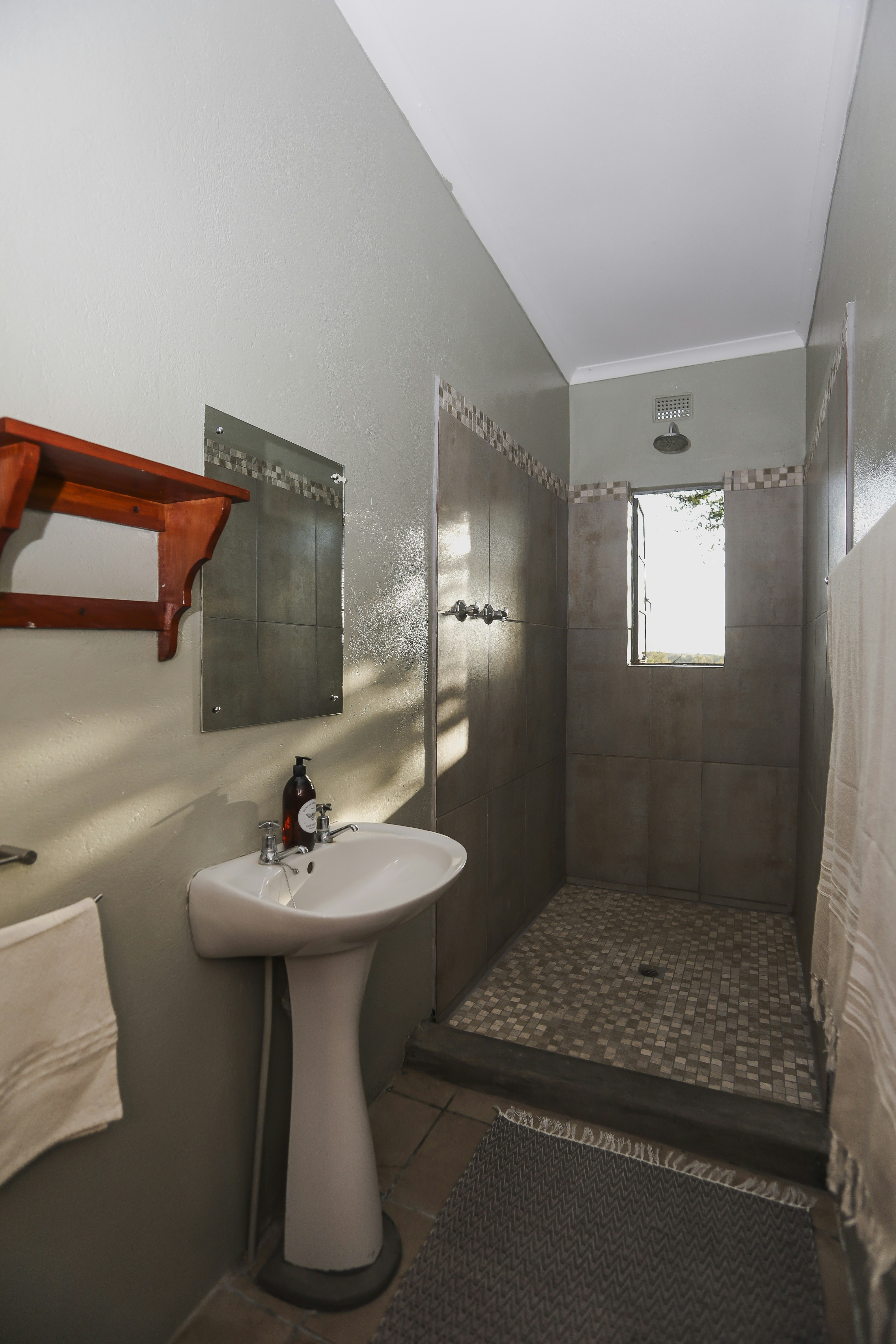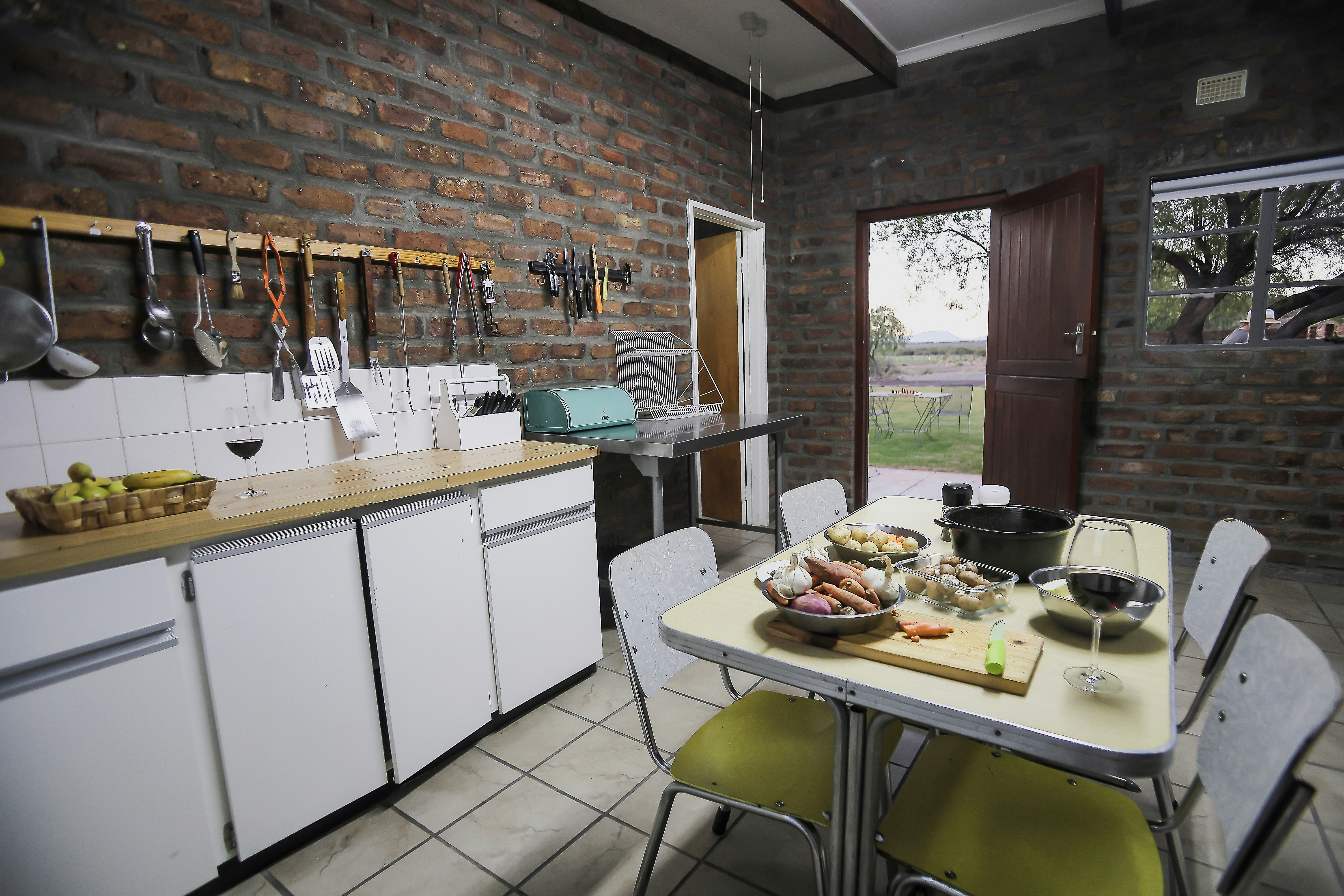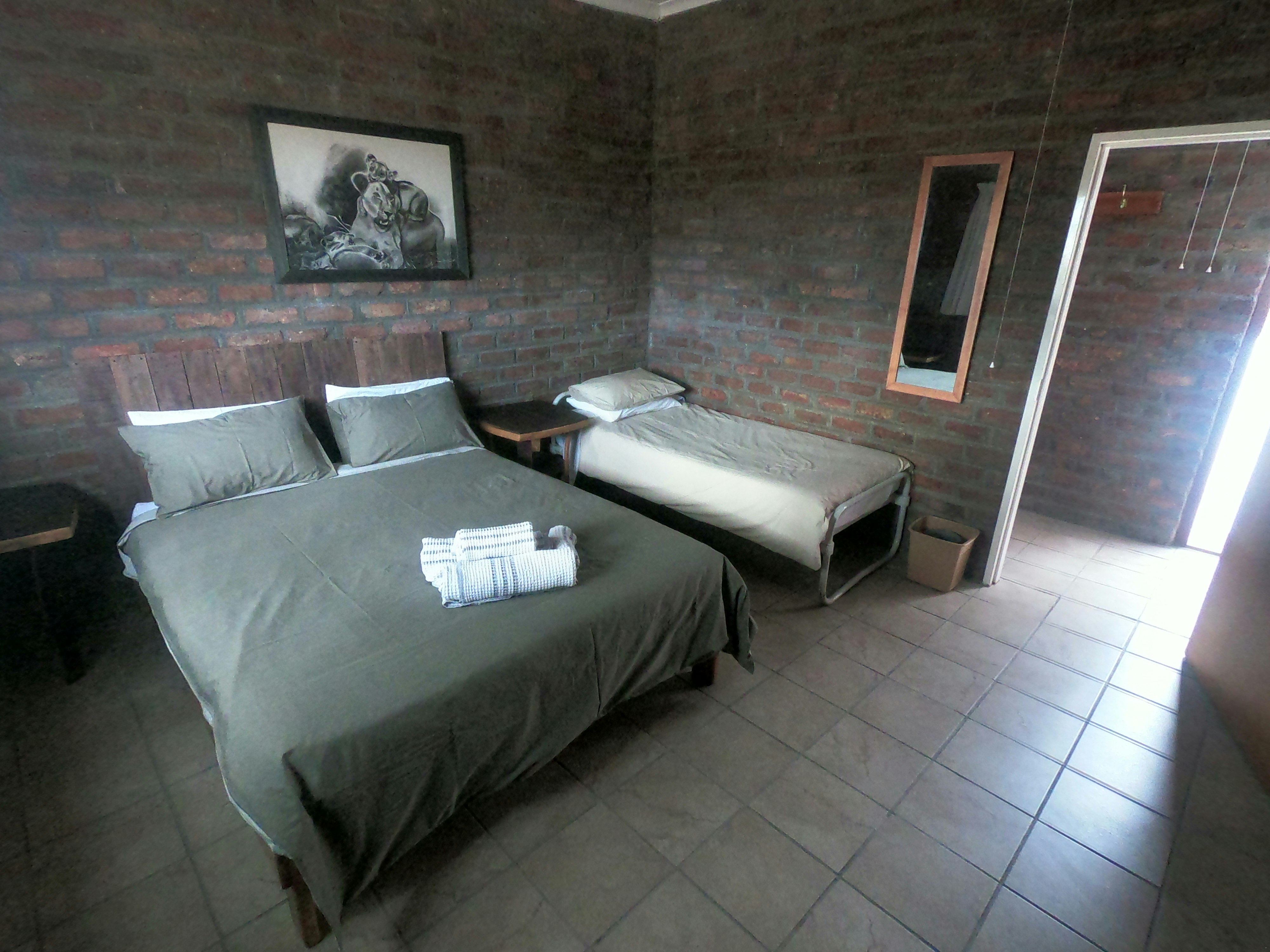 This solar and gas-powered property consists of 3 bedrooms and ample ablution facilities. The main and third bedrooms are each furnished with 1 single bed and 1 queen-size bed, and the second is furnished with 3 single beds. There is a bathroom fitted with a shower and bath and three separate toilets. The open-plan kitchen contains a double-door fridge, a gas stove with an oven, ample cooking utensils, and pots.