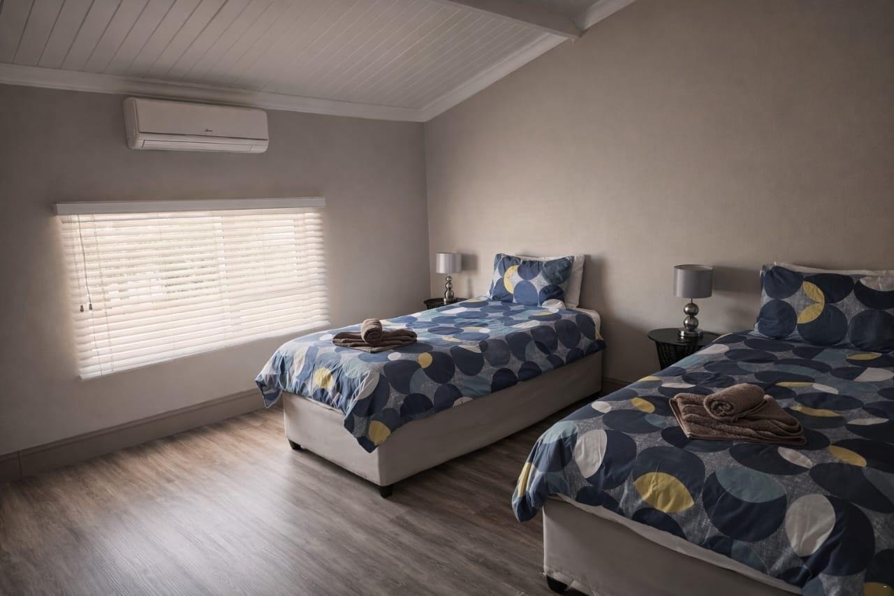 Apartment 7 comprises 2 bedrooms and can accommodate 6 guests. The main bedroom features a double bed, the second bedroom features 2 single beds with 2 single beds in the lounge area. Both rooms share a bathroom which comes fitted with a shower, bath, basin and toilet. Other facilities include air-conditioning, a kitchen equipped with a fridge, microwave, stove and oven, a lounge, a dining area, tea- and coffee-making facilities and a TV with exclusive DStv channels.