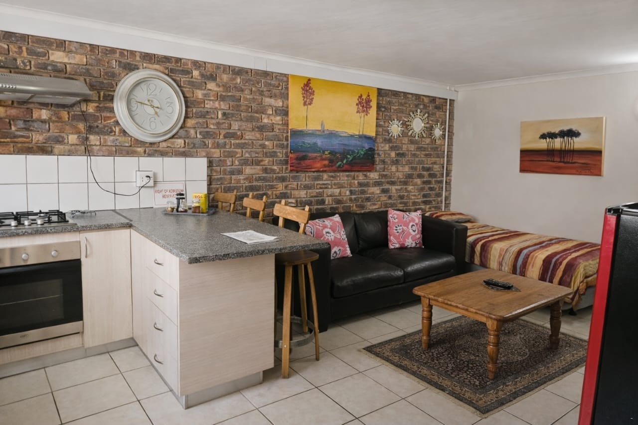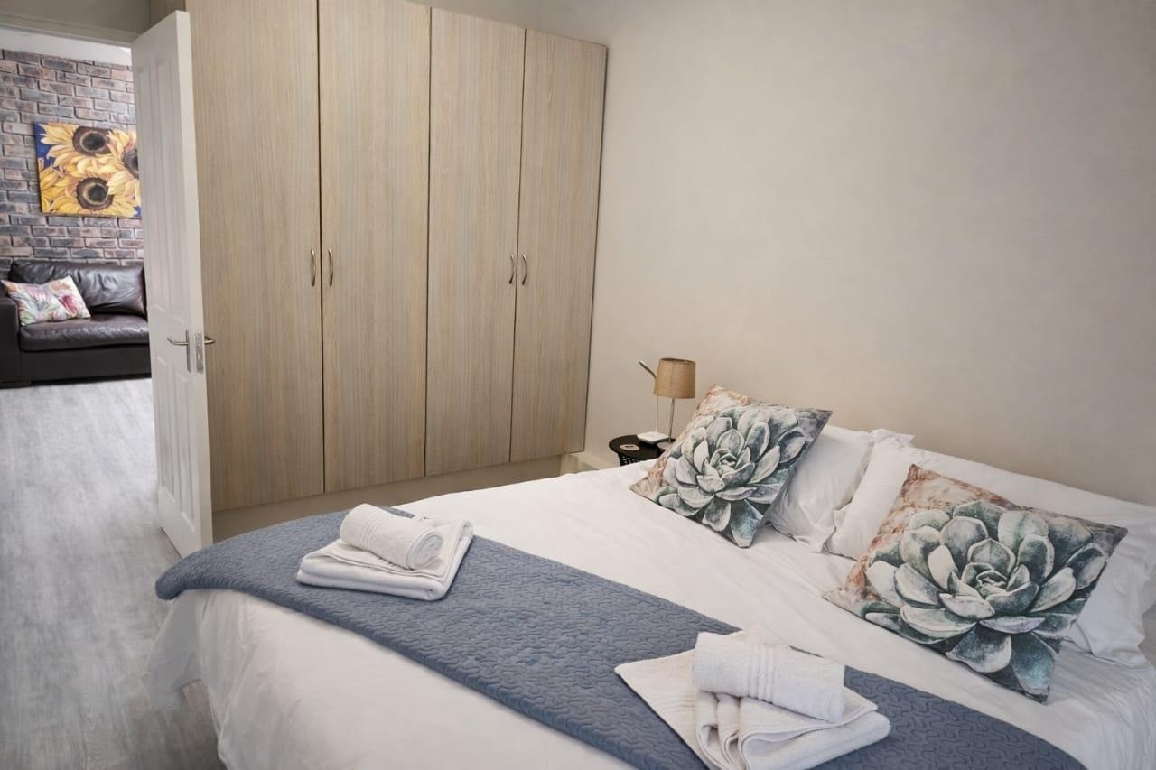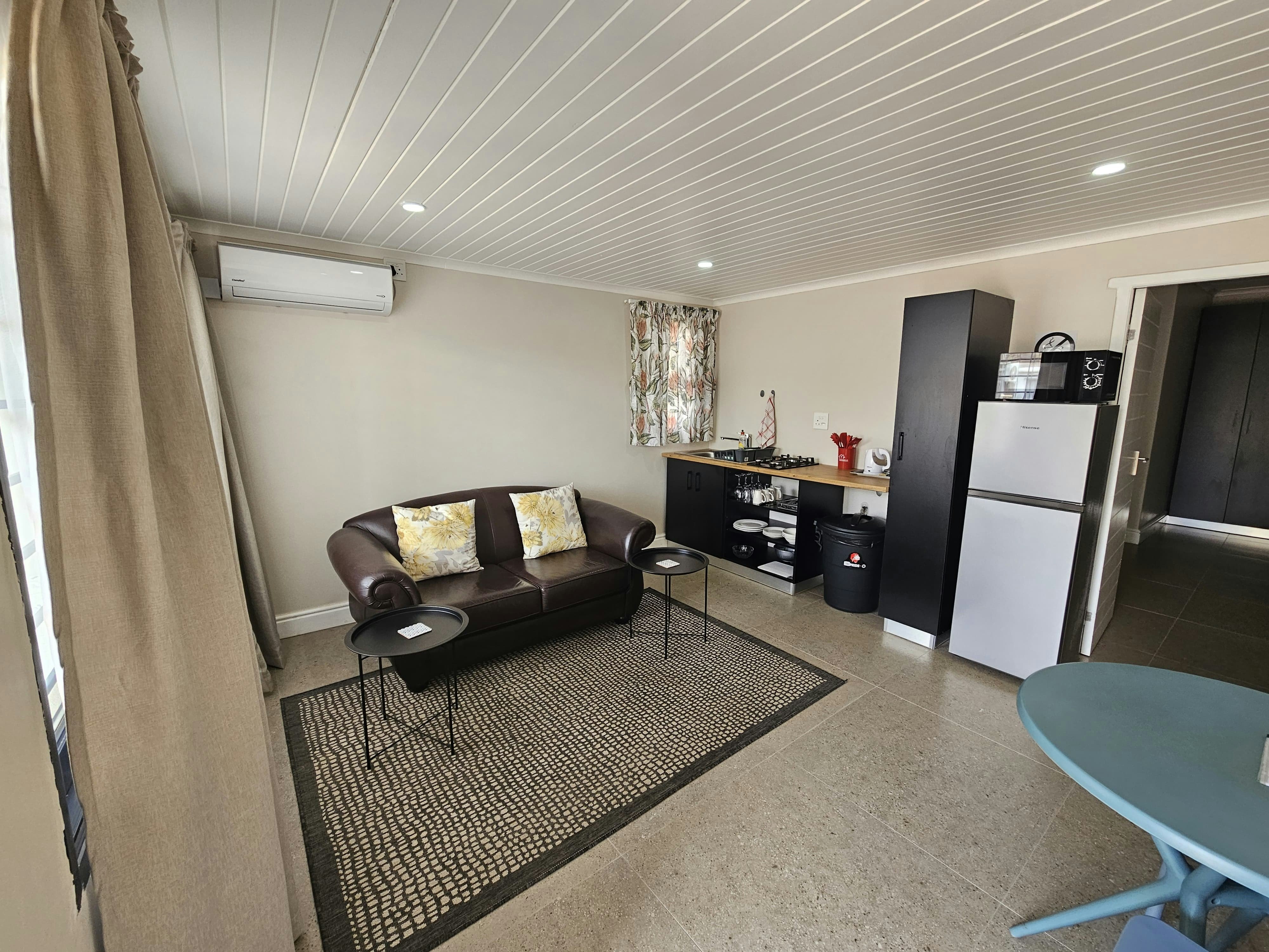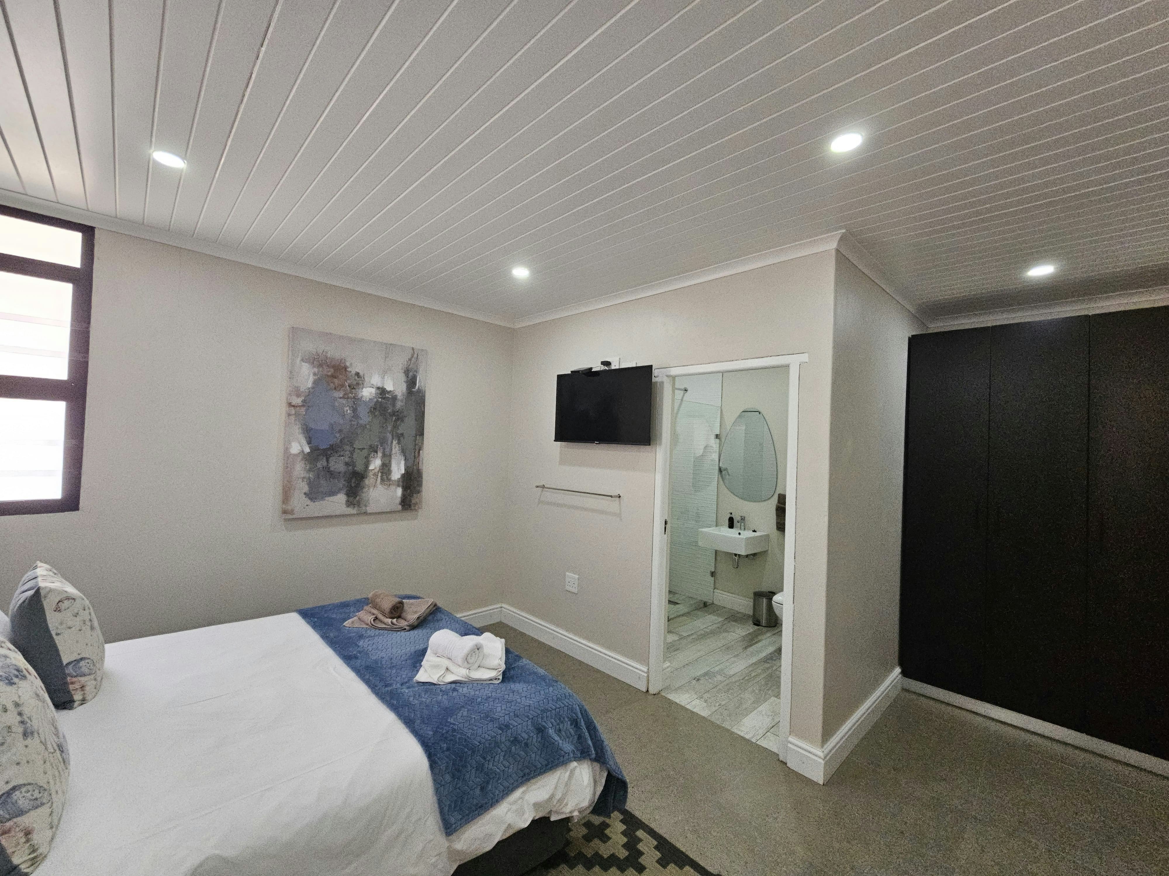 Apartment 5A comprises 1 bedroom and can accommodate 3 guests. The main bedroom features a double bed, with a single bed in the lounge area. The en-suite bathroom comes fitted with a shower, basin and toilet. Other facilities include air-conditioning, a kitchen equipped with a fridge, microwave, stove and oven, tea- and coffee-making facilities and a TV with exclusive DStv channels.