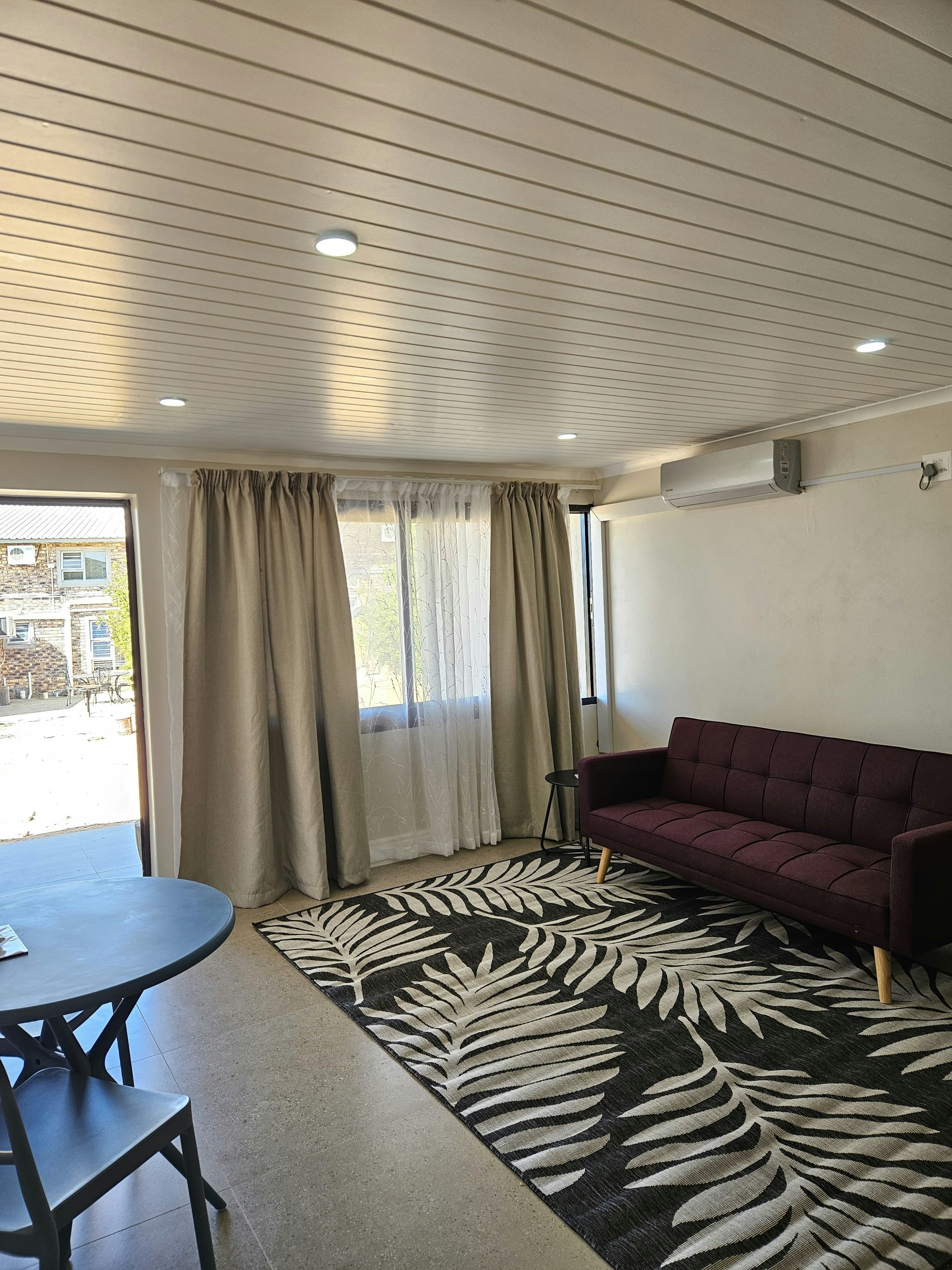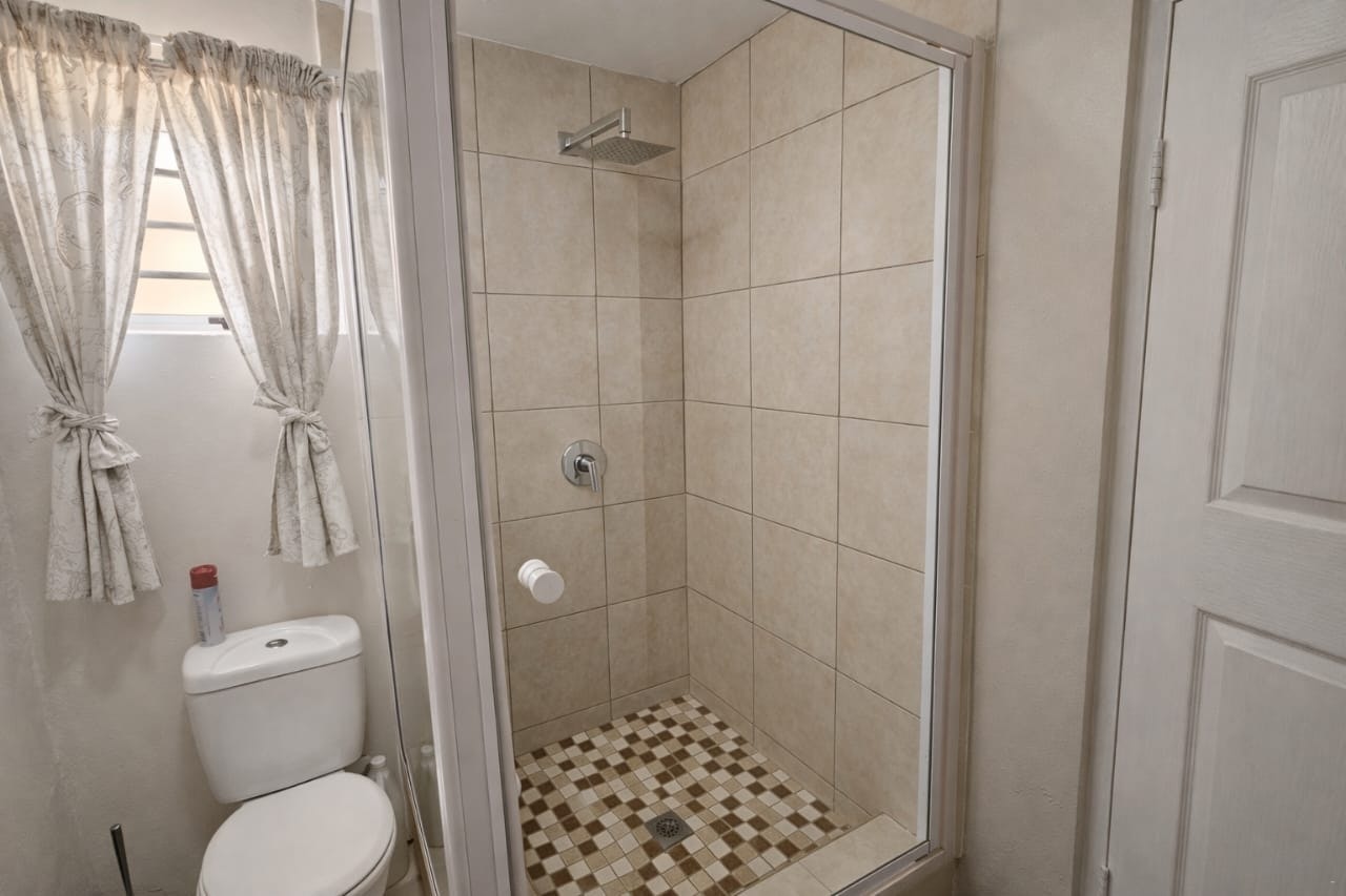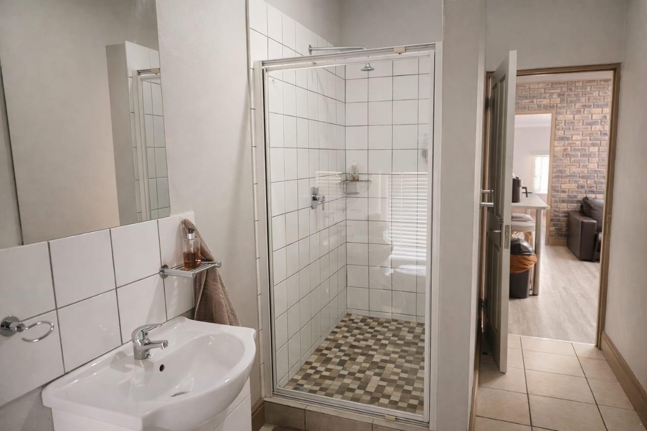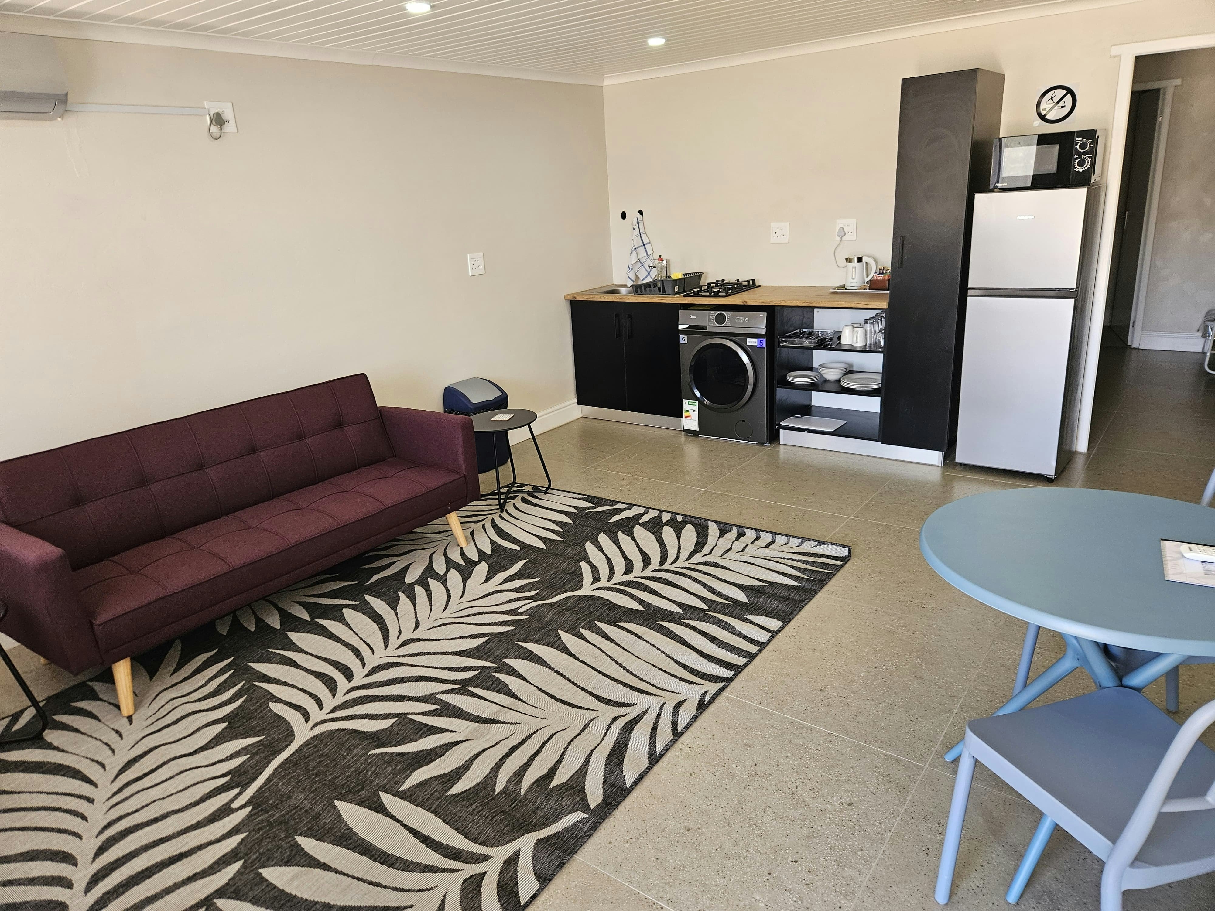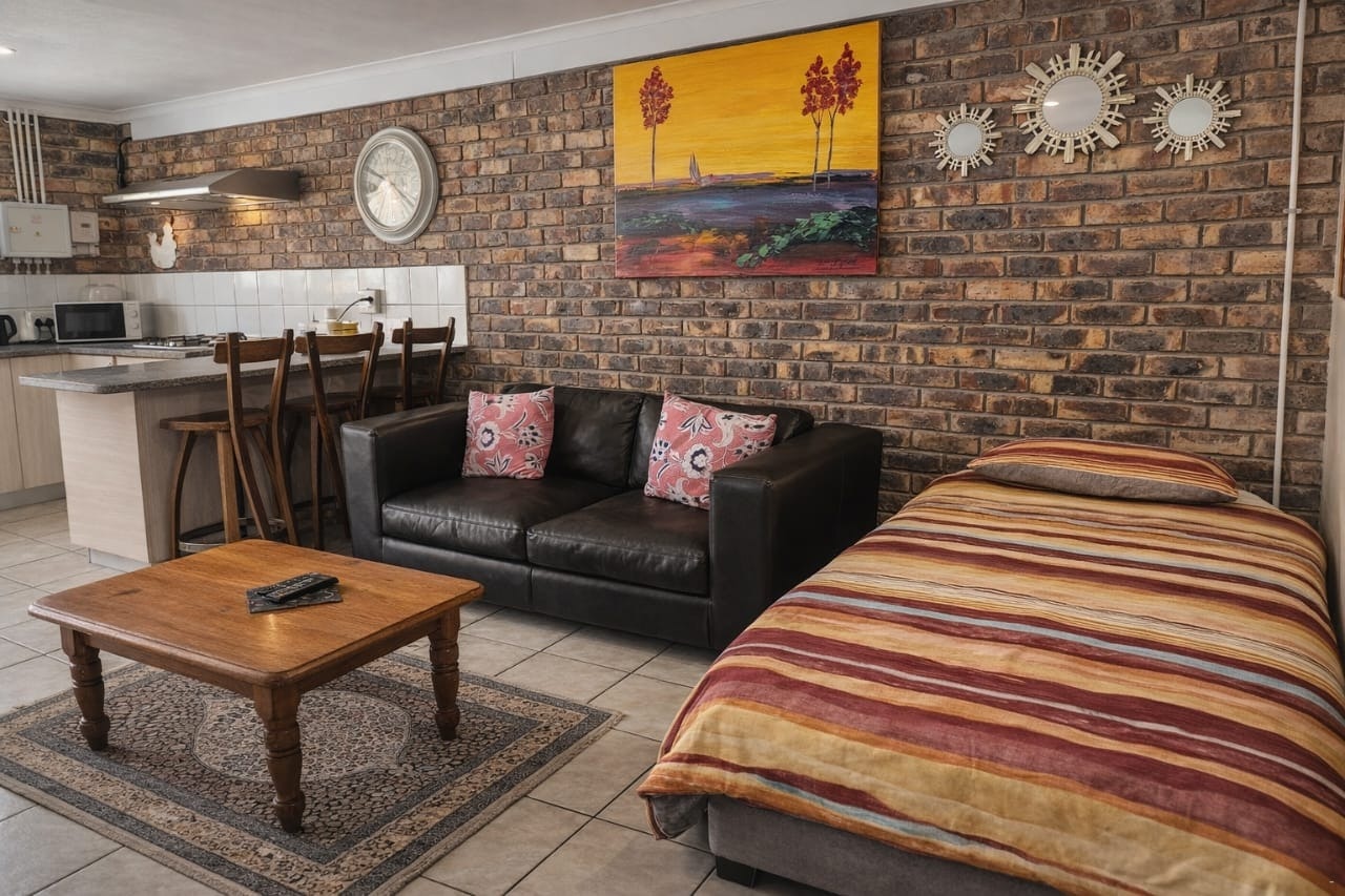 Apartment 5A comprises 1 bedroom and can accommodate 3 guests. The main bedroom features a double bed, with a single bed in the lounge area. The en-suite bathroom comes fitted with a shower, basin and toilet. Other facilities include air-conditioning, a kitchen equipped with a fridge, microwave, stove and oven, tea- and coffee-making facilities and a TV with exclusive DStv channels.