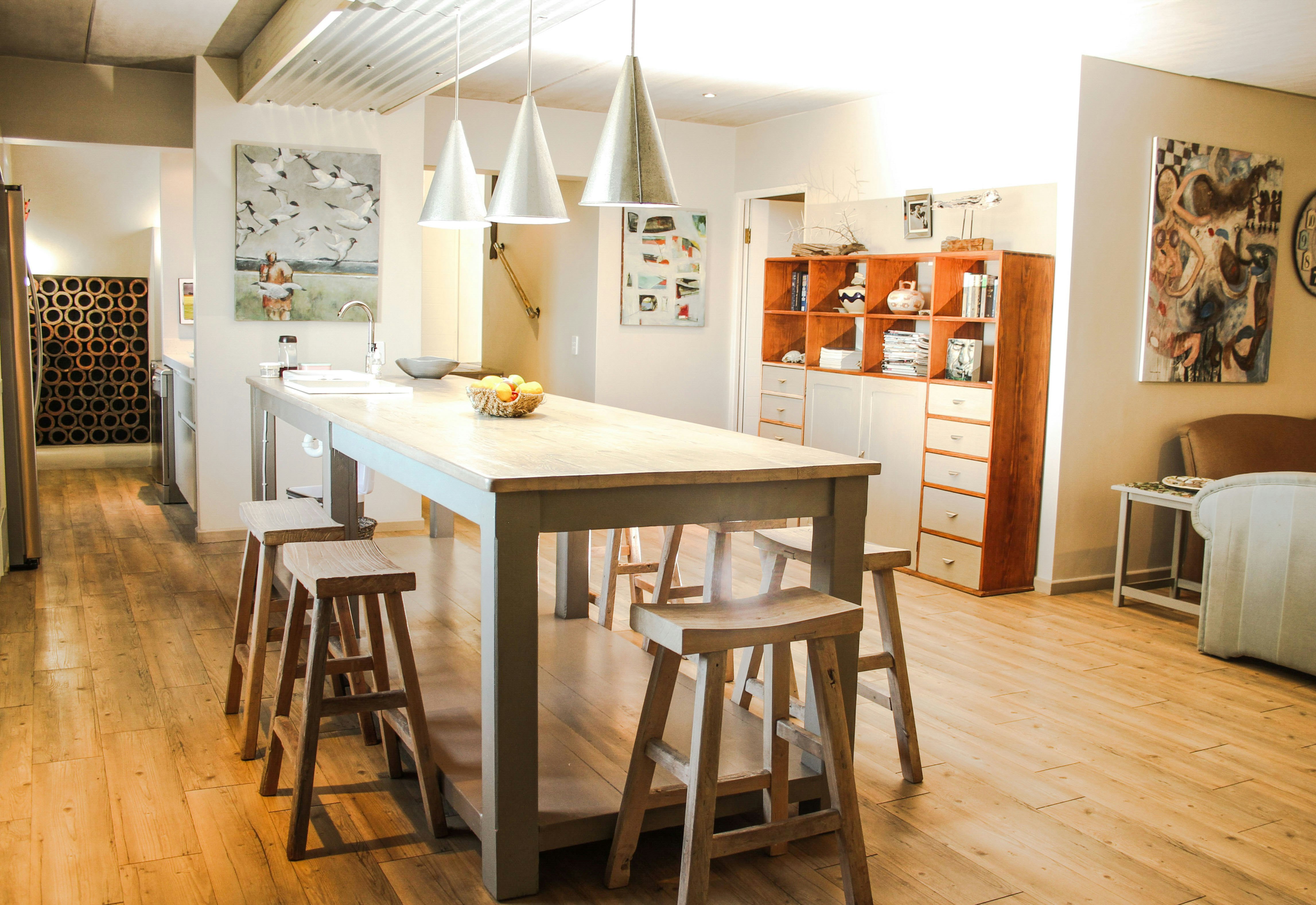 West Coast Beach Villa beskik oor 'n oopplan-ontwerp met 'n kombuis, eetarea en sitkamer. Die kombuis is volledig toegerus vir selfsorg en bied 'n sentrale eiland, gasstoof, elektriese oond, lugbraaier, yskas-vrieskas, eetgerei en breekware. Die eetarea sluit 'n tafel met sitplek vir ses in, geplaas voor 'n binnenshuise braai. Die eetkamer lei na 'n ruim sitkamer met gemaklike rusbanke en 'n TV met 'n DVD-speler. Gratis WiFi is beskikbaar. West Coast Beach Villa is toegerus met 'n volledige omsetterstelsel, wat verseker dat beurtkrag en kragonderbrekings nie gaste se verblyf beïnvloed nie.