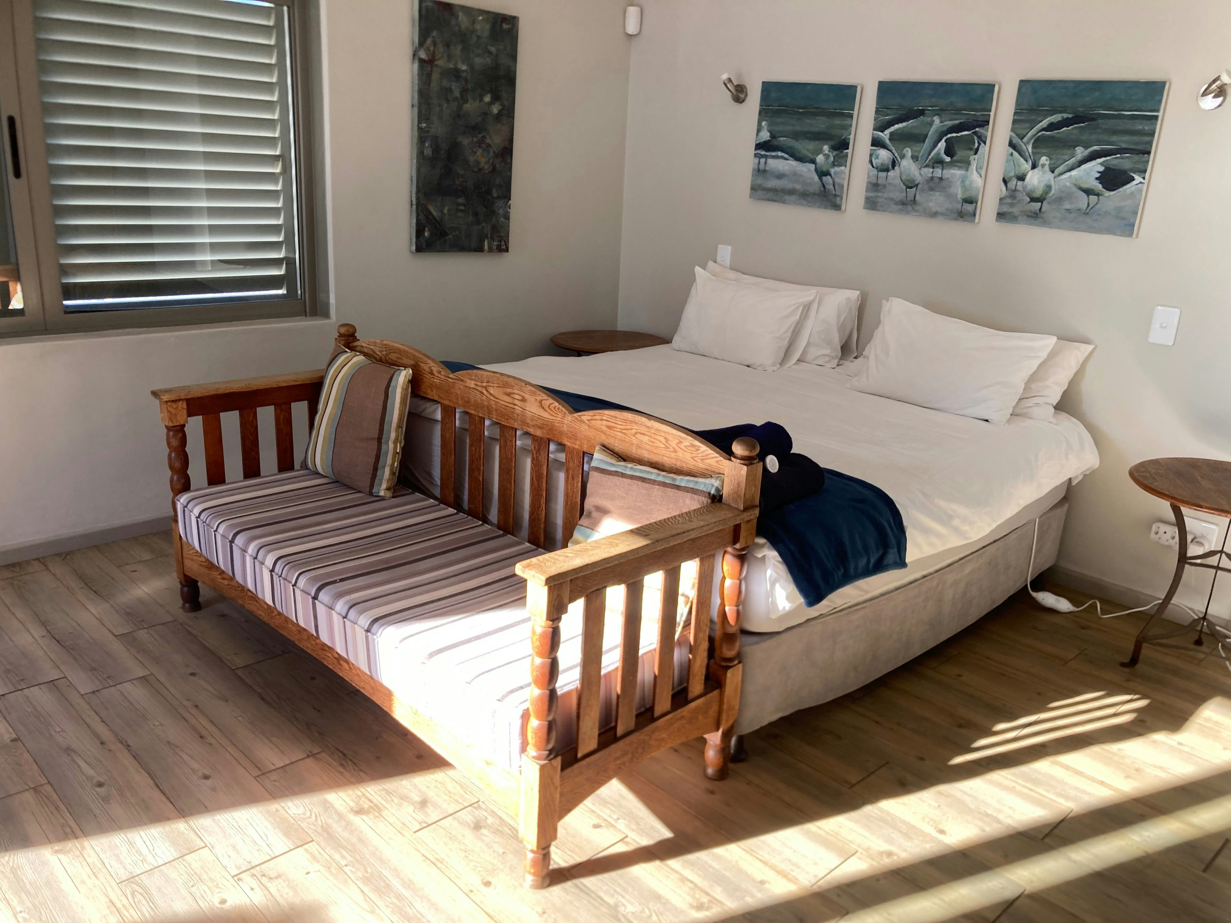 Hierdie rustige strandhuis beskik oor 3 slaapkamers en bied slaapplek vir tot 6 gaste. Die hoofslaapkamer is gemeubileer met 'n koninggrootte bed en het 'n en suite-badkamer met 'n oopplan-vrystaande bad, dubbelwasbak, ingeslote stort en toilet. Die tweede slaapkamer het 'n koningingrootte bed en 'n en suite-badkamer met 'n stort. Beide hierdie slaapkamers is bo. Die derde slaapkamer is op die grondvloer geleë en is gemeubileer met 'n dubbelbed. Gaste kan die derde badkamer gebruik, wat 'n stort het. Daar is vier trappe wat na die badkamer lei.