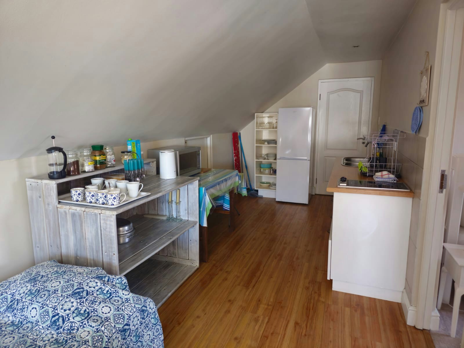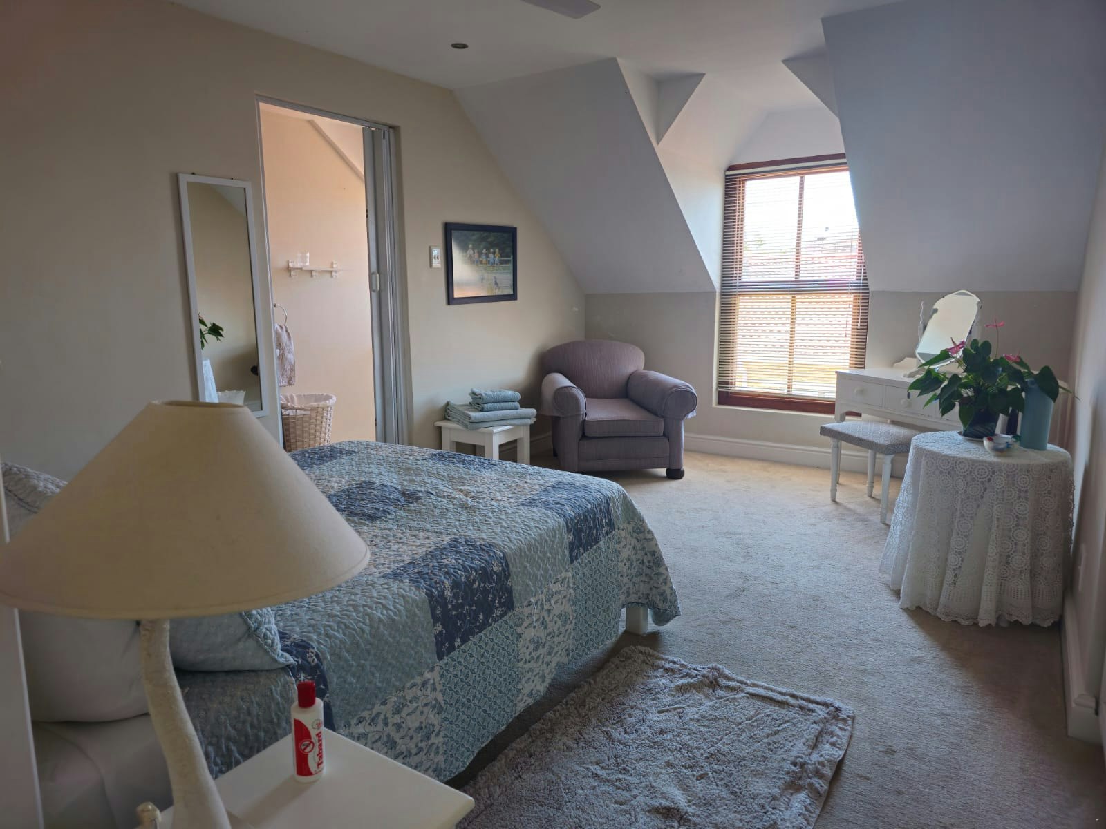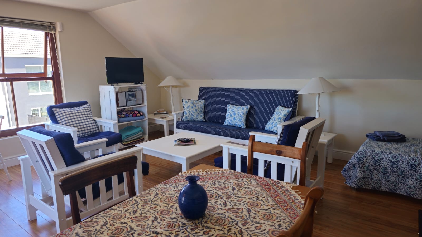 Die woonstel is op die eerste verdieping en het slaapplek vir 2 volwassenes en 1 kind. Die kamer het 'n dubbelbed, dakwaaier en 'n en suite-badkamer met 'n stort, wasbak en toilet. Daar is 'n oopplan-leefarea waar nog 'n enkelbed staan.