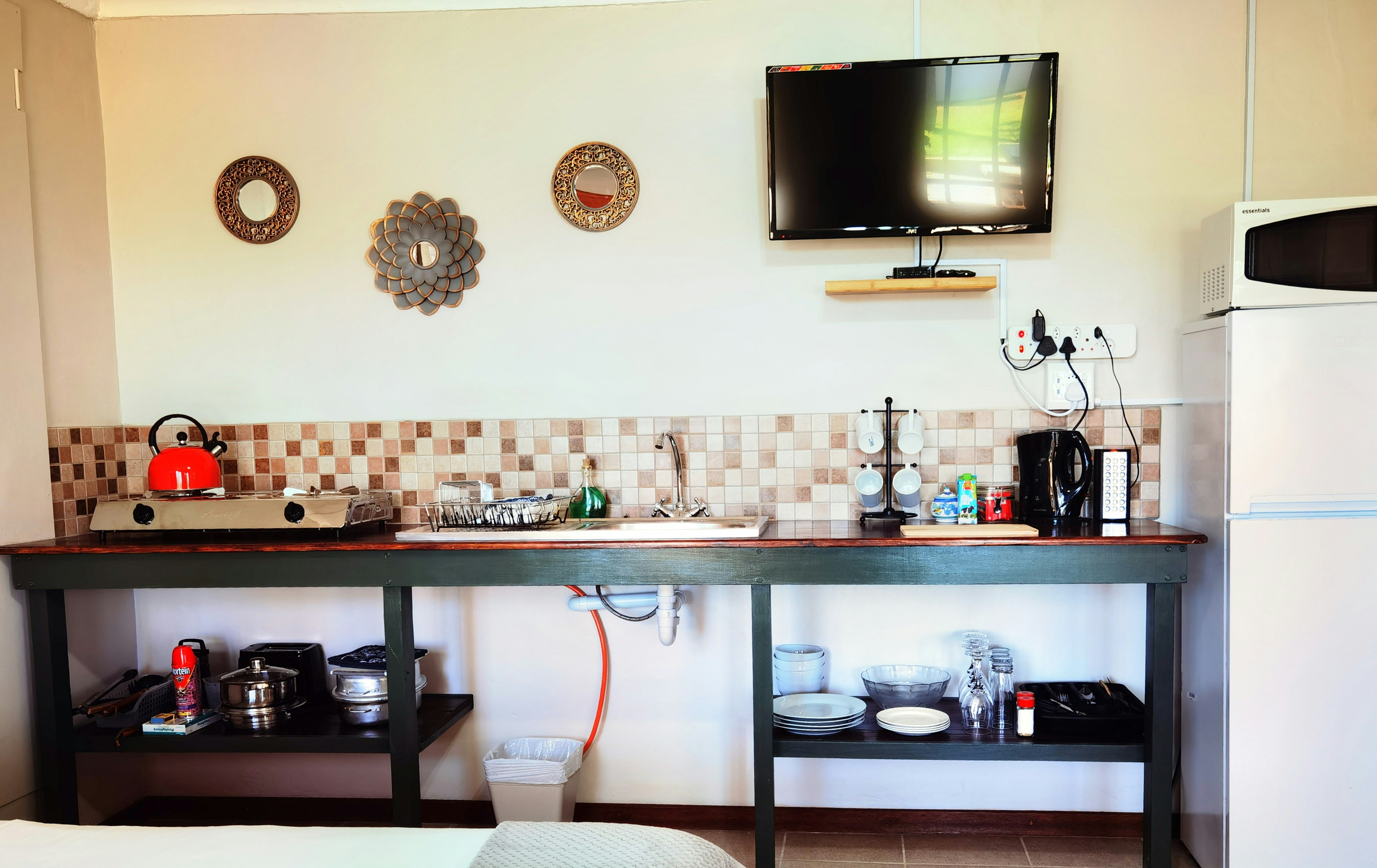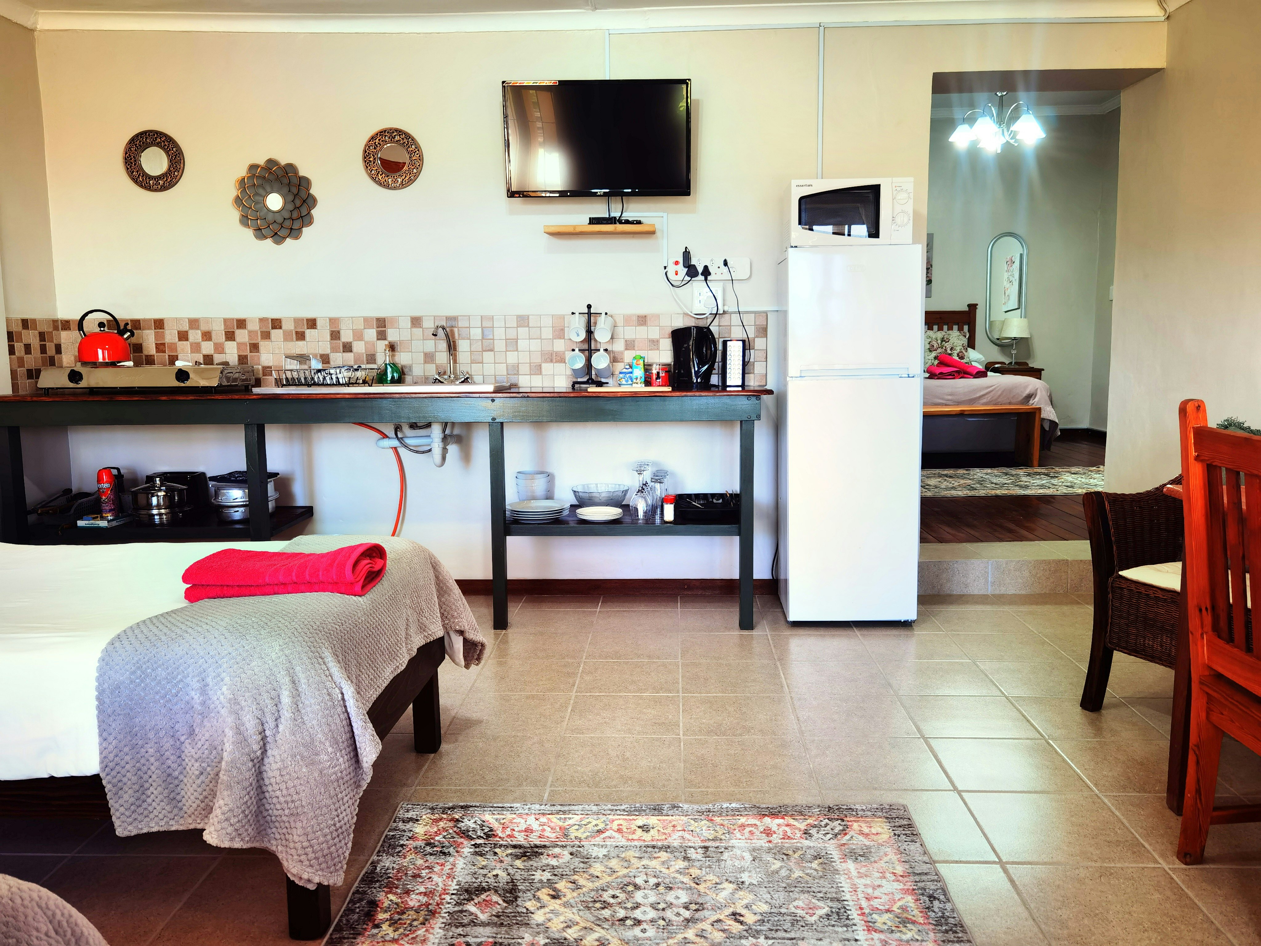 Each unit has a TV, microwave, tea and coffee-making facilities, a bar fridge and air conditioning. Units 1 to 3 each have a private entrance leading to a verandah with direct access to the communal outdoor kitchen and braai area. Only units 1 and 2 have well-equipped kitchenettes. Unit 3 doesn't have a kitchen, but guests can use the outdoor kitchen and braai area.