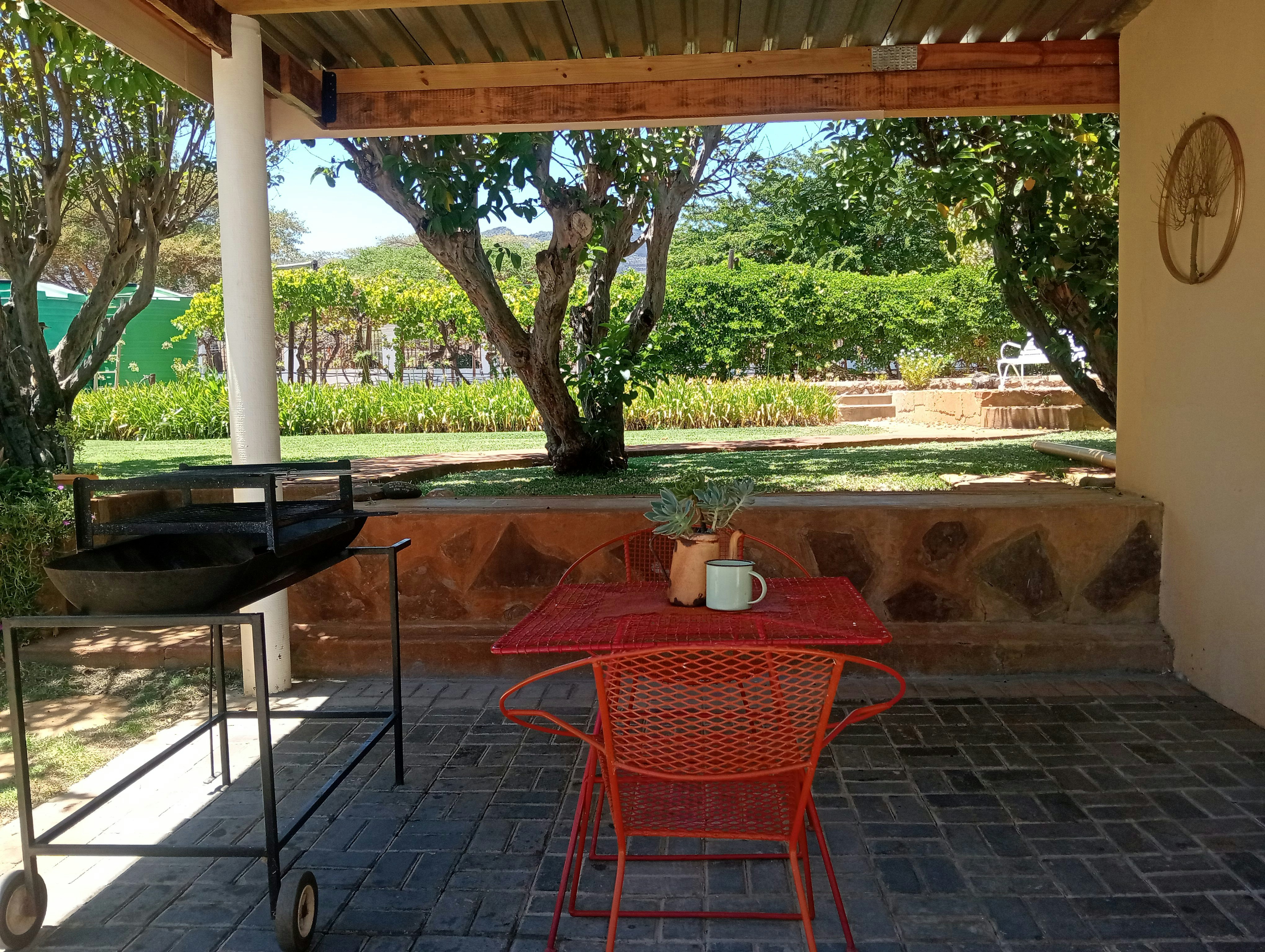 Unit 4 is a detached unit with a well-equipped kitchenette, detached braai facilities and a garden set in front of the unit with a beautiful view of the garden.