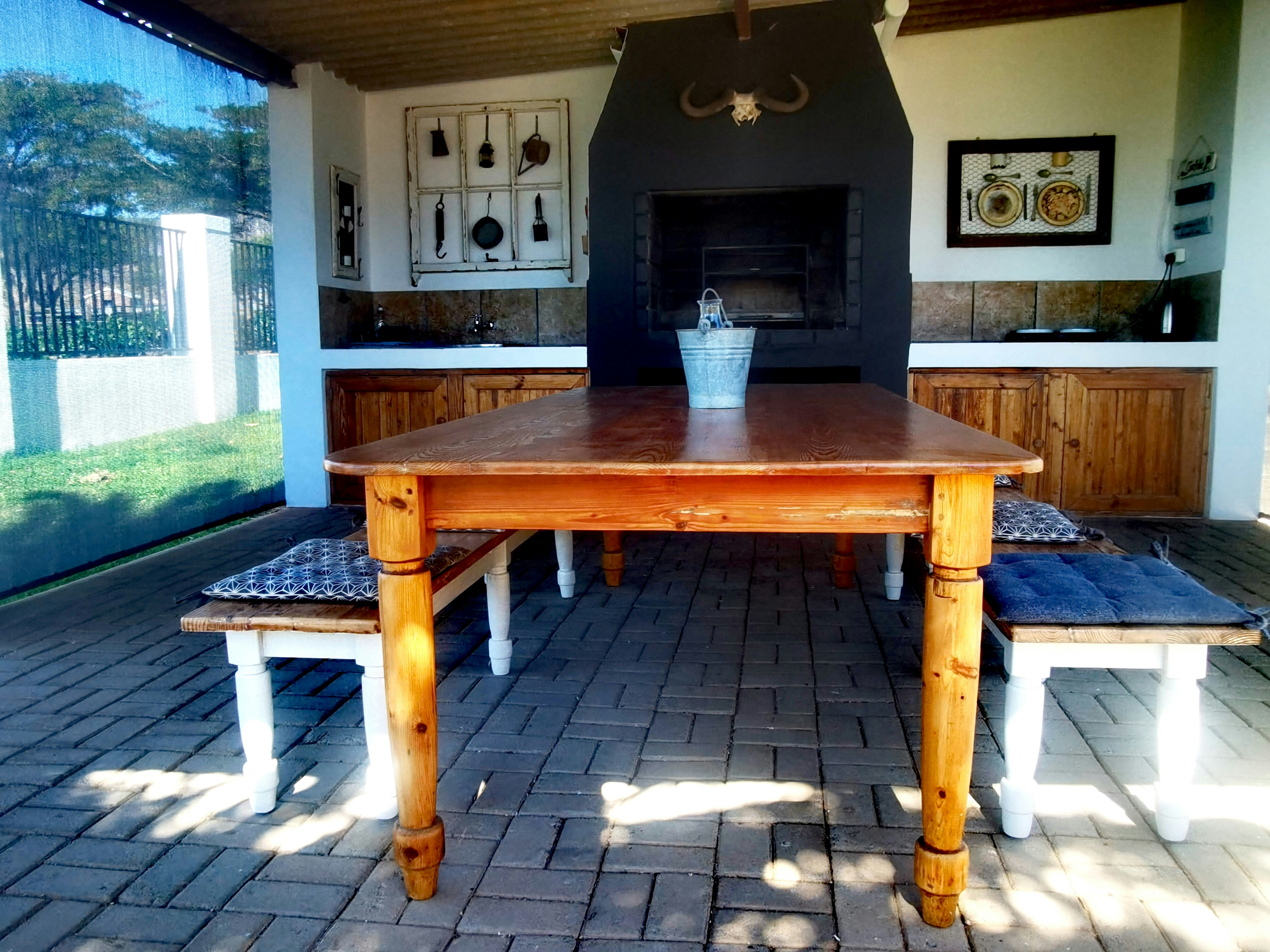There is a large braai area with a table for 8 guests, freestanding braai and firewood for sale on the premises. Pets are not allowed.