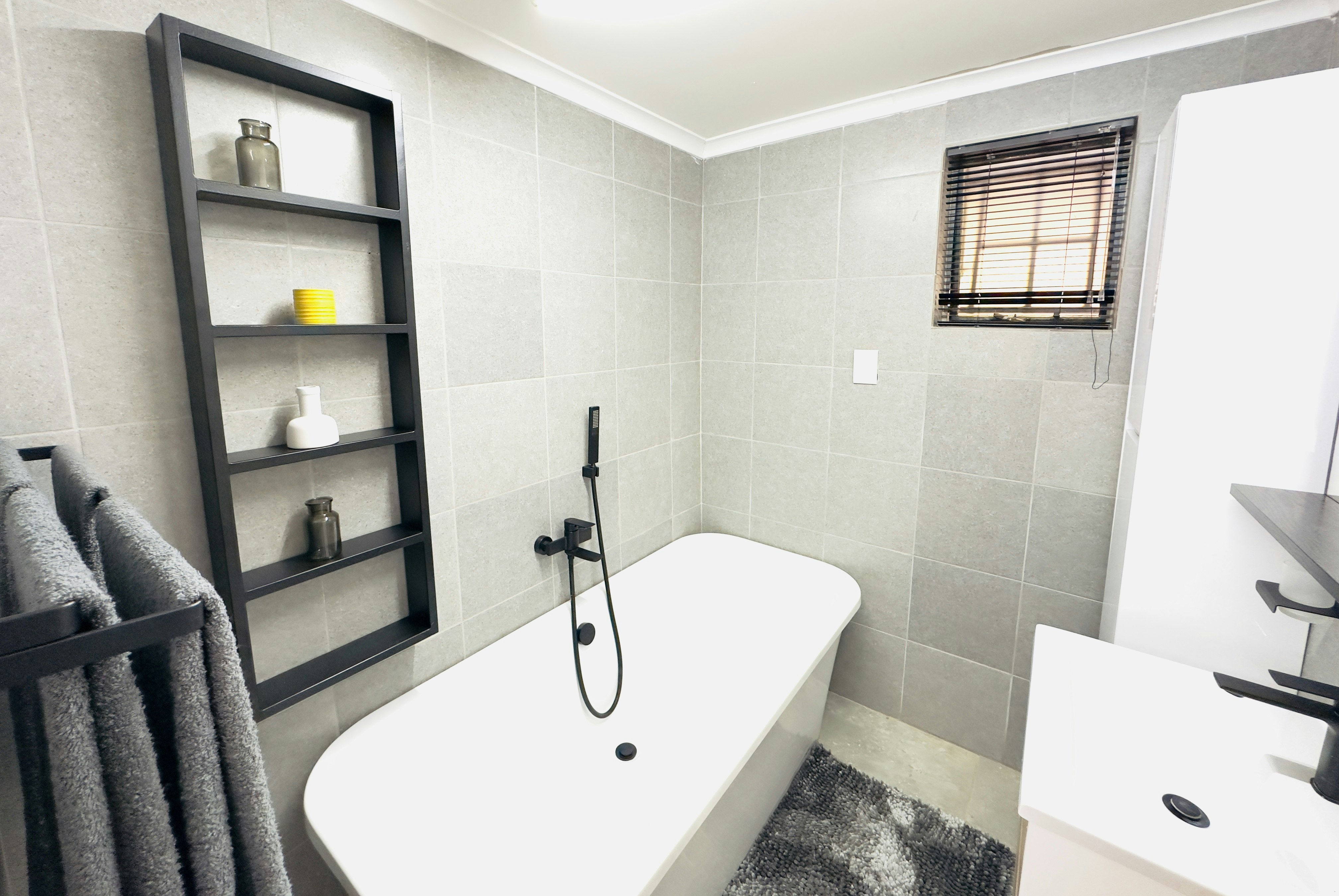 Outside, the property boasts a beautiful backyard with a Weber braai for guests to enjoy while taking in the tranquil surroundings.