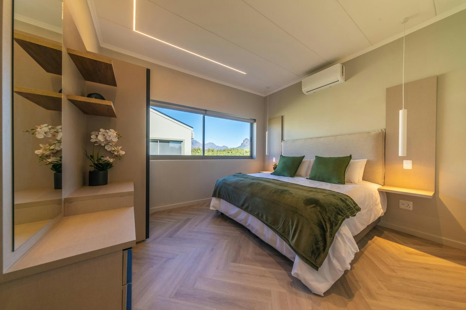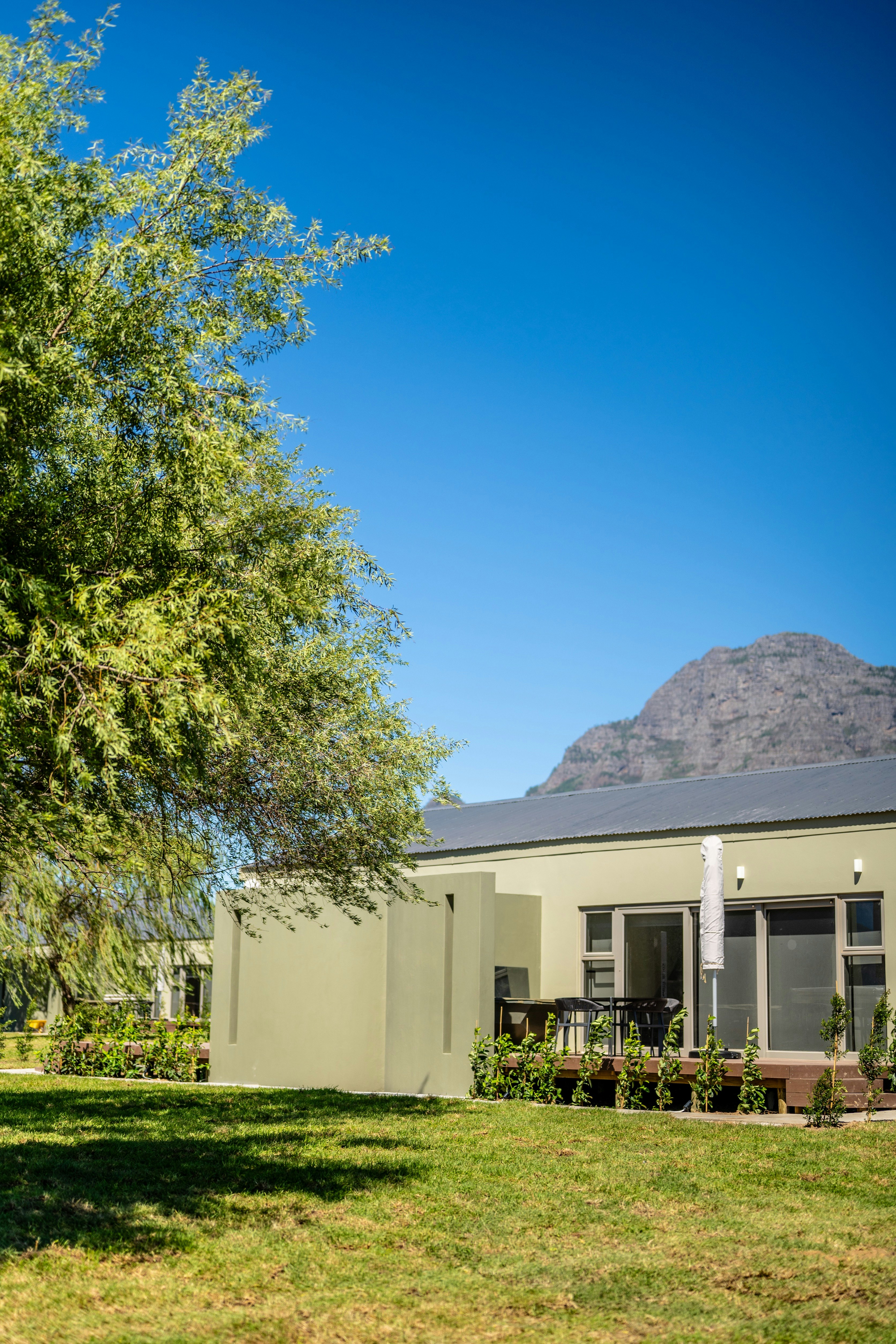 LEO Sky Cottage 4 is a beautifully appointed open-plan cottage situated in the Cape Winelands, between the scenic towns of Paarl, Franschhoek, and Stellenbosch. This elegant retreat offers guests a peaceful farm stay experience, ideal for a relaxing getaway in the countryside.