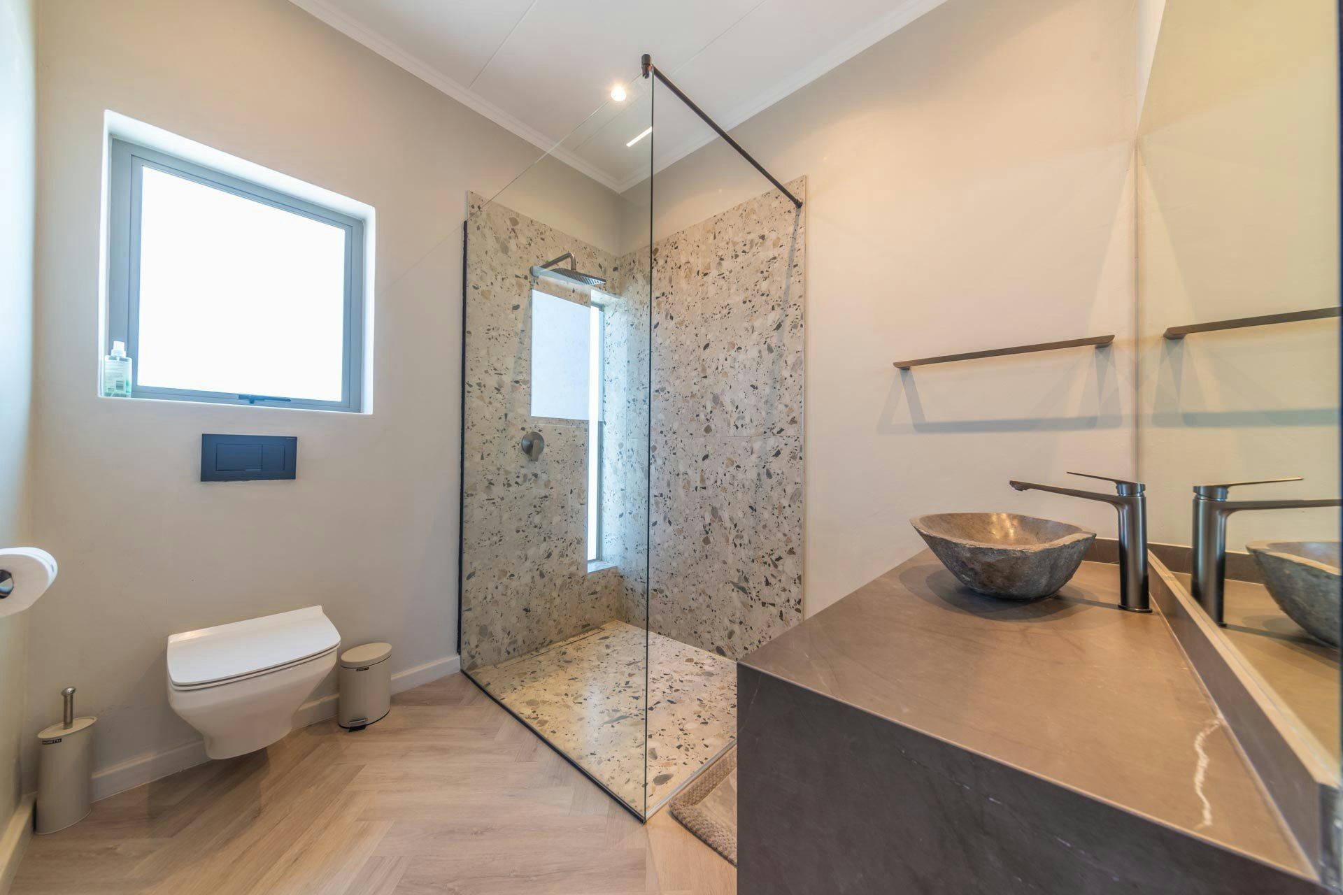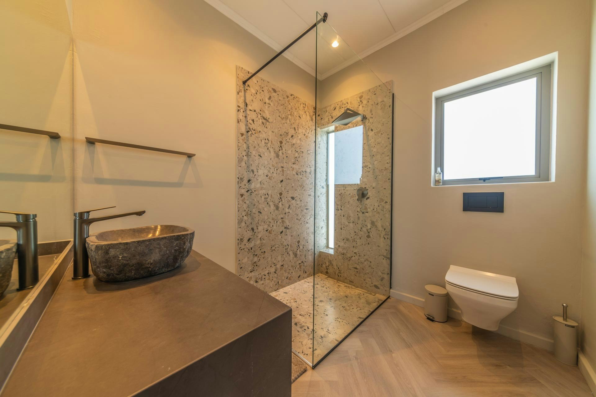 This beautifully appointed 2-bedroom cottage accommodates up to 4 guests. Each bedroom is tastefully furnished with a king-size bed and has en-suite bathrooms fitted with a shower, basin, and toilet. Crisp linen and towels are provided for guests' comfort.