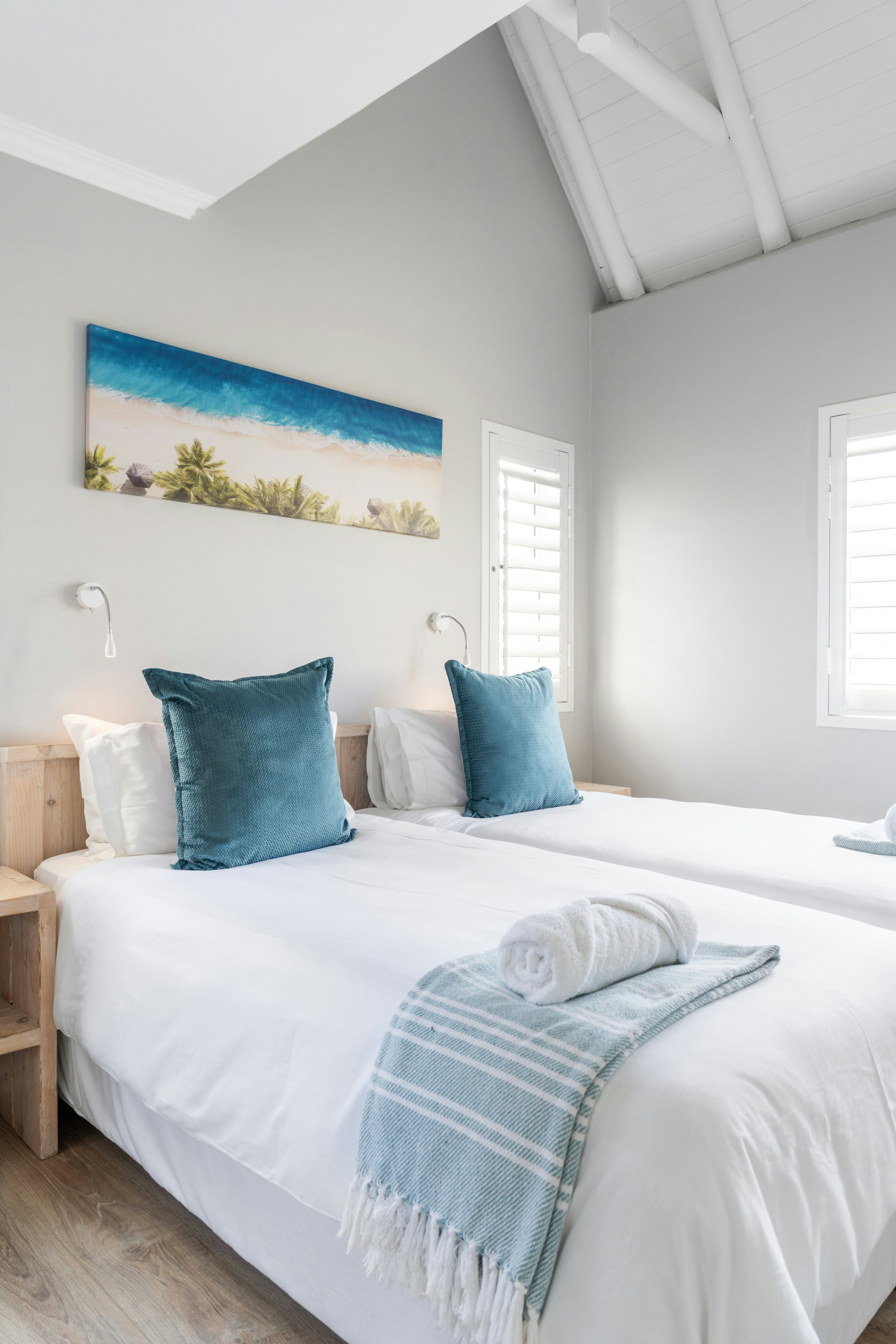 This lovely villa can accommodate 8 guests and comprises 4 bedrooms and 4 bathrooms. The main bedroom is furnished with a queen-size bed and features an en-suite bathroom fitted with a bath, shower, toilet and washbasin. The second bedroom is furnished with a queen-size bed, the third bedroom is furnished with 2 single beds and the fourth bedroom is furnished with a queen-size bed. The bedrooms feature an en-suite bathroom fitted with a shower, toilet and washbasin. Quality linen and bath towels are provided; as well as swimming towels.