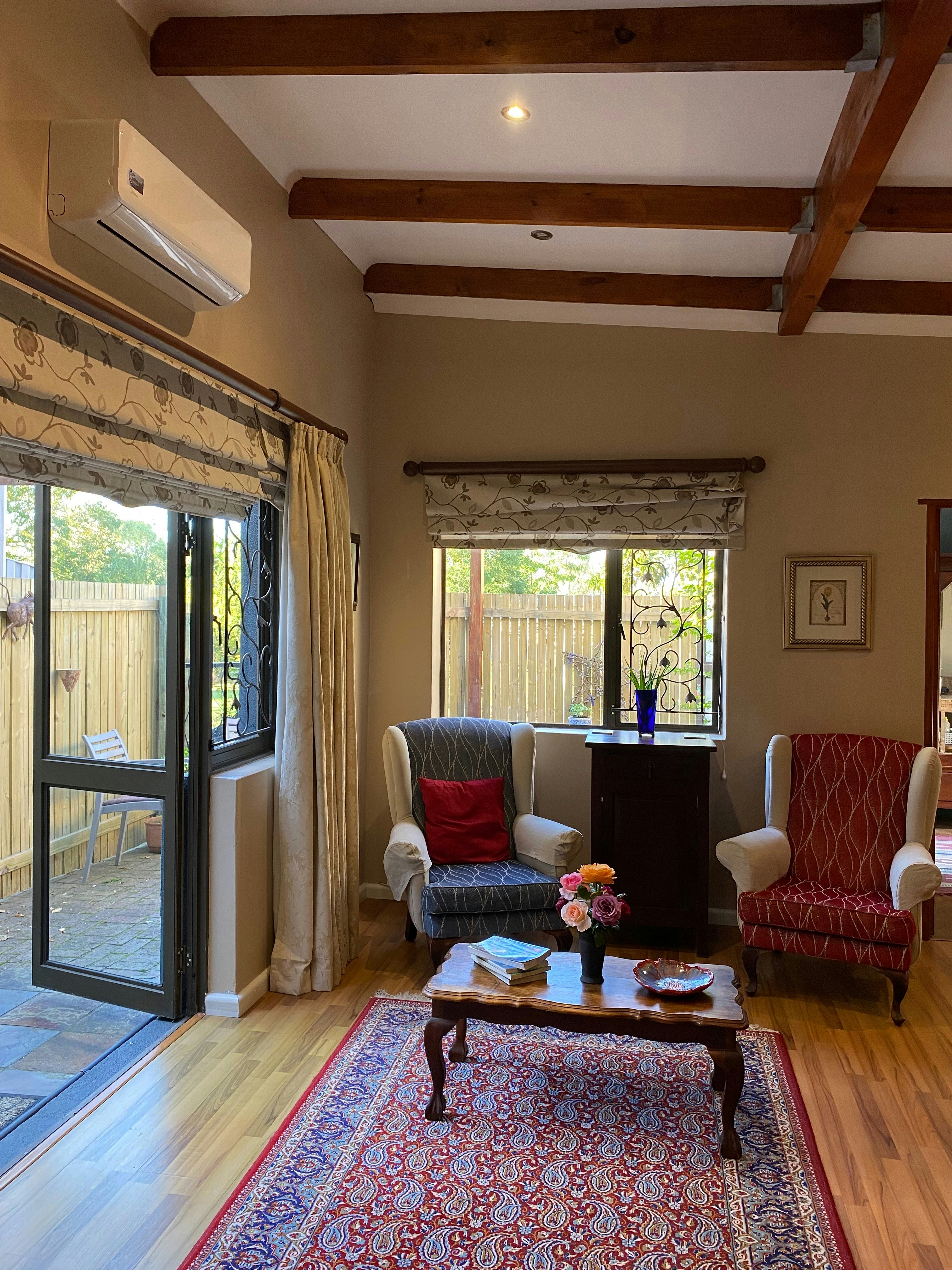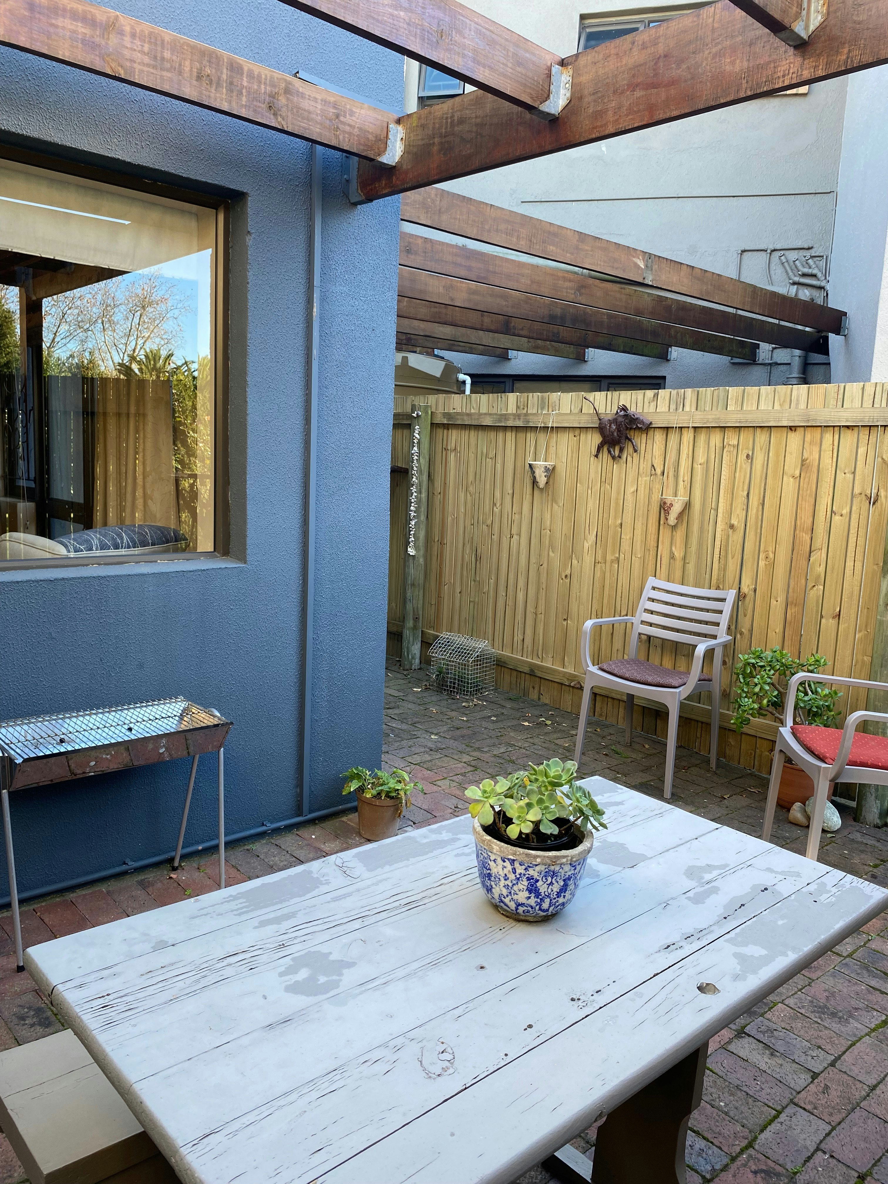Outside is a private patio with a picnic table and a portable braai which is a great spot for guests to unwind. Guests are afforded secure parking on the property. The location of this property is close to the Botanical Gardens and all hospitals.