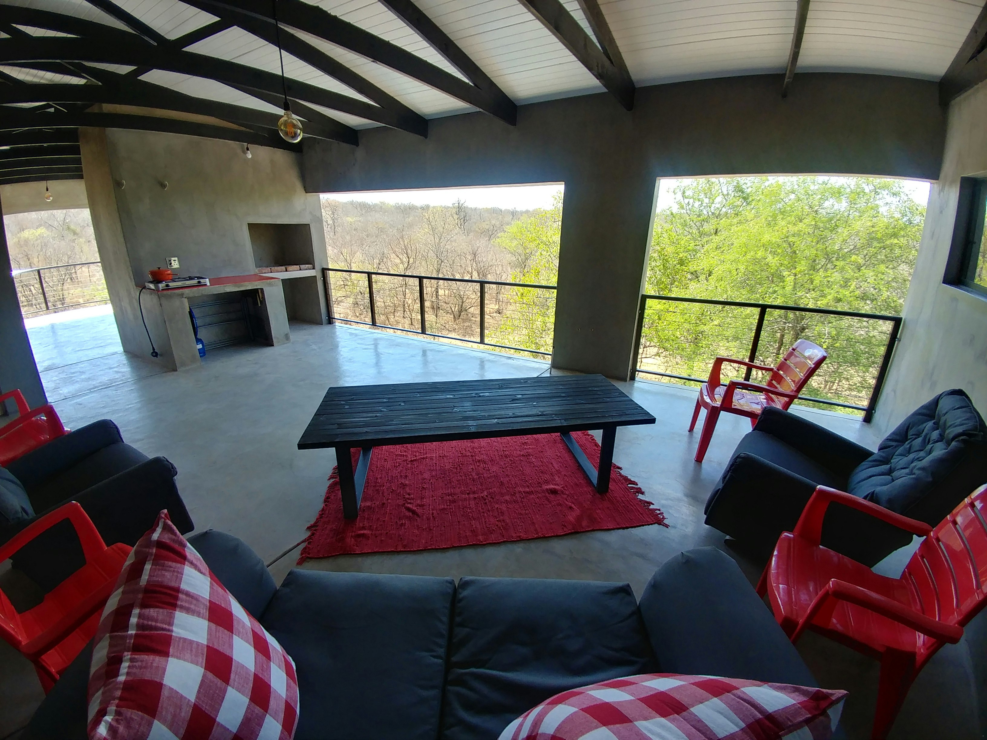 Guests can cool down in the swimming pool which offers views of the reserve or they can make use of 2 braai areas located on the premises. The upstairs braai area offers spectacular views.