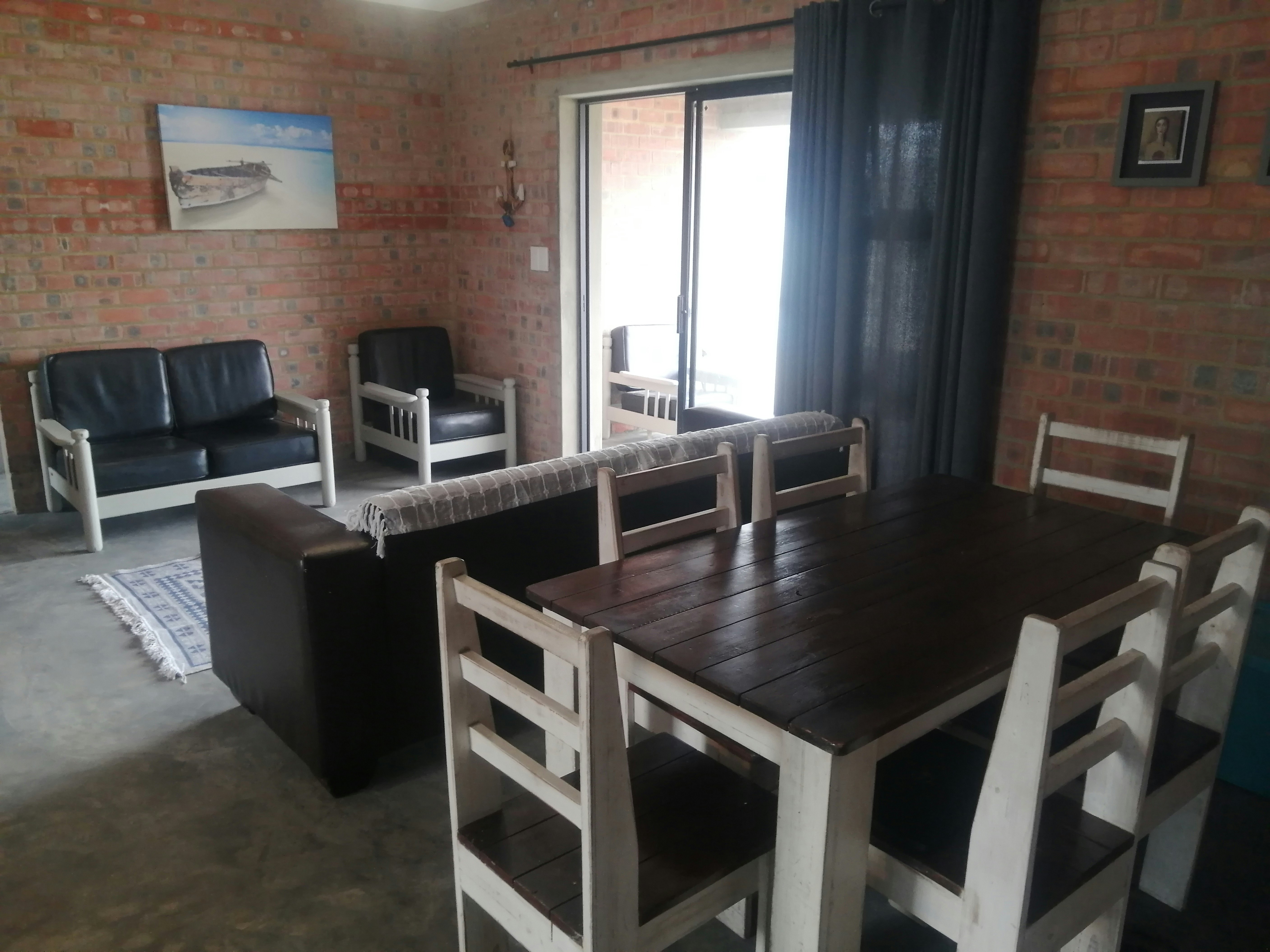 The kitchen is fully equipped for self-catering and contains a gas stove, oven, fridge-freezer, washing machine, microwave, cutlery, and crockery. The open-plan living area features a dining table and comfortable seating. There is a patio with a seating area and a braai where guests can sit back, relax, and spend quality time together.