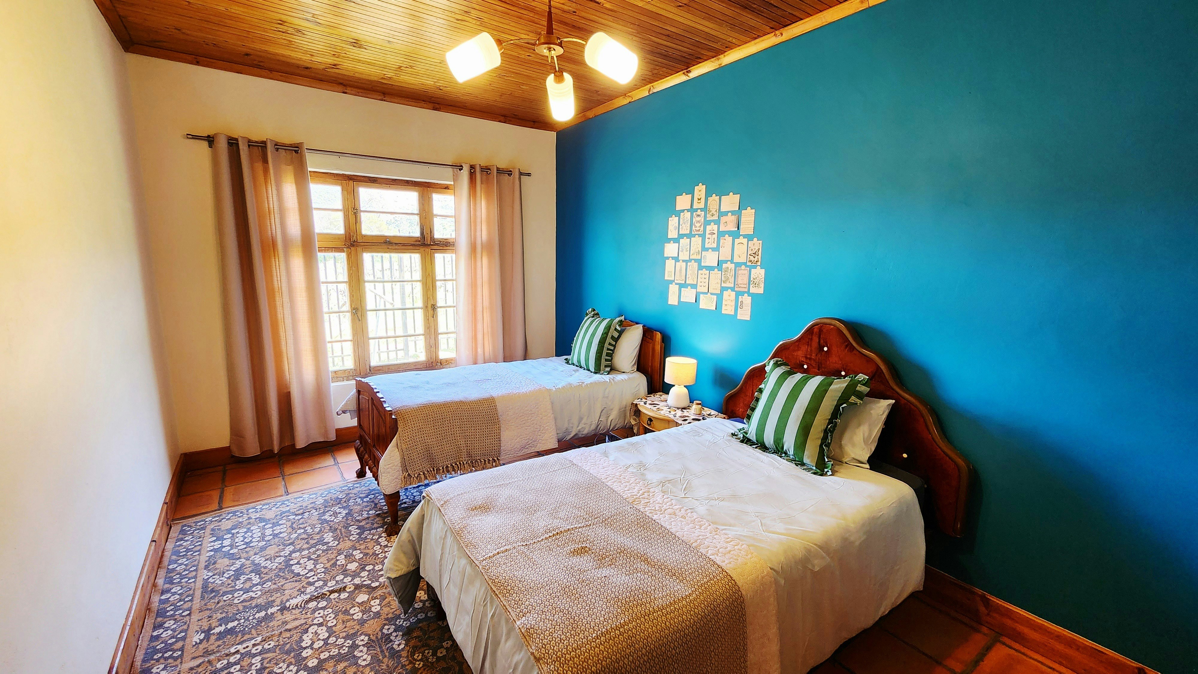 Accommodation is offered in a self-catering cottage and house. The Cottage sleeps 4 guests and comprises 2 bedrooms, 1 bathroom, and a kitchen with a 2-plate stove, fridge-freezer, microwave, and kettle. The lounge features a Smart TV with Netflix. The Family Cottage sleeps up to 5 guests and offers 2 bedrooms, 1 bathroom, and a fully equipped kitchen with a 4-plate stove and oven. The living area has an 8-seater dining table, a Smart TV with Netflix. Each option has a private patio with braai facilities. Complimentary Wi-Fi, secure parking, and a bag of firewood on arrival are included.
