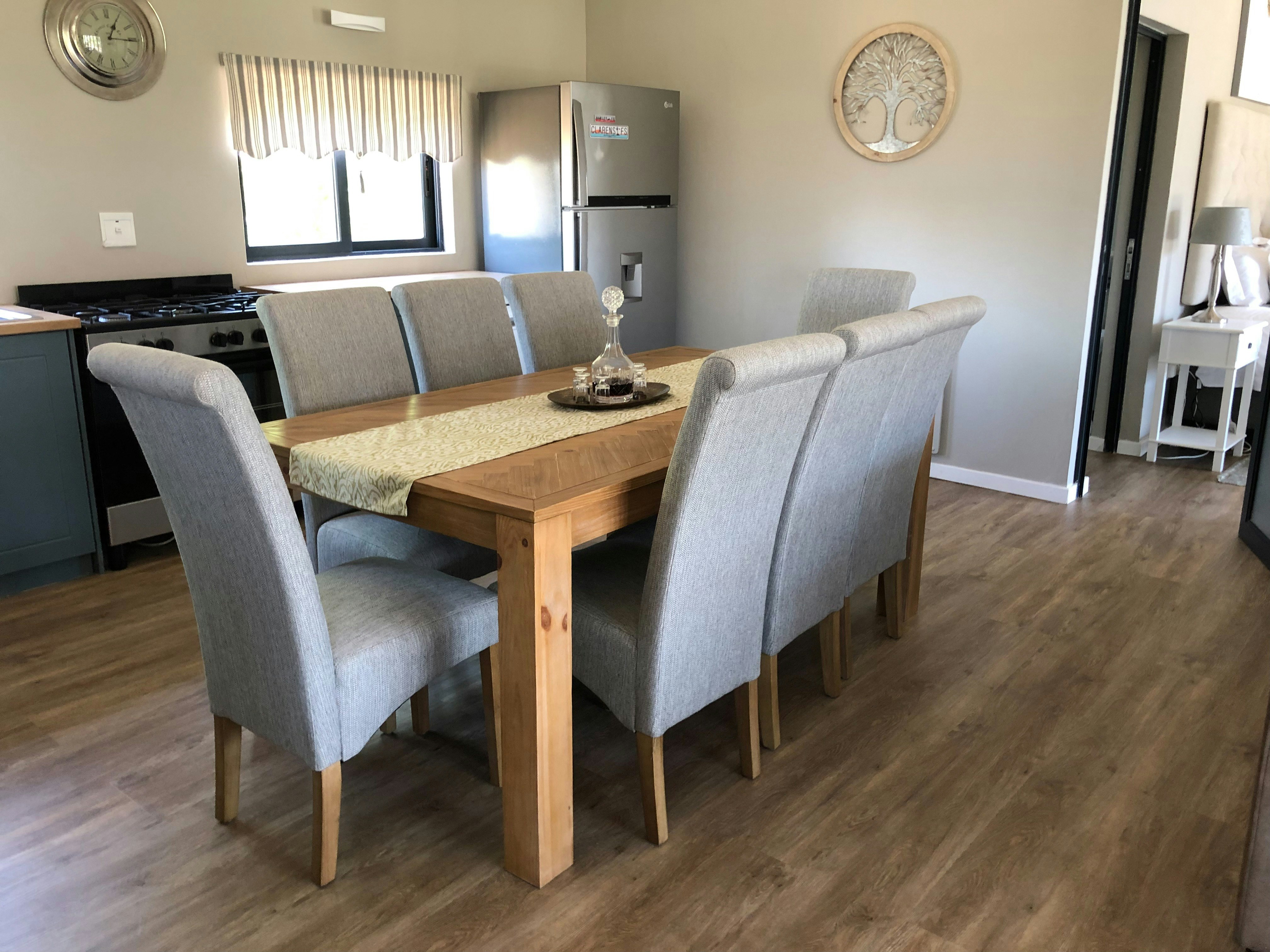 The open-plan kitchen is fully equipped with everything you will need for self-catering. It has a dining area as well as a lounge with a fireplace and patio area that includes barbecue facilities.