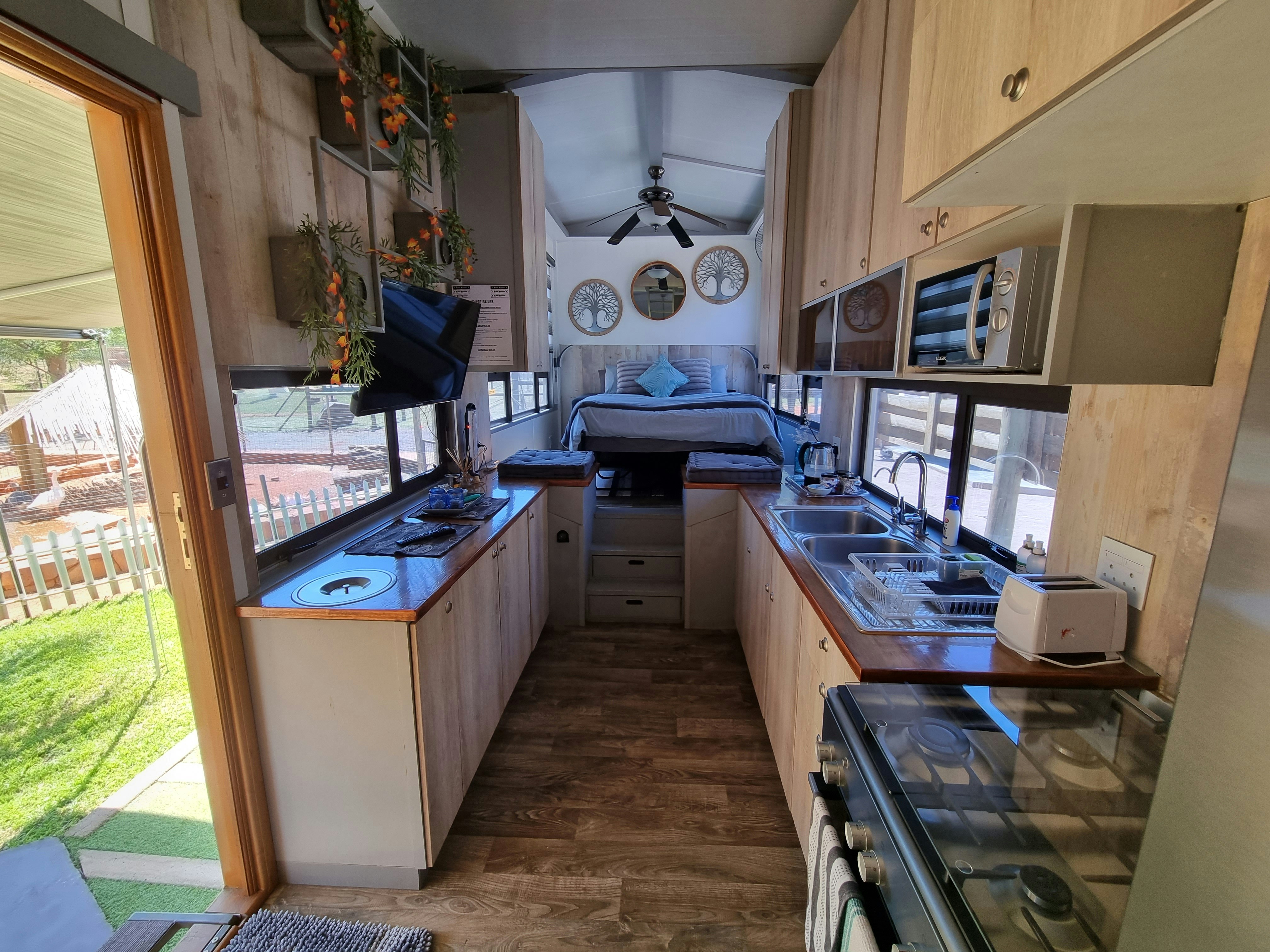 It is a peaceful place and suitable for just sleeping. There were small things that were dirty - freezer had bugs in it and ice trays were dirty inside with no ice. The power was a problem every time the weather picked up the power was off so power was off more than on. We visited the peditor park (their cages need power for safety). And ad talks about king size beds but that was not the case, it was a doddle bed in both rooms. The showers were very small and as a large family it was difficult to use the facilities. The chairs for the porch were very uncomfortable. I think it's better to mention that facilities have a weight limit instead of not mentioning it. TV had no working channels, with or without power.