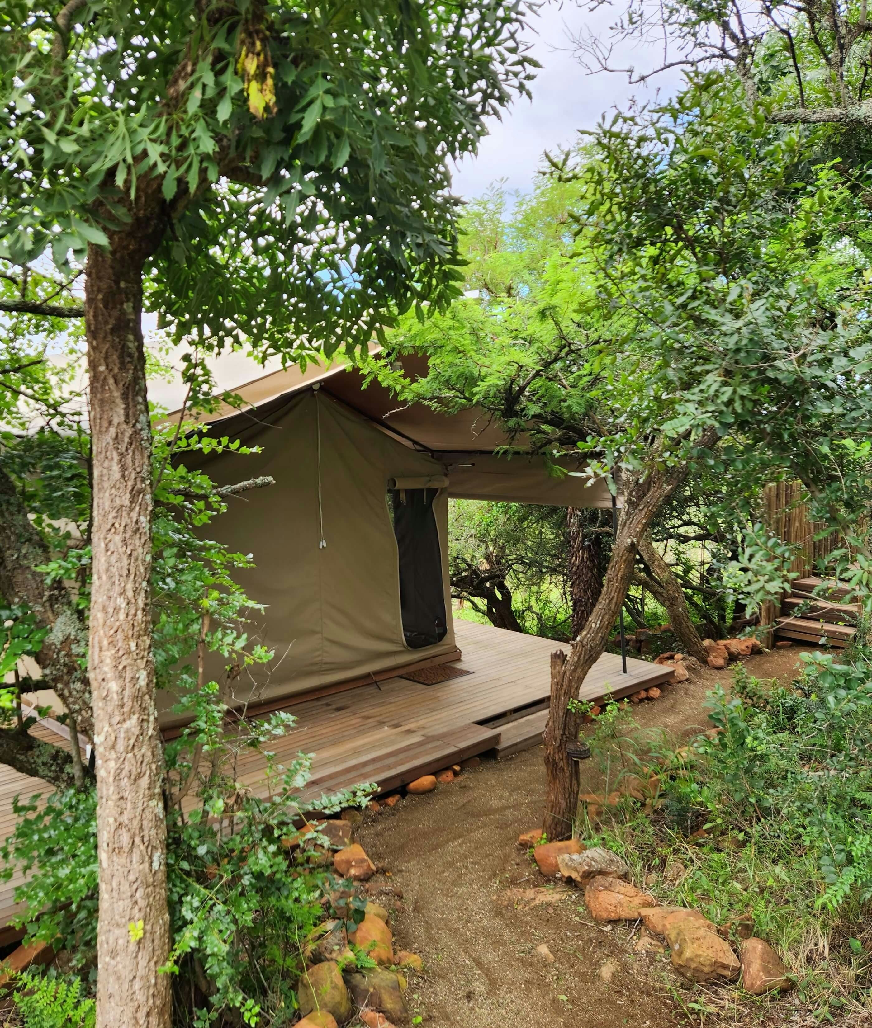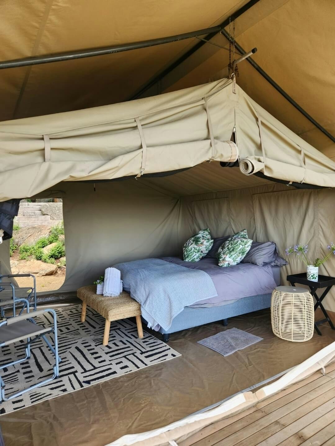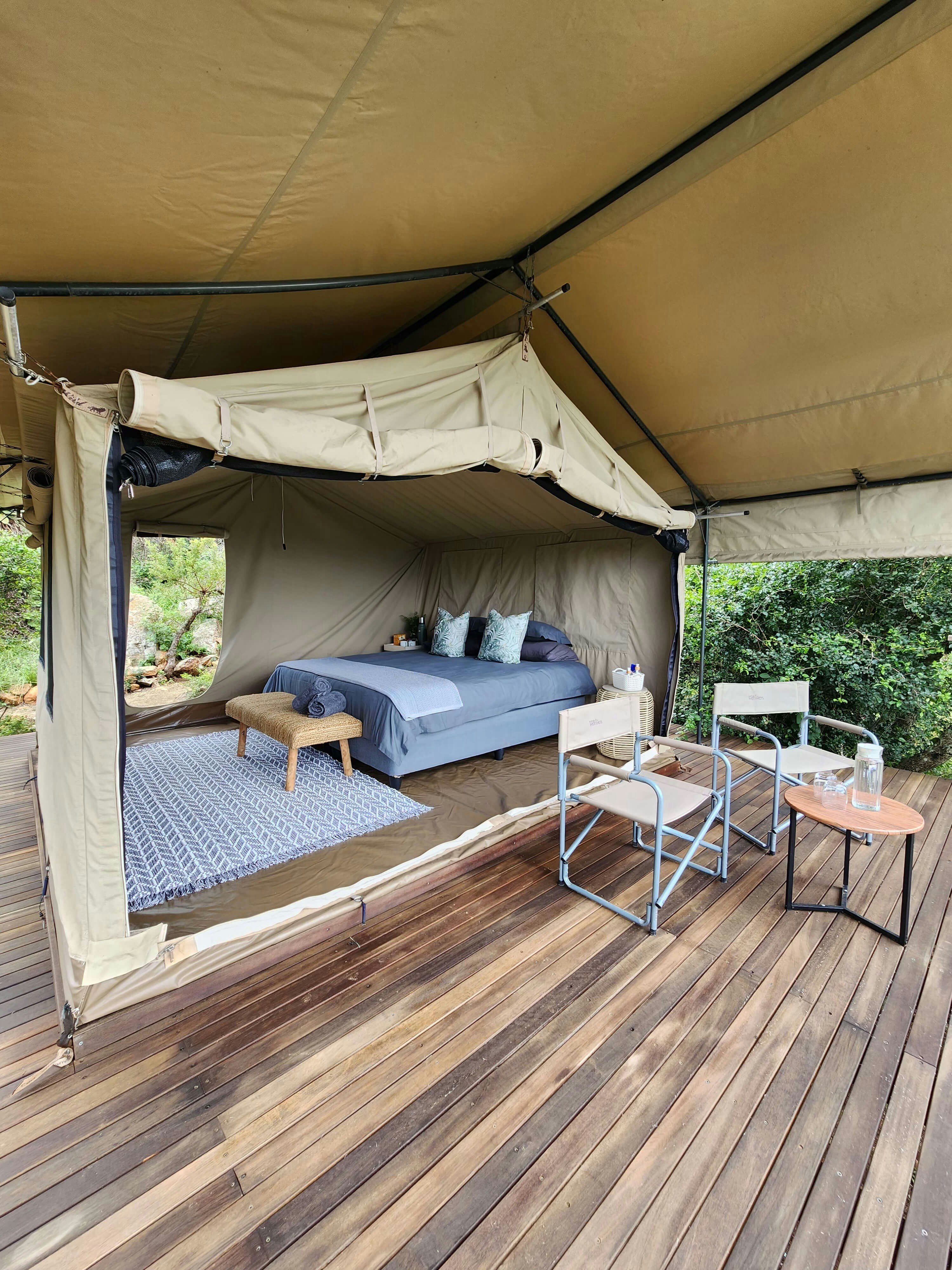 These lovely glamping tents can each comfortably accommodate 2 guests as it is furnished with a queen-size bed. Each tent has its own private ablution facility fitted with an open-air shower. All linen and bath towels are provided.