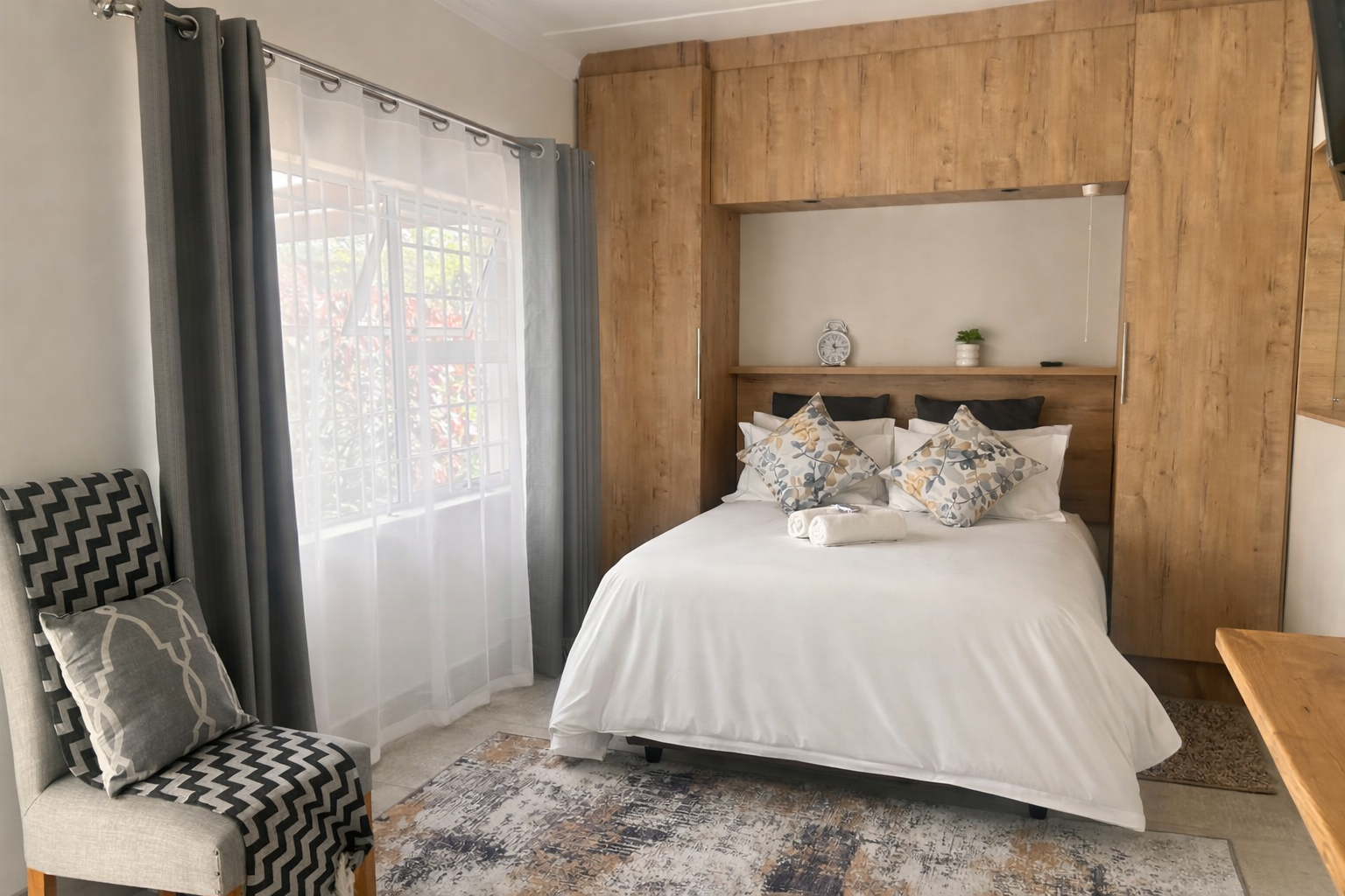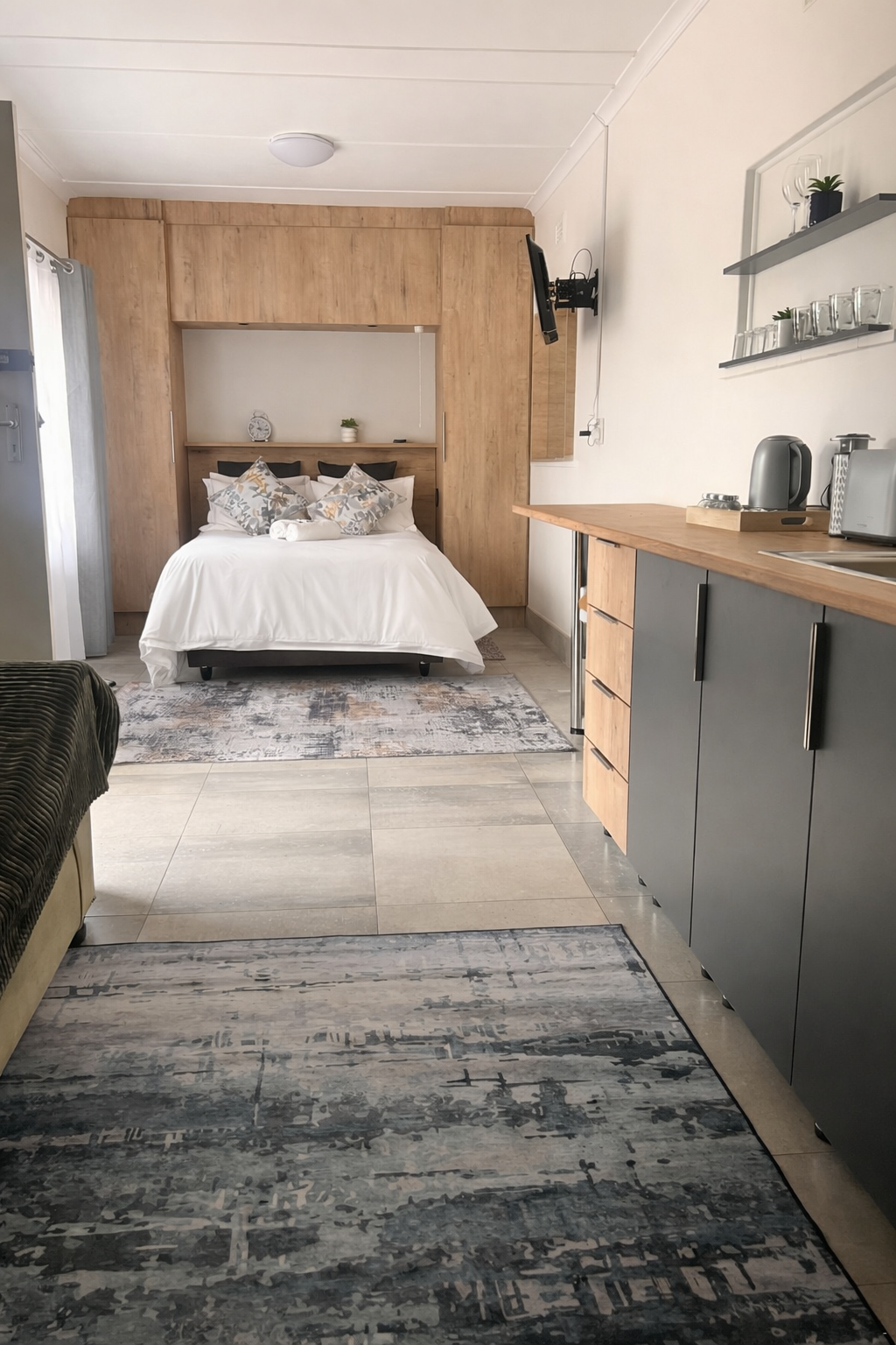 Felt like family. Estelle was so helpful from check-in to check-out. She apologised 100 times for the outage and assisted us with lights and a gas stove to make some tea and other tokens of appreciation. We were exhausted after travel and setting up for the KroesRocks KolloQuium event, so the space and the ambiance provided by Lullaby Air B&B was exactly what we needed. The view in the morning was definitely a highlight. The pictures do not do it any justice. It actually exceeded our expectations.