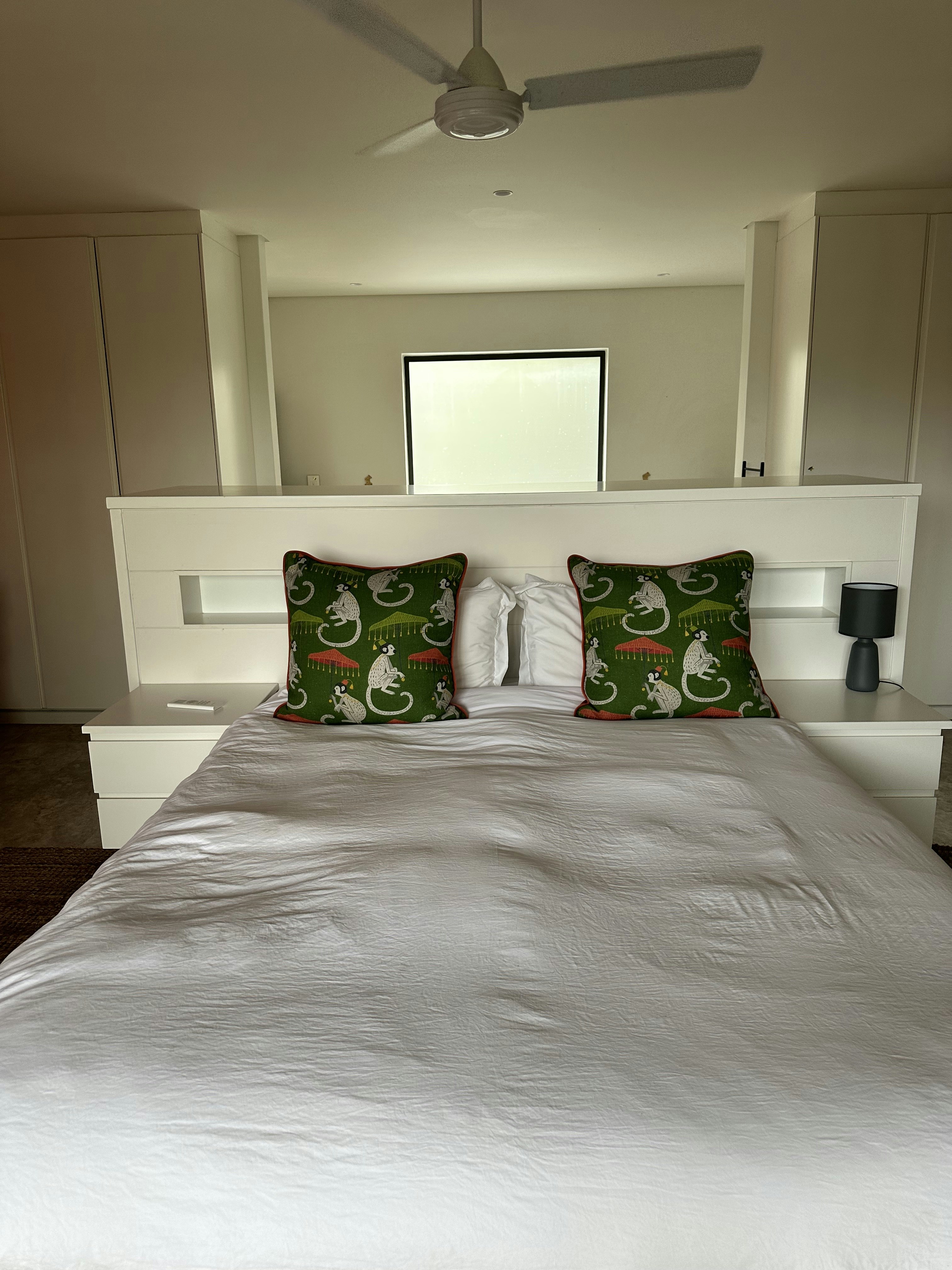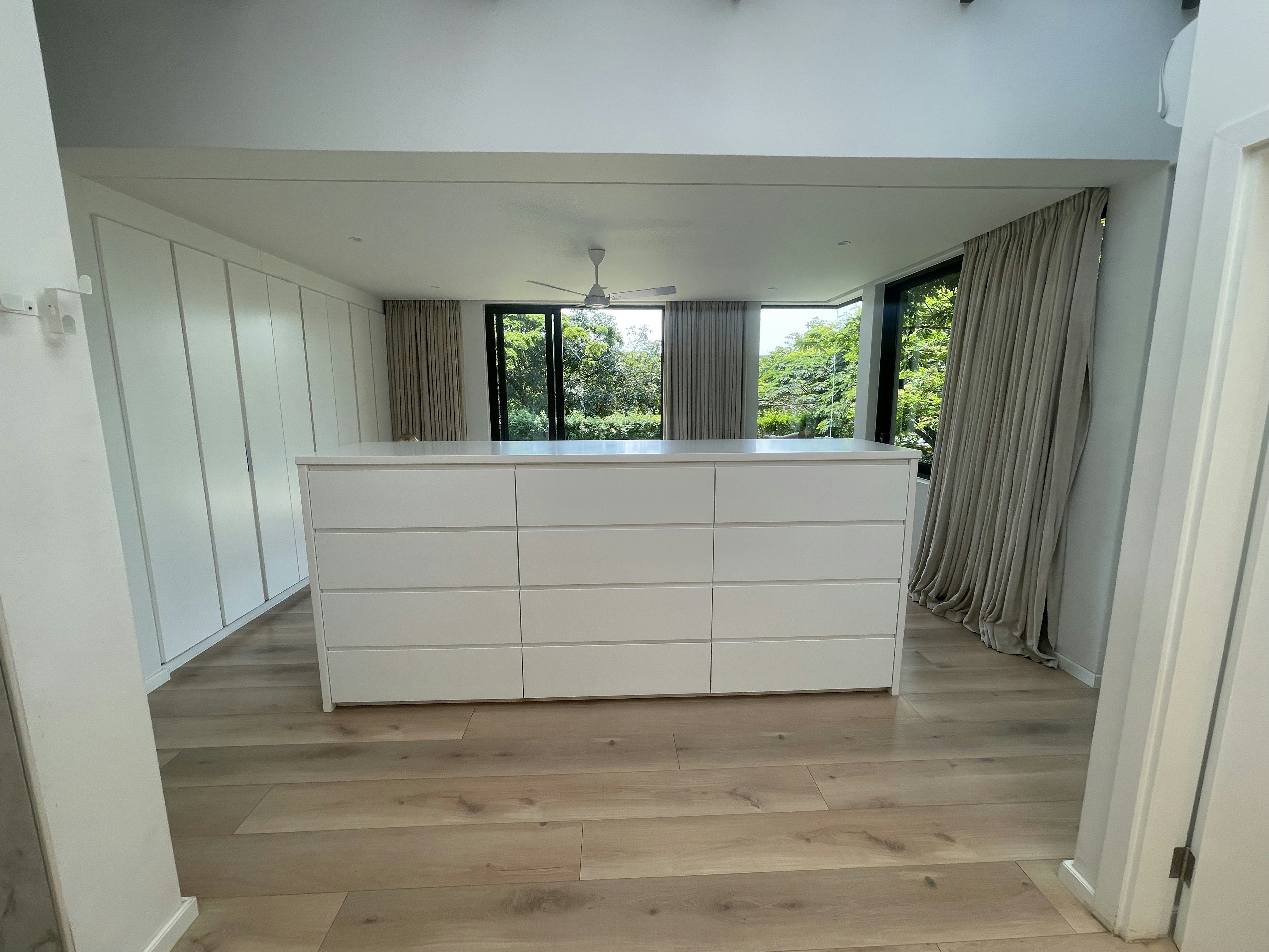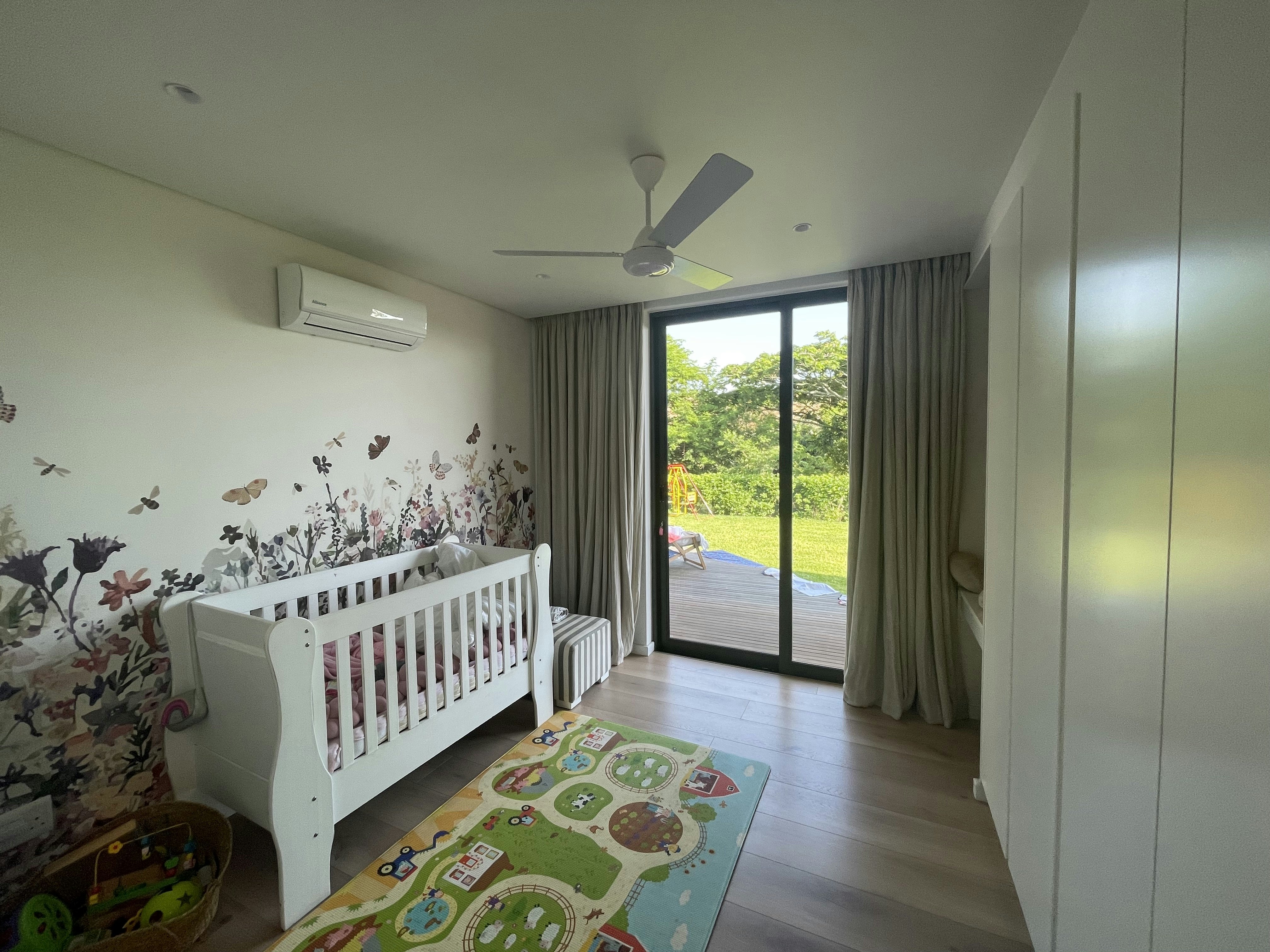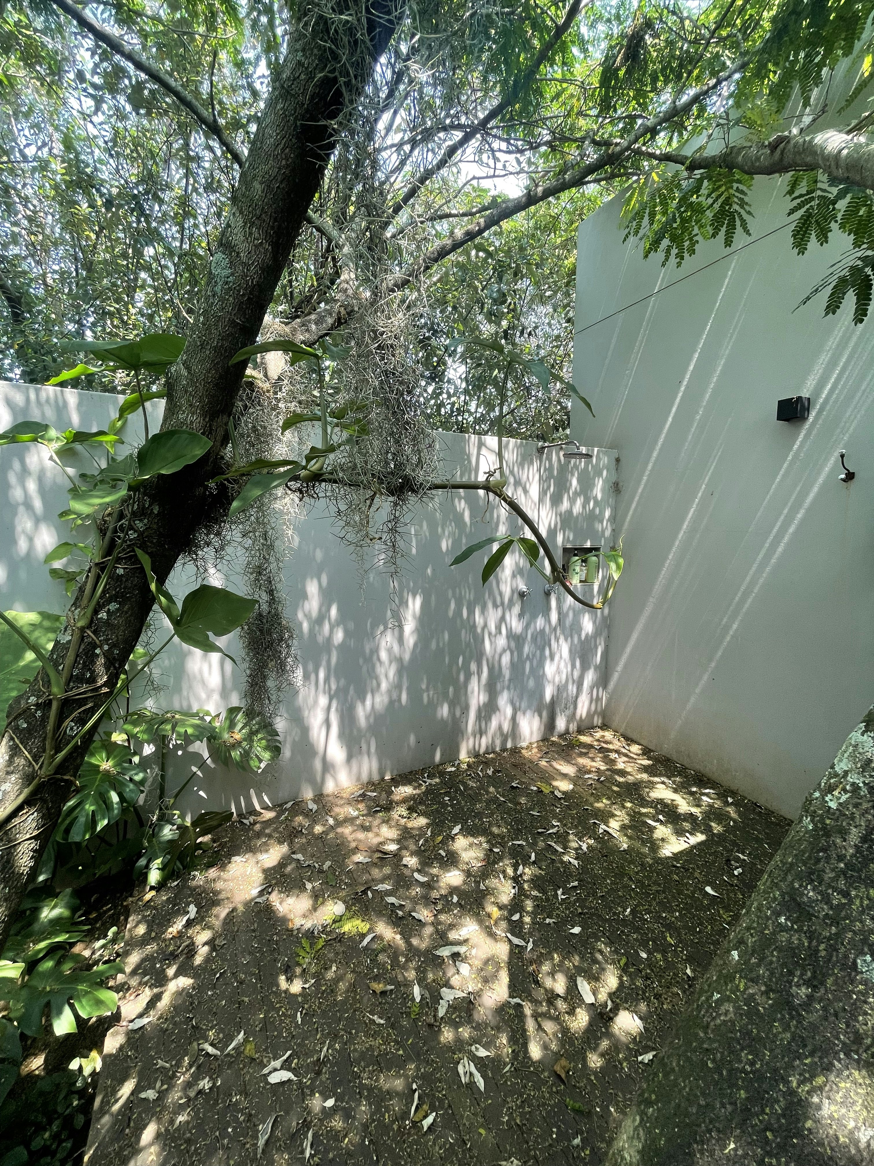 All the bedrooms have air conditioning and open up onto the deck which wraps around the house. The main en-suite bedroom boasts beautiful views of the forest, and has a private, tropical outdoor shower under the canopy. This bedroom contains a king-size bed. The guest suite is situated above the garage and is large and spacious and looks over the front garden, with beautiful views of the forest on the estate. This bedroom contains a queen-size bed and also has a fan and air conditioner.