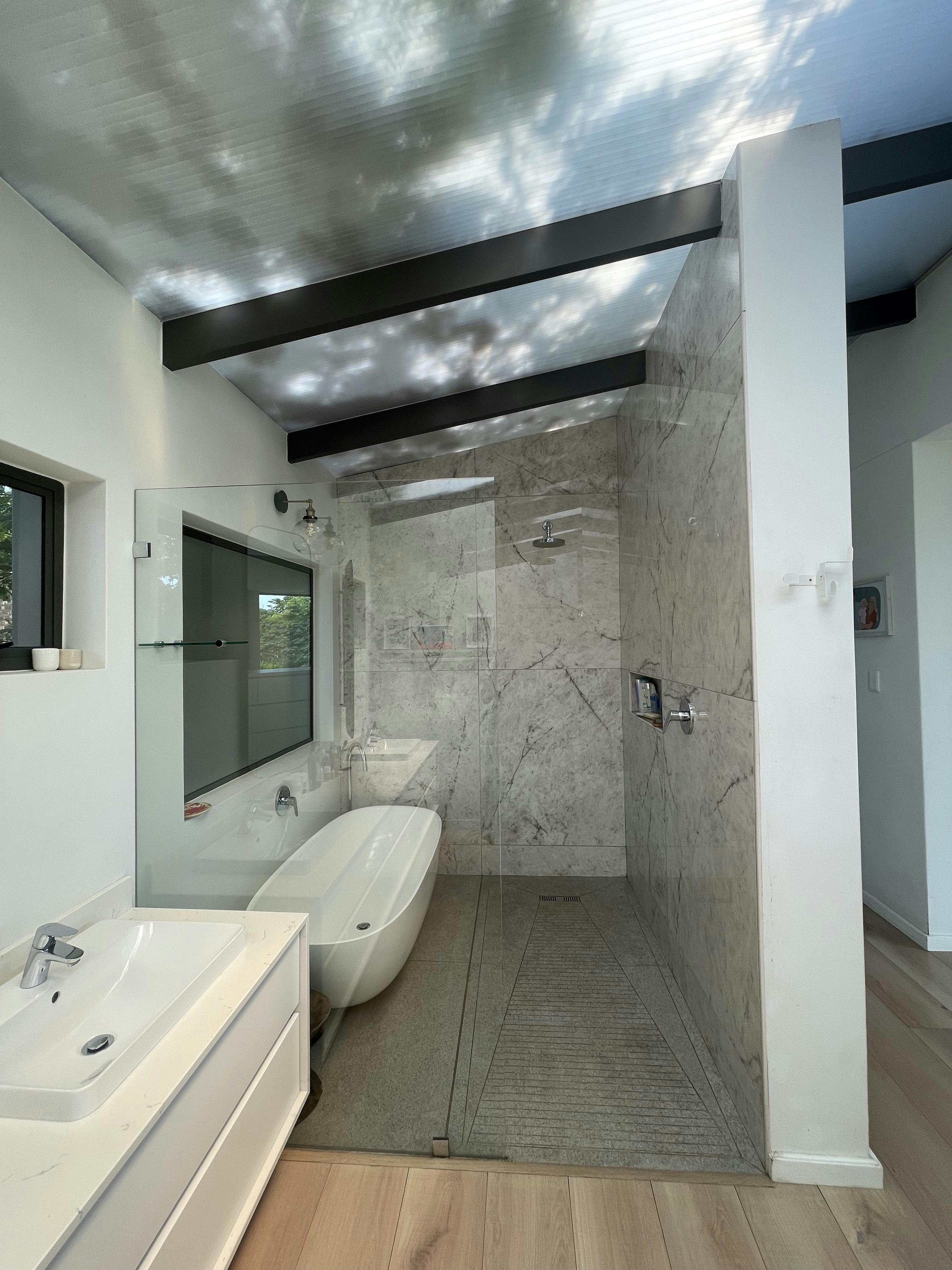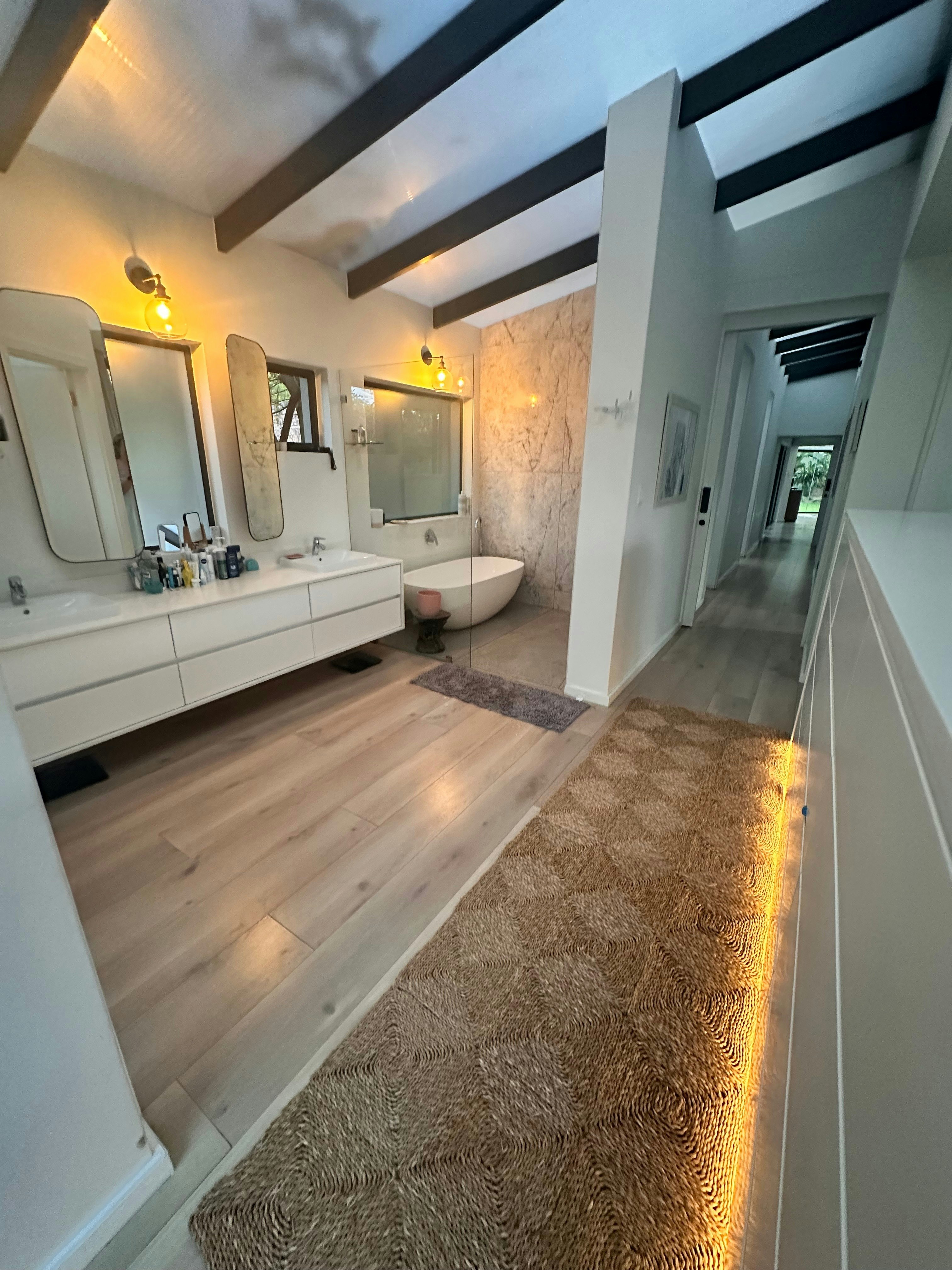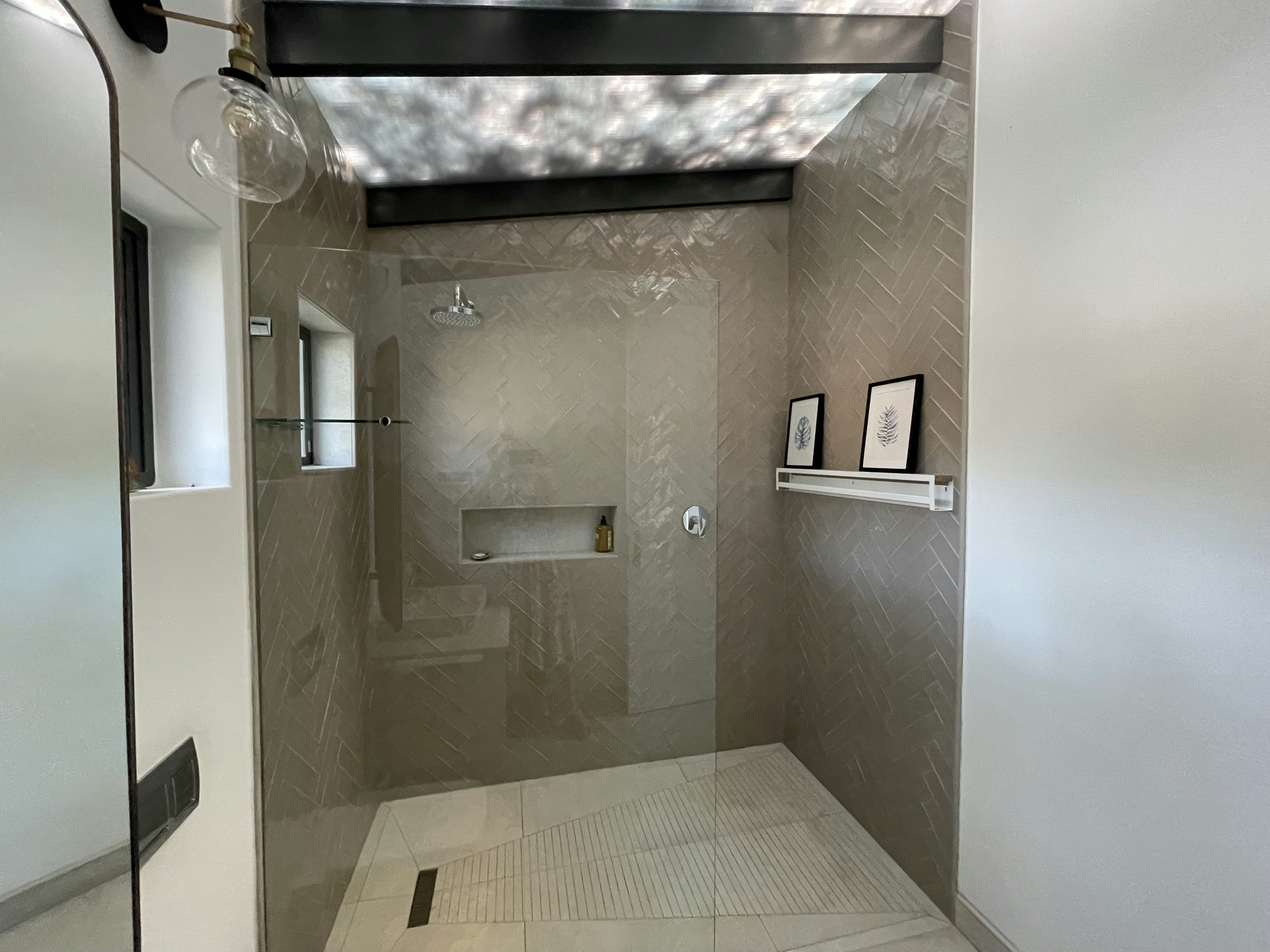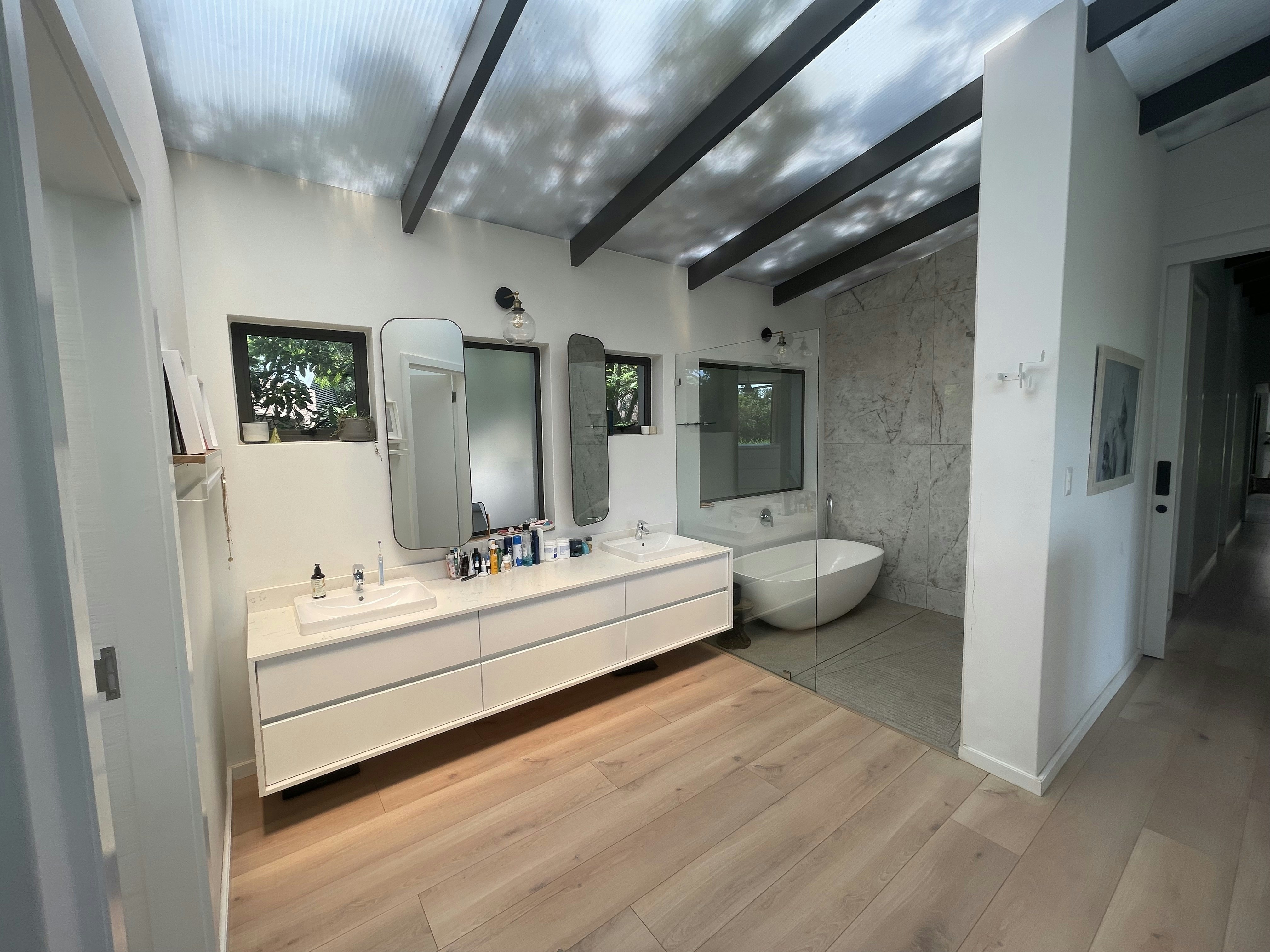 All the bedrooms have air conditioning and open up onto the deck which wraps around the house. The main en-suite bedroom boasts beautiful views of the forest, and has a private, tropical outdoor shower under the canopy. This bedroom contains a king-size bed. The guest suite is situated above the garage and is large and spacious and looks over the front garden, with beautiful views of the forest on the estate. This bedroom contains a queen-size bed and also has a fan and air conditioner.