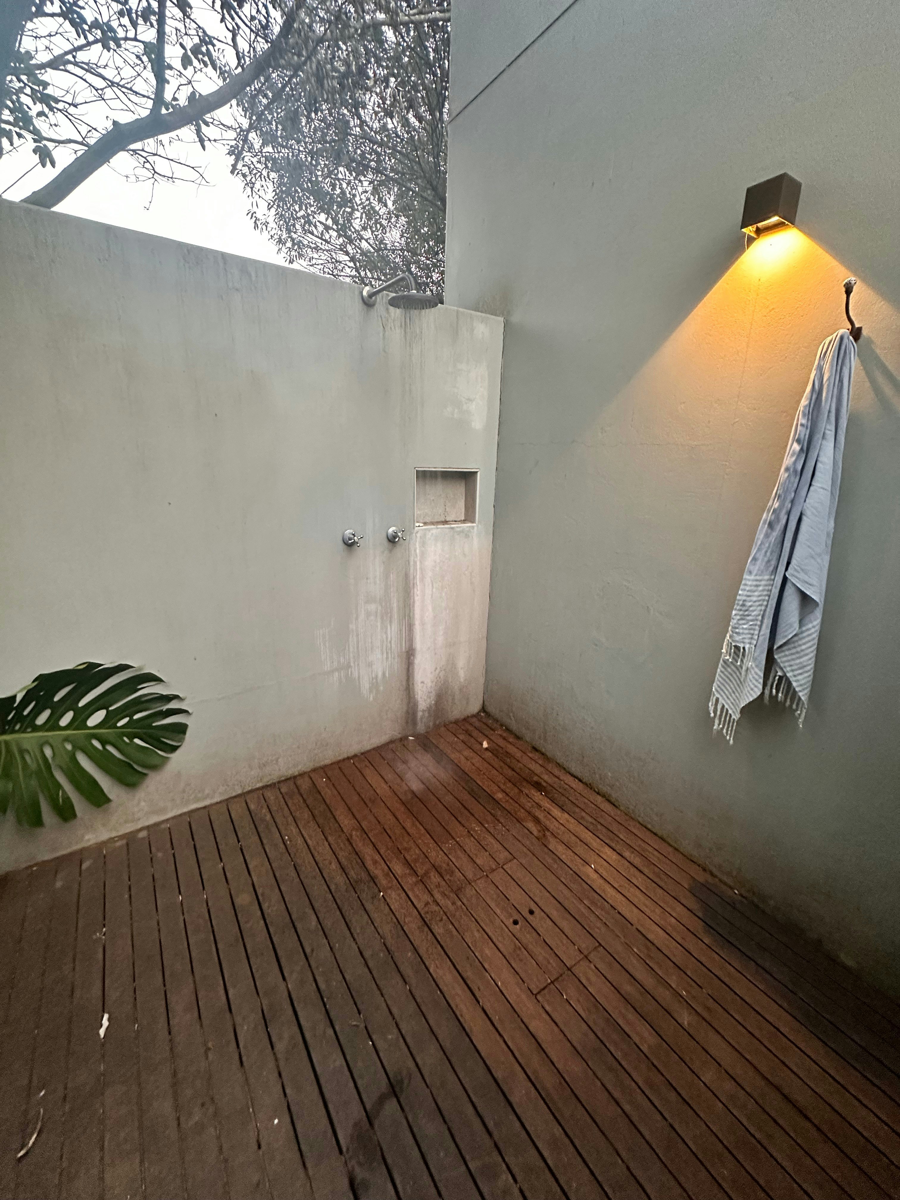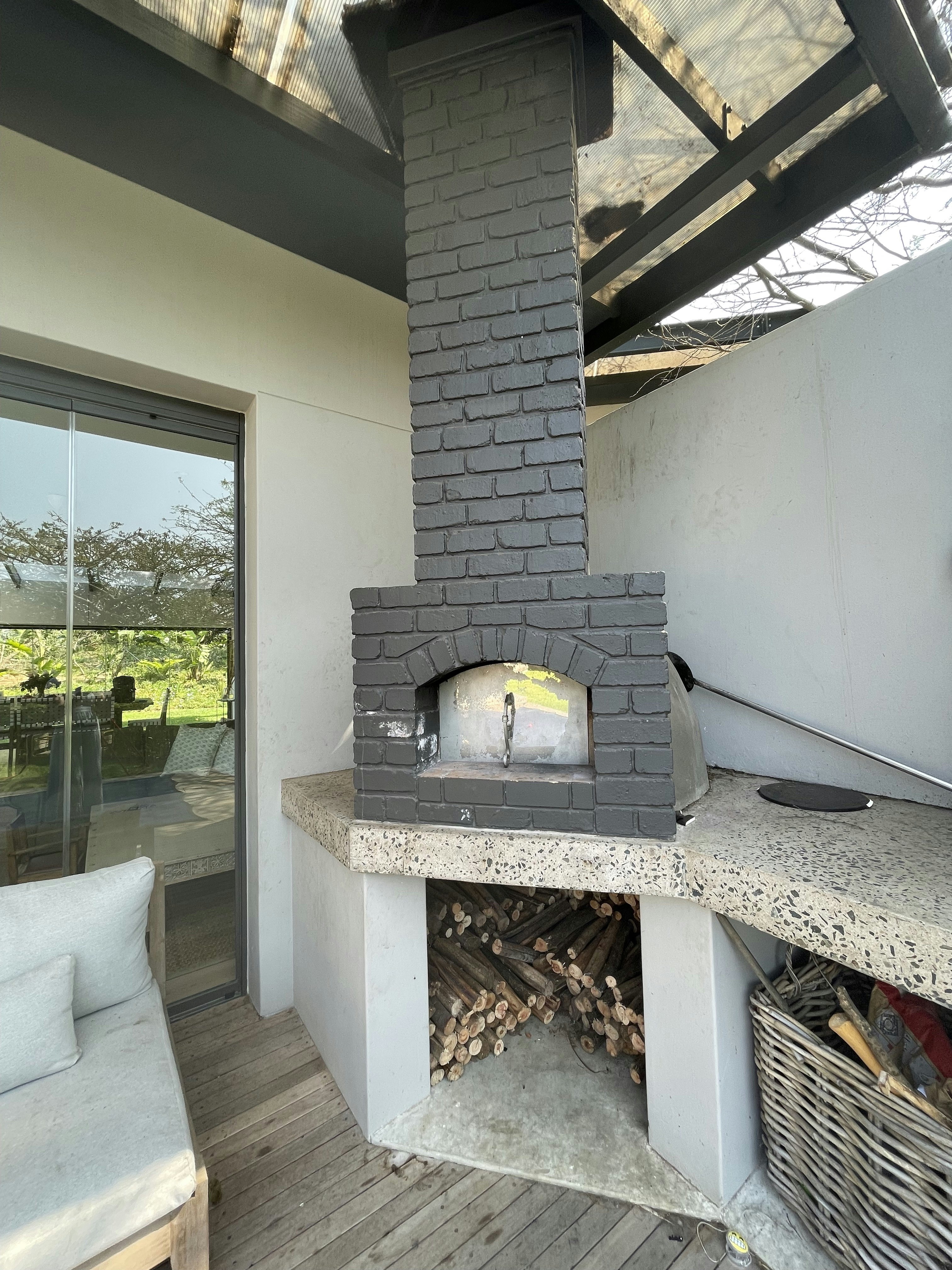 Additional features include a gas braai, pizza oven, Weber braai, air-conditioning, free Wi-Fi, and secure parking as well as amenities on the estate. The laundry room is available to guests with a washing machine and tumble dryer.