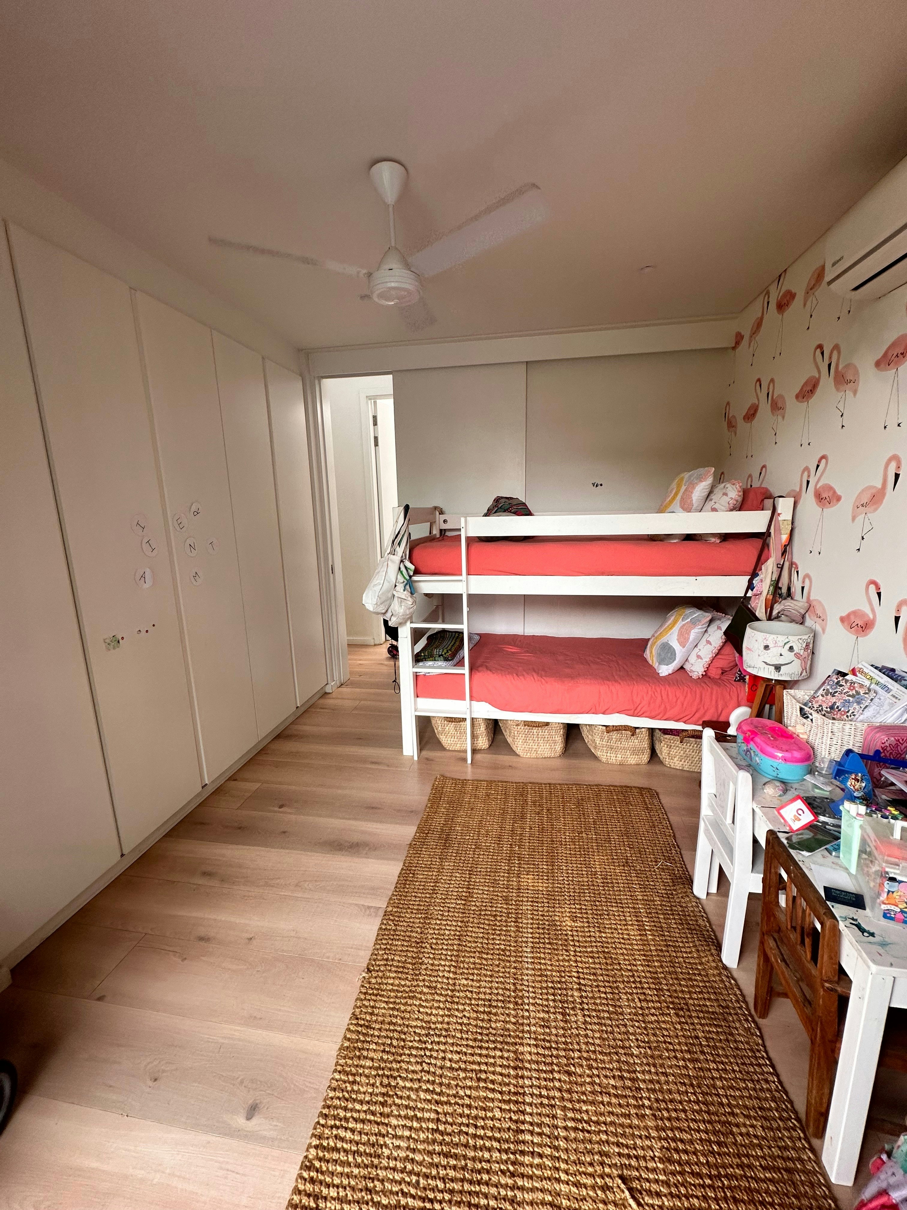 The 2 other bedrooms are smaller rooms. One contains 2 single beds and the other can have a double bed in it if required. Both bath and shower facilities are available.