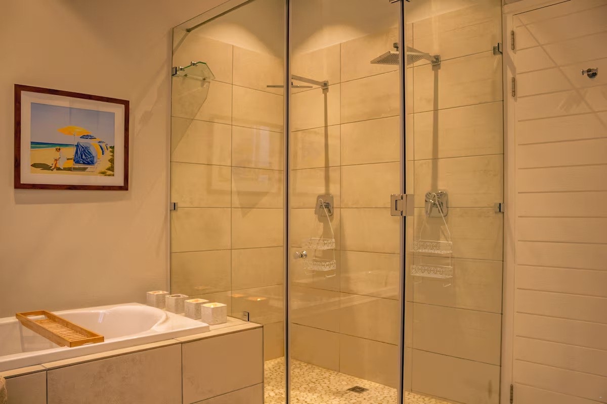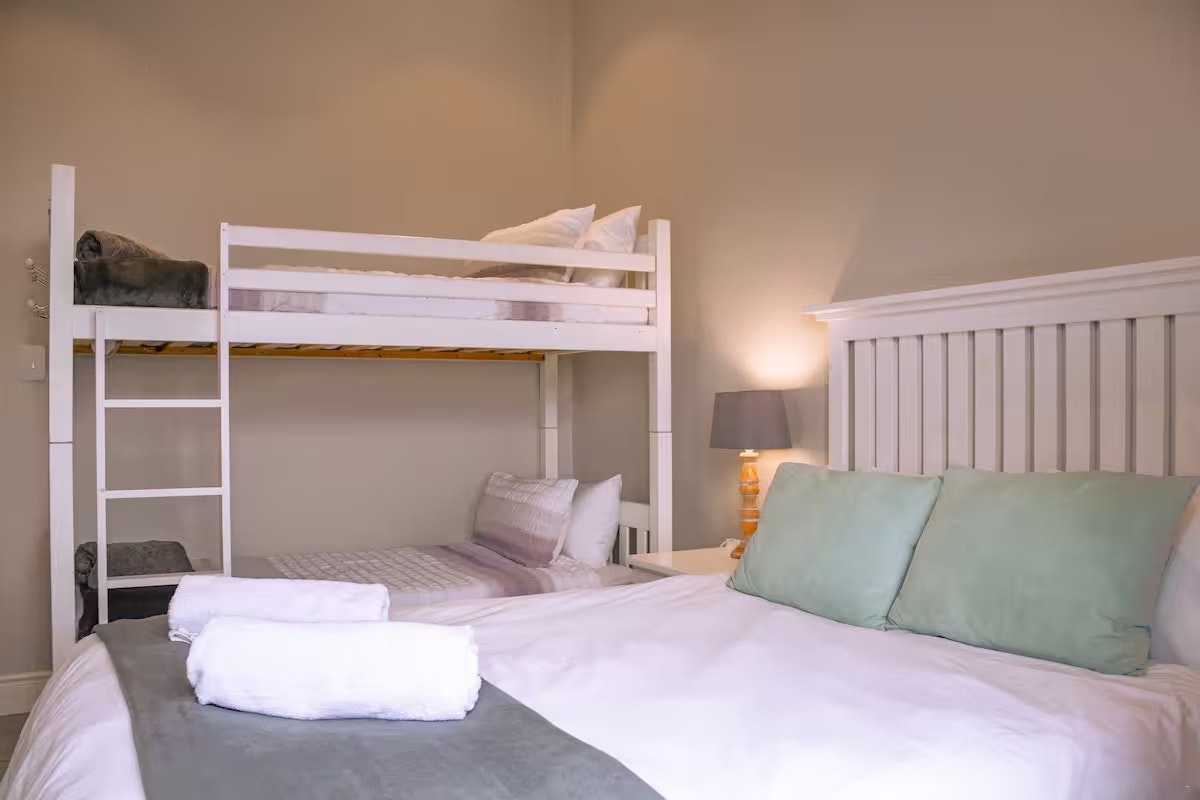 The house can accommodate up to 14 guests and comprises 5 bedrooms and 4 bathrooms. Three of the bedrooms are furnished with king-size beds, while the remaining rooms are furnished with a double bed and a bunk bed, and a king-size bed with a bunk bed. The bathrooms are either fitted with a bath and shower or a shower only. Linen and bath towels are provided; however, guests are required to bring their own beach towels.
