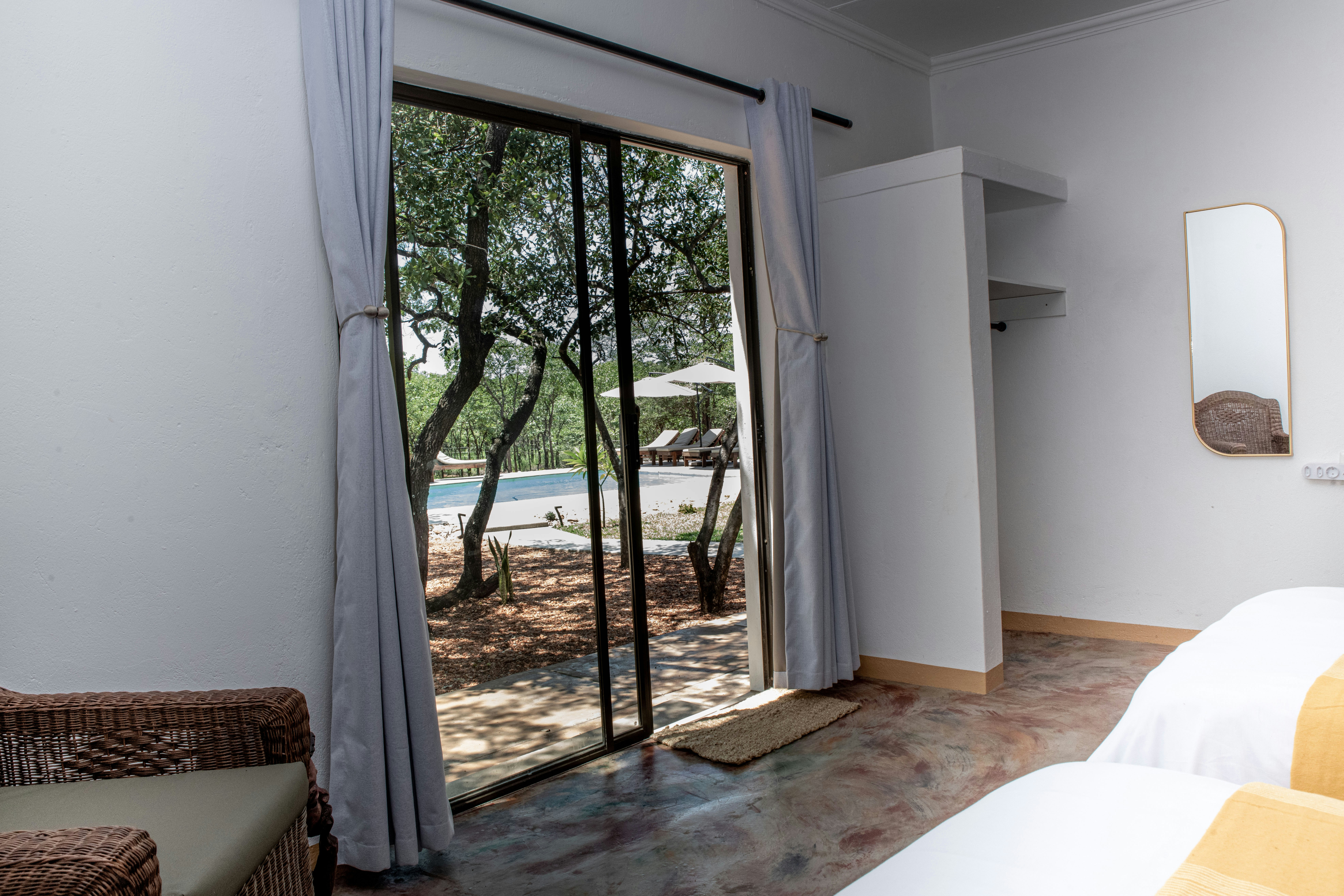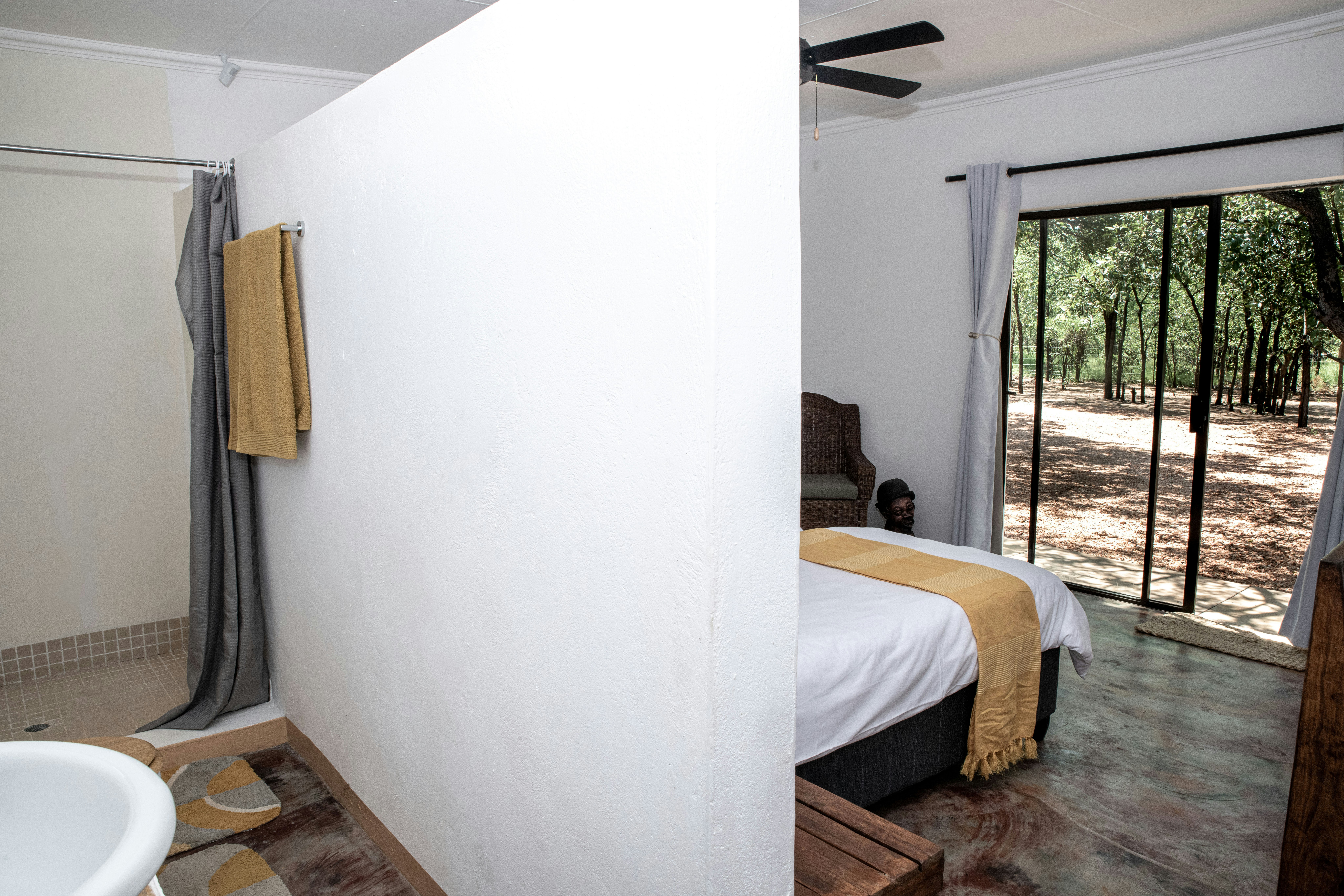 Guests can enjoy peaceful bush walks, visit the scenic dams, relax at the main swimming pool overlooking the bush, unwind in the pool lounge area, or enjoy sundowners by the pool. The property also offers a traditional boma and braai facilities, ideal for gathering and enjoying the tranquil bush surroundings.
