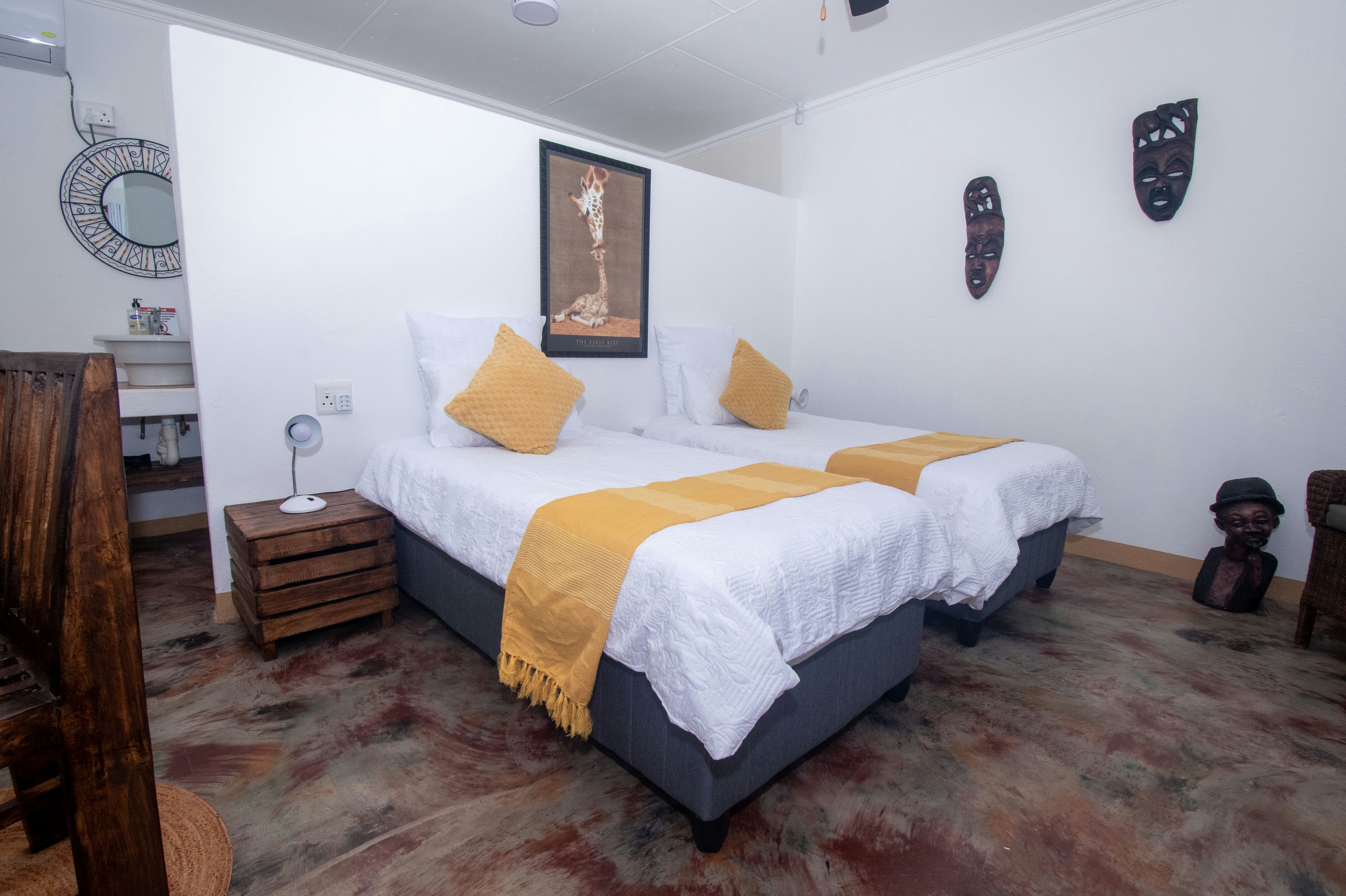 Accommodation includes 4 en-suite semi self-catering rooms, each furnished with two single beds that can be converted into a king-size bed and featuring a private bathroom. These rooms are equipped with a mini-bar fridge, tea- and coffee-making facilities, and free Wi-Fi.