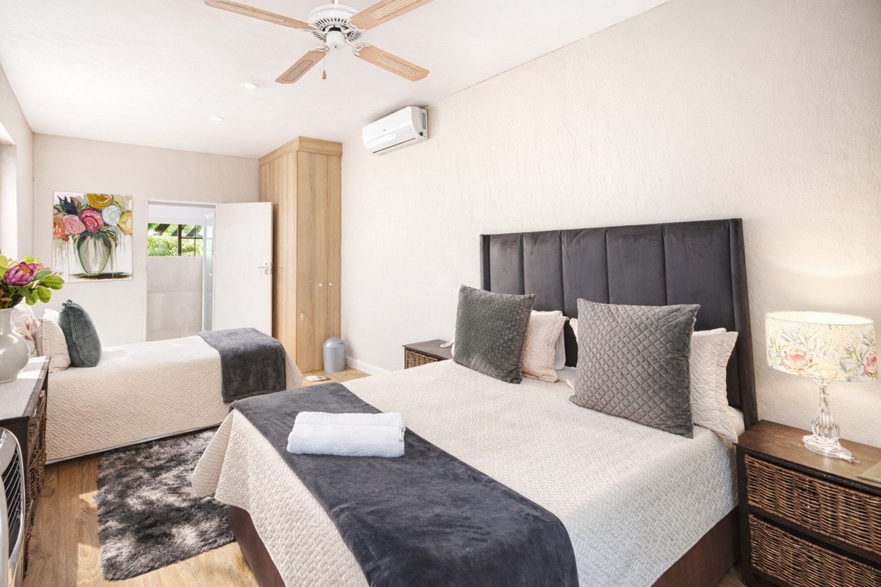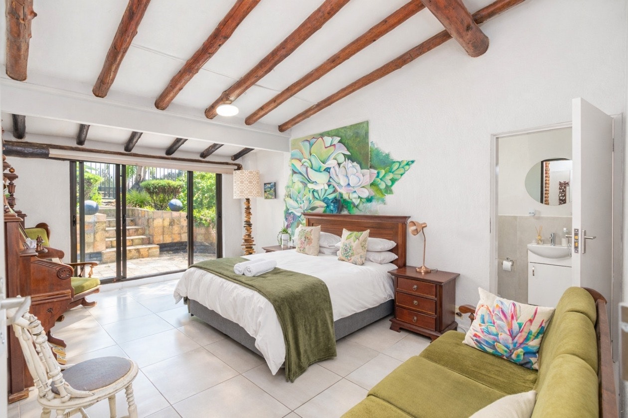 Both units feature a kitchen fully equipped with a gas stove, electric oven, microwave, fridge-freezer, cutlery and crockery as well as tea- and coffee-making facilities. Leading from this kitchen is a dining table and a cosy lounge with comfy seating and a TV. Outside, guests have their own private patio with seating and braai facilities.