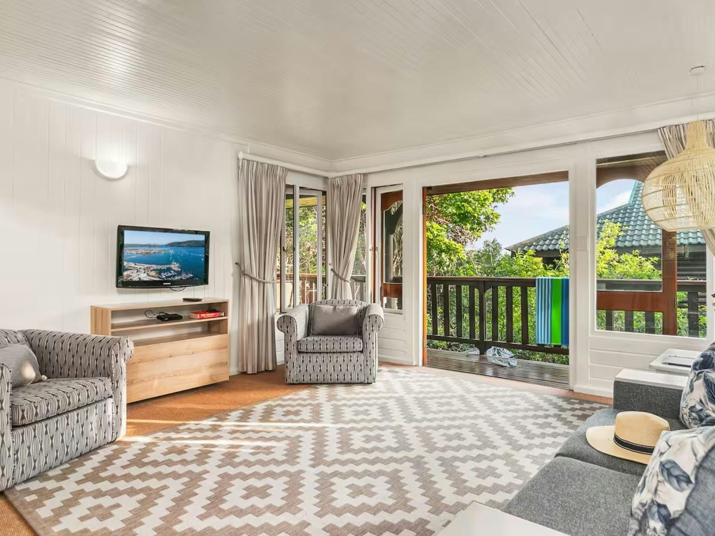 The chalet is spacious and can accommodate up to 4 guests. It has 1 bedroom furnished with a queen-sized bed and an en-suite bathroom fitted with a shower, basin, and toilet. A double sleeper couch in the lounge offers extra sleeping space. Linen and bath towels are provided.