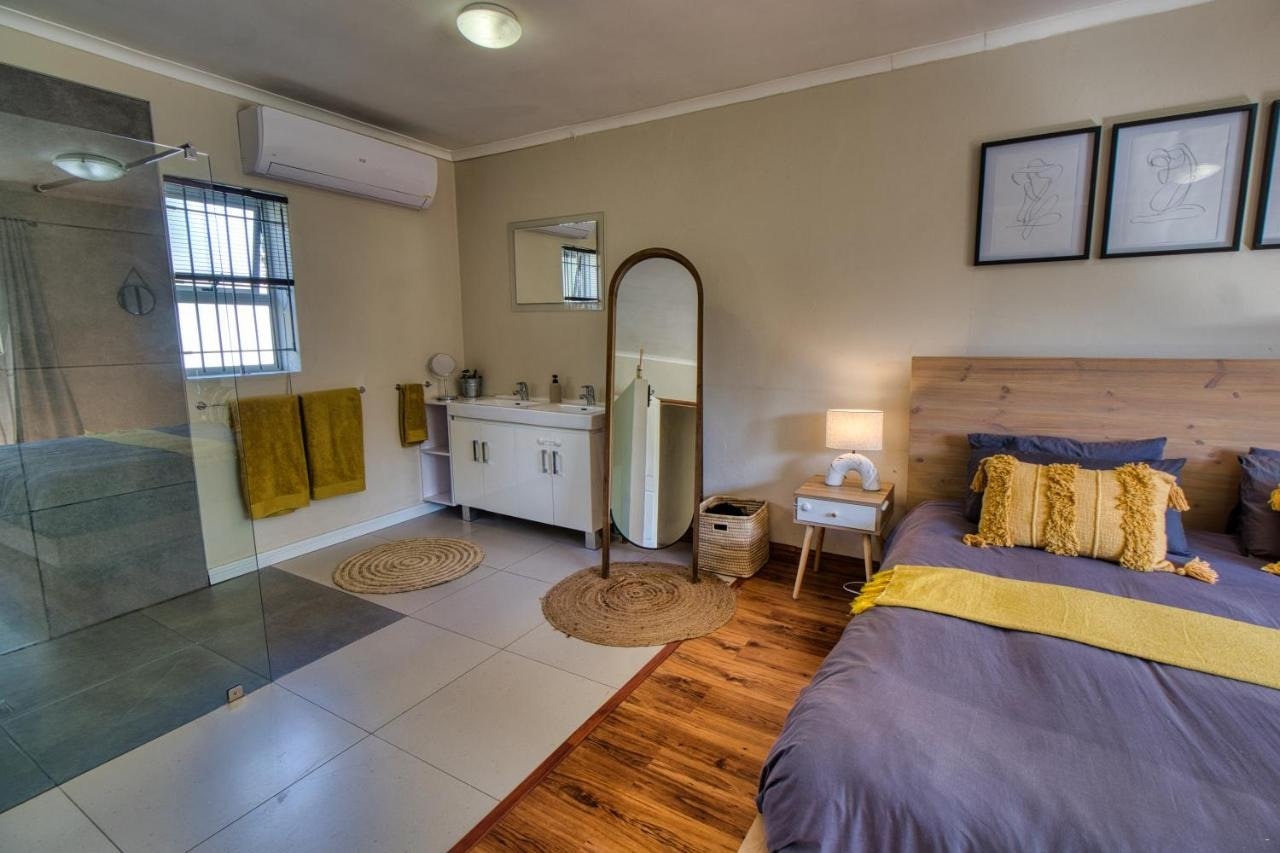 Die huis beskik oor 3 slaapkamers en 3 badkamers, wat gemaklik 6 gaste kan akkommodeer. Die eerste slaapkamer het 'n dubbelbed en 'n en suite-badkamer met 'n stort. Die tweede slaapkamer het ook 'n dubbelbed, terwyl die derde slaapkamer met 'n stapelbed gemeubileer is en sy eie en suite-badkamer met 'n stort het.