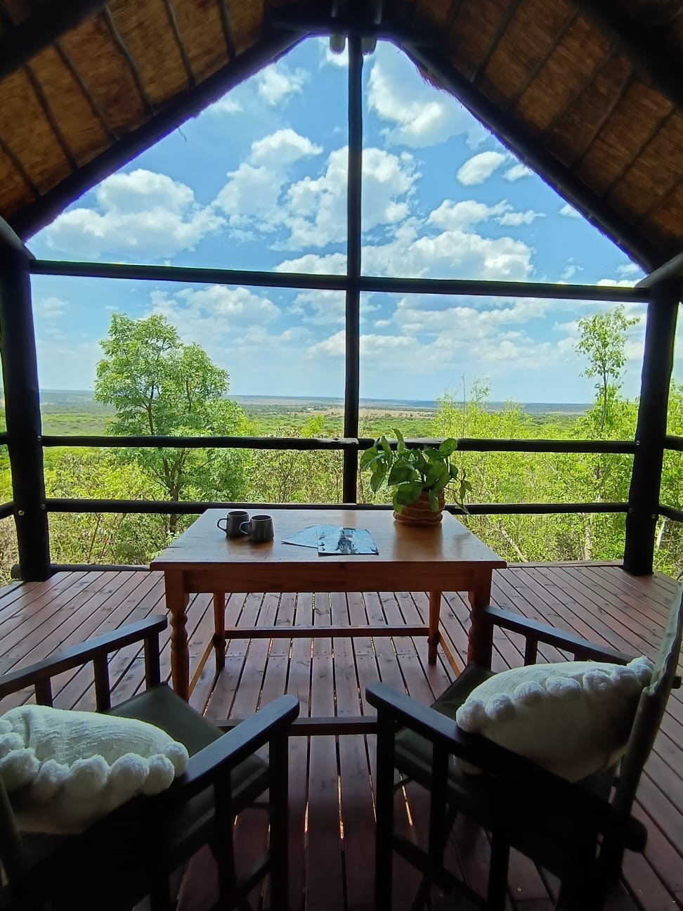 Baie lekker en mooi view. Die naam sê dit alles: Mahala View. Ons het baie lekker gekuier en die leeus wat jy kan hoor brul was 'n belewenis. Die uitkyk oor die area was ook asemrowend en dit voel of jy in 'n boomhuis bly. Gasvrou was baie vriendelik en behulpsaam.